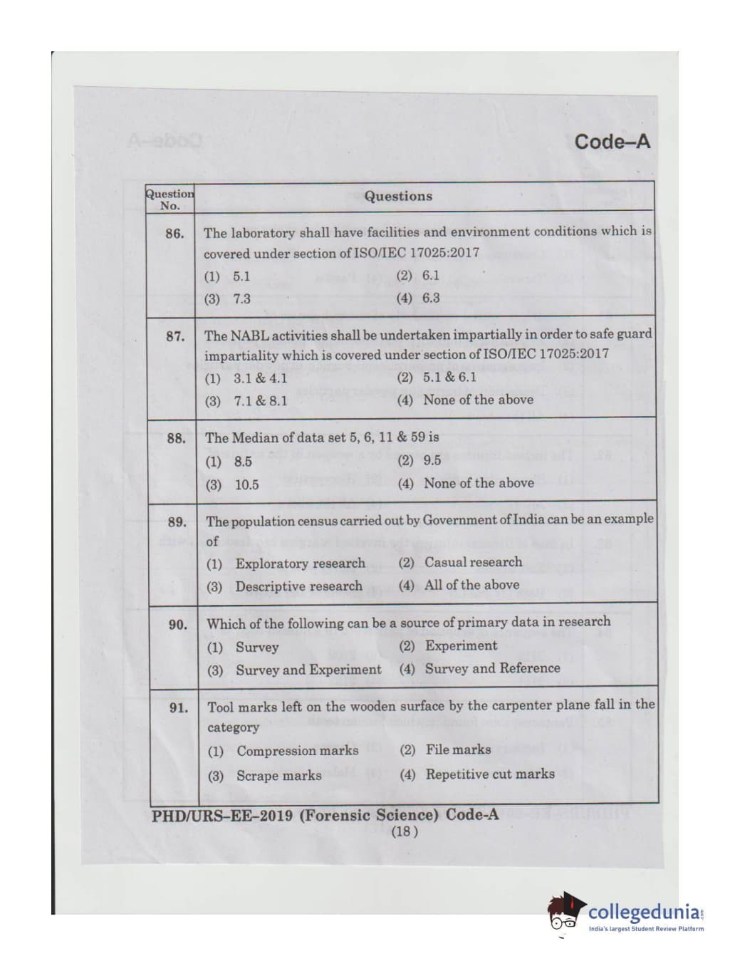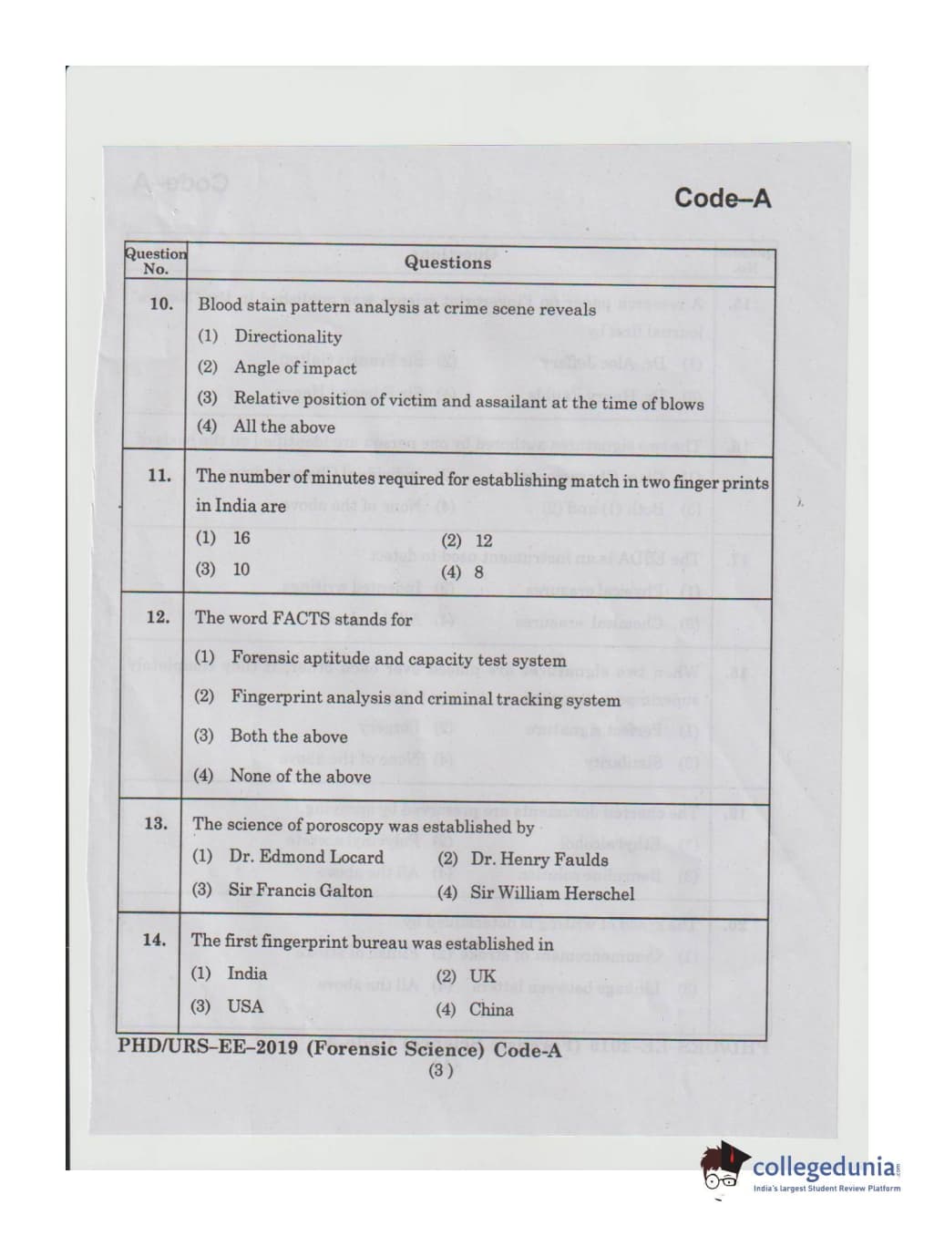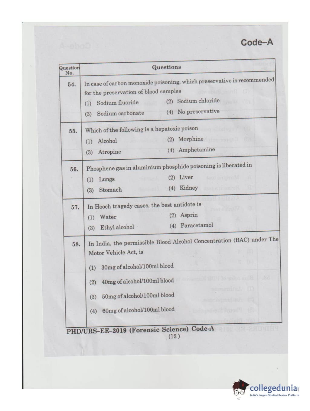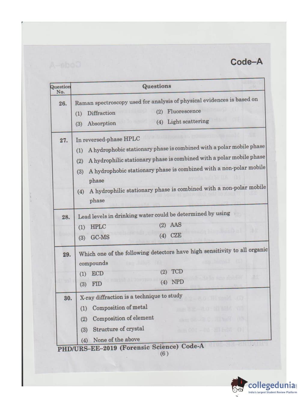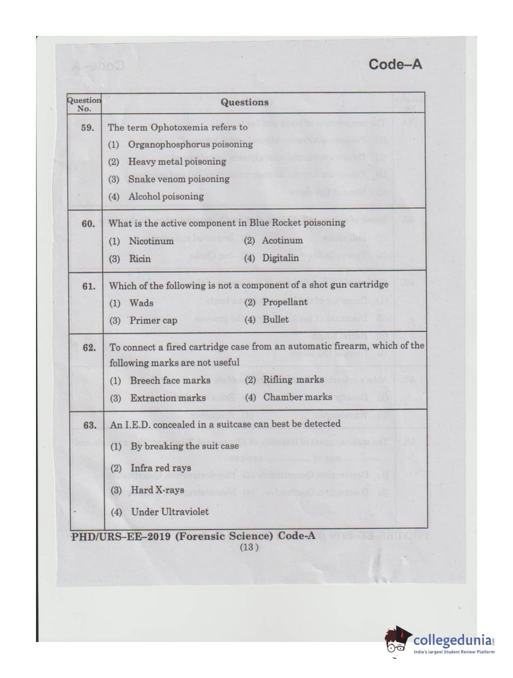 MDUCEE 2019 Ph.D./M.Phil./URS Forensic Science Set A Question Paper with Answer Key PDFs