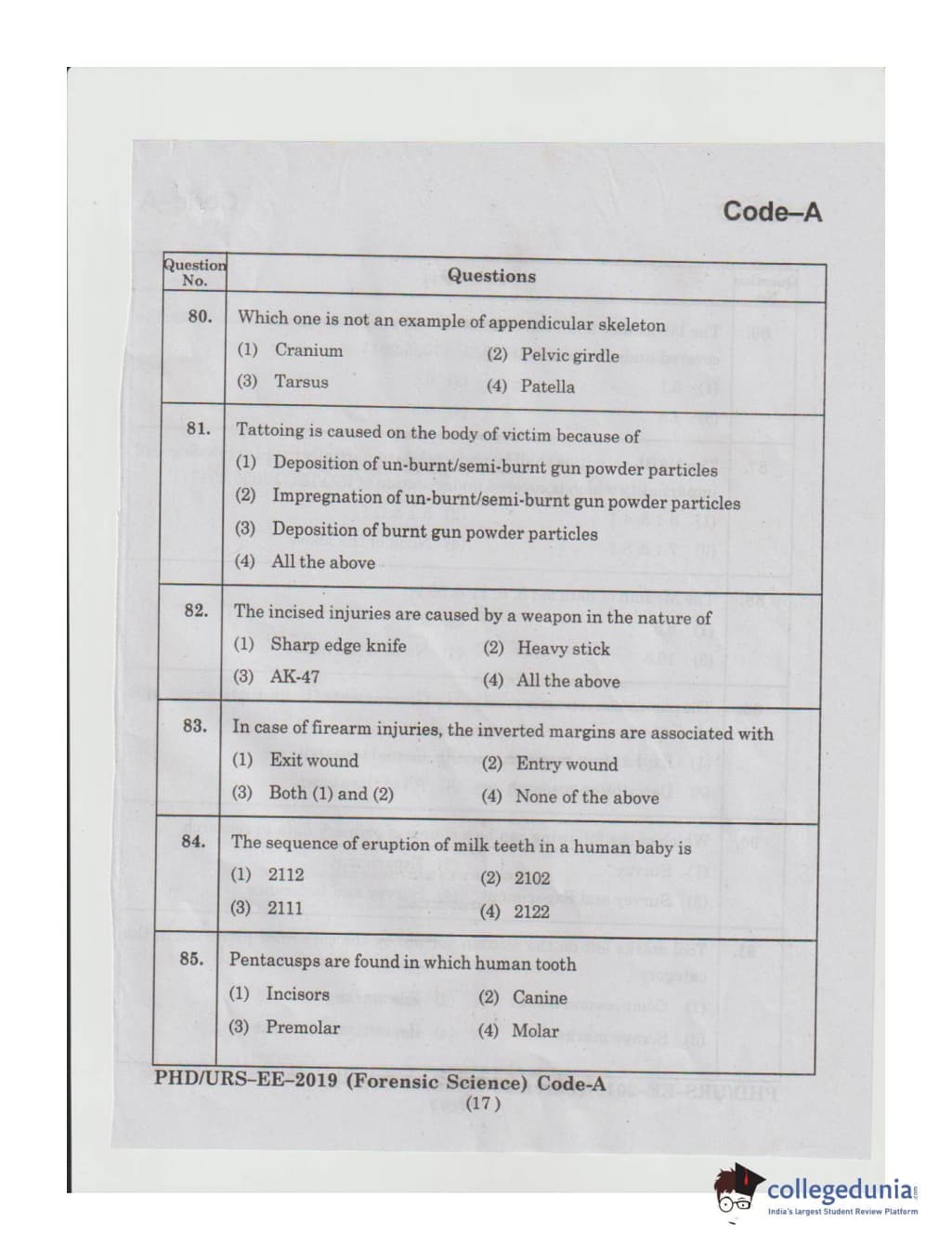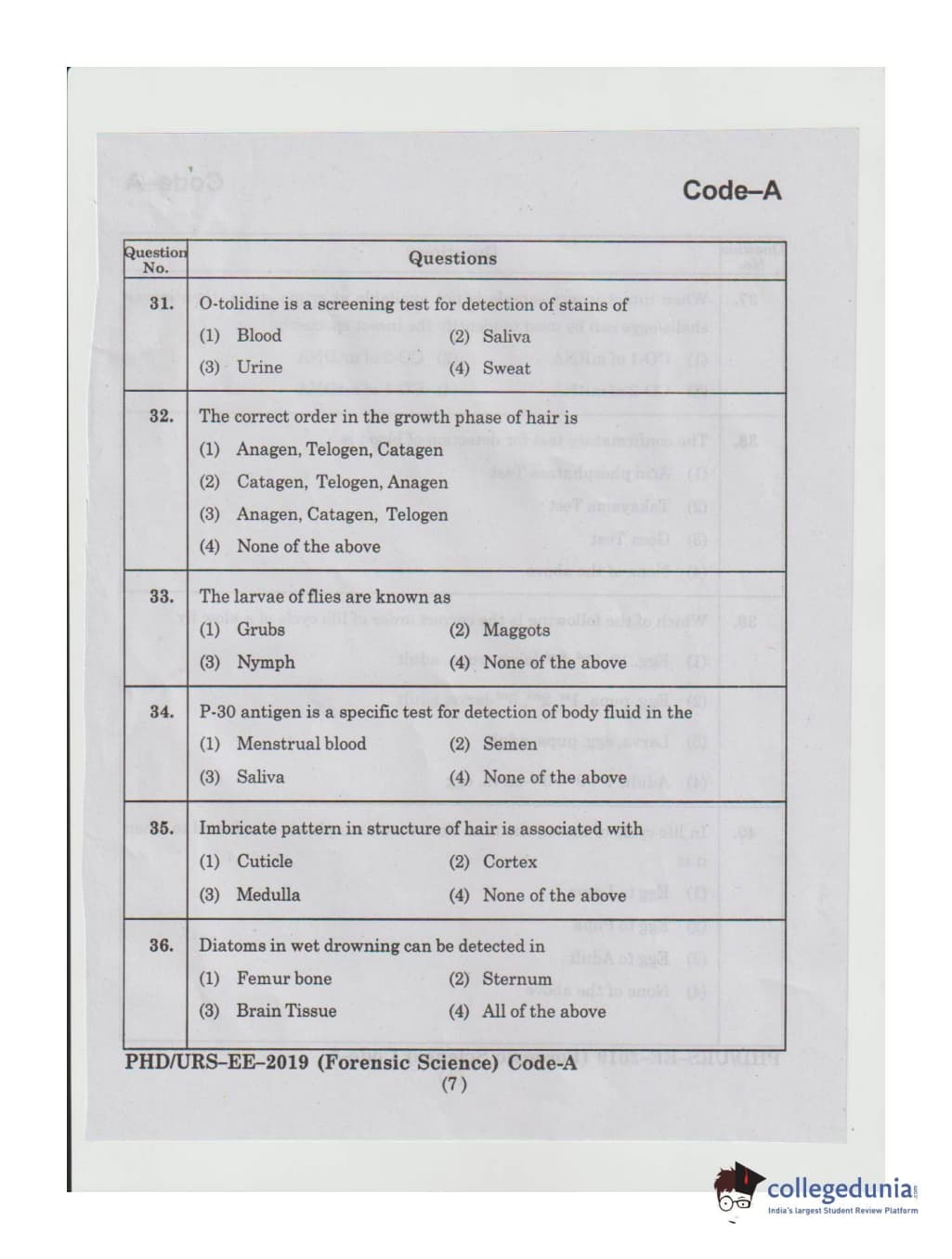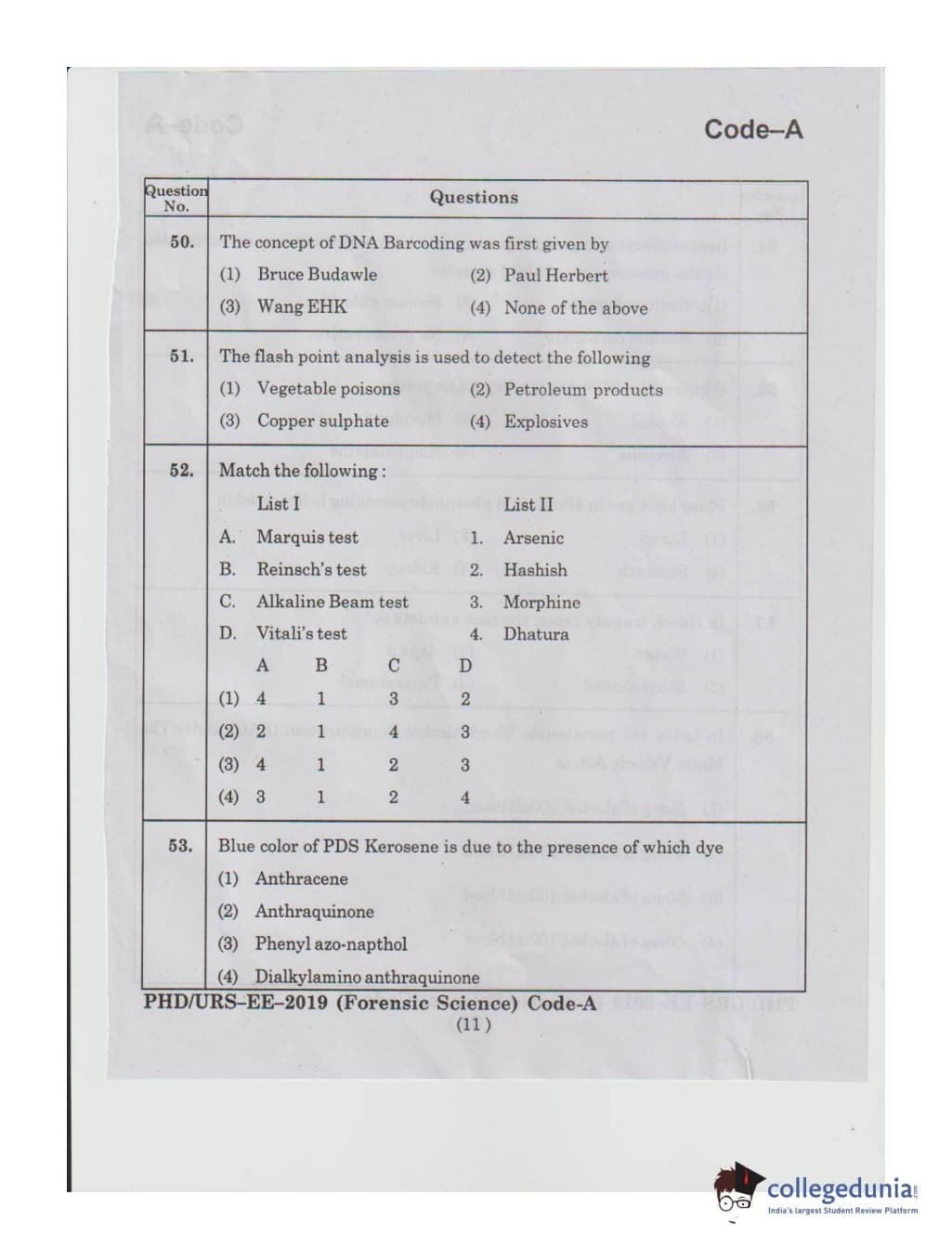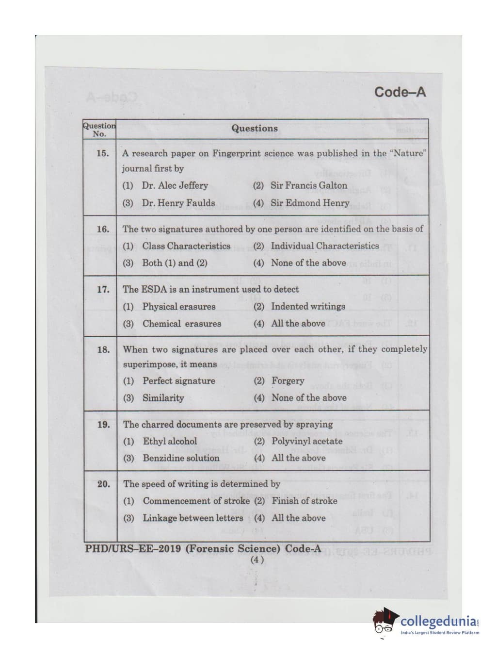 MDUCEE 2019 Ph.D./M.Phil./URS Forensic Science Set A Question Paper with Answer Key PDFs