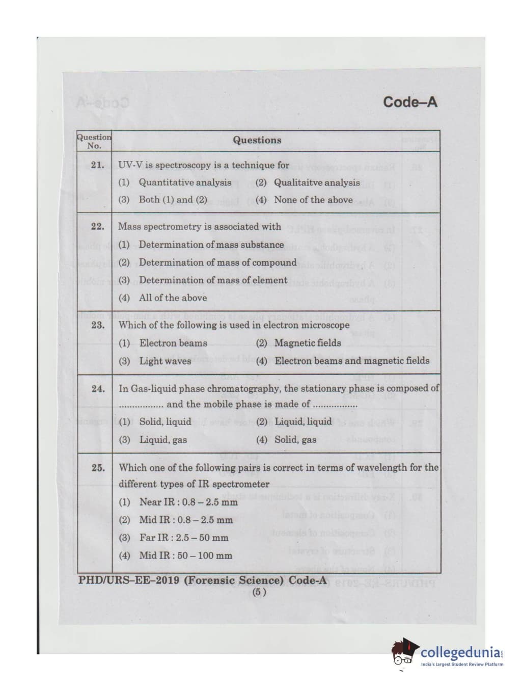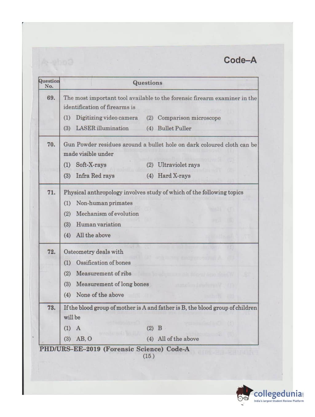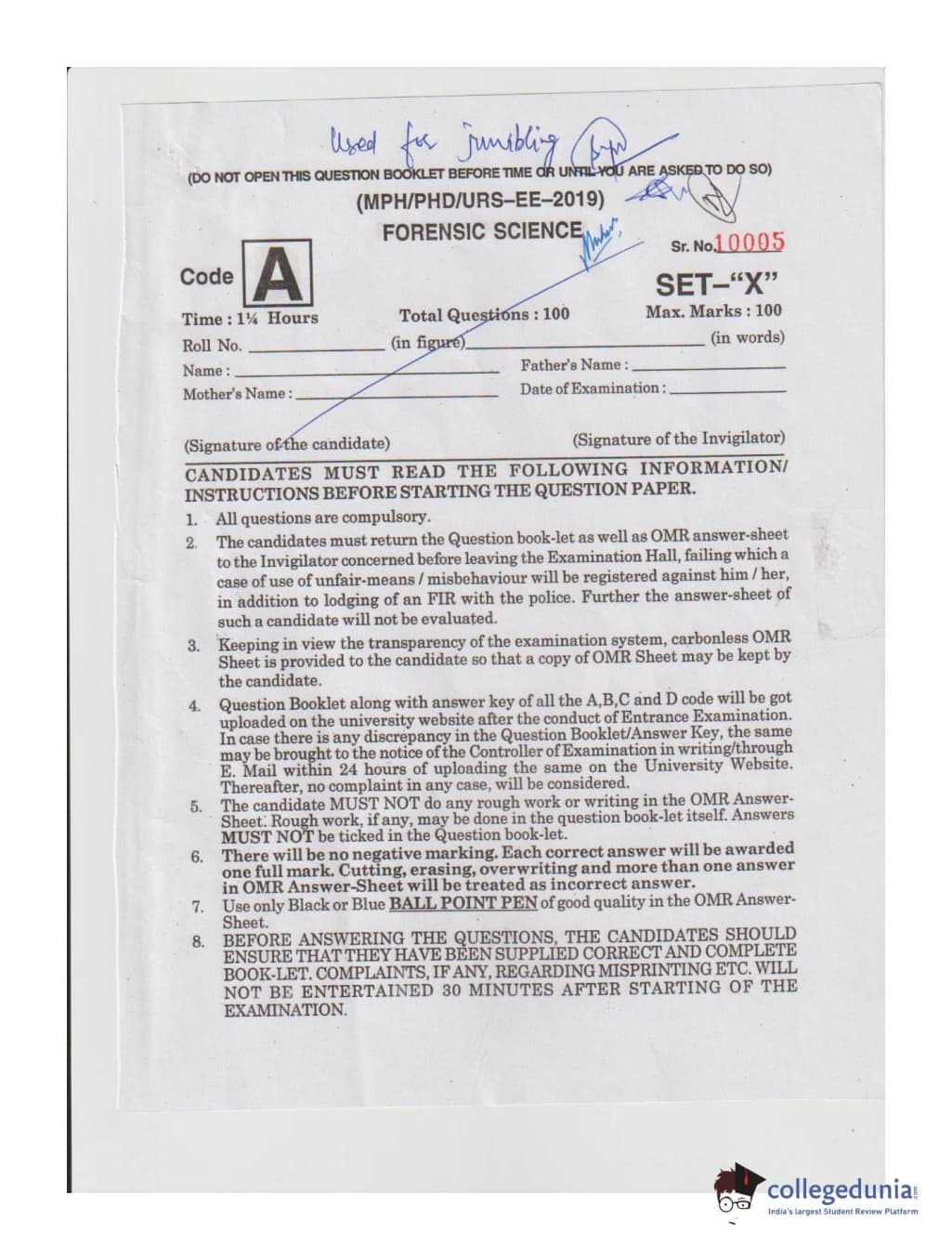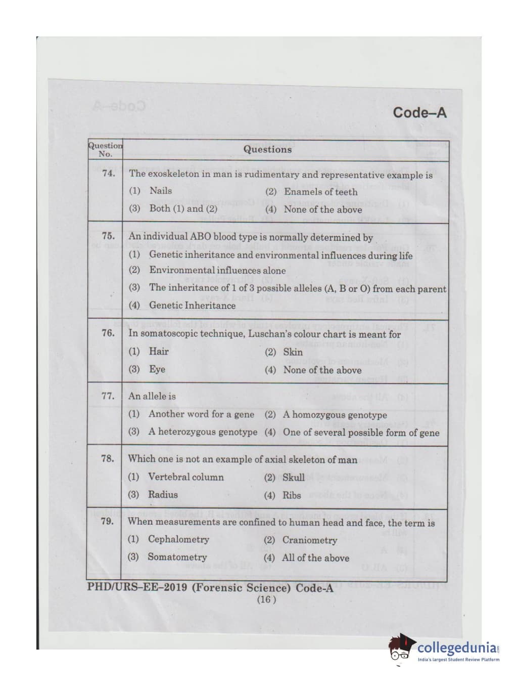 MDUCEE 2019 Ph.D./M.Phil./URS Forensic Science Set A Question Paper with Answer Key PDFs
