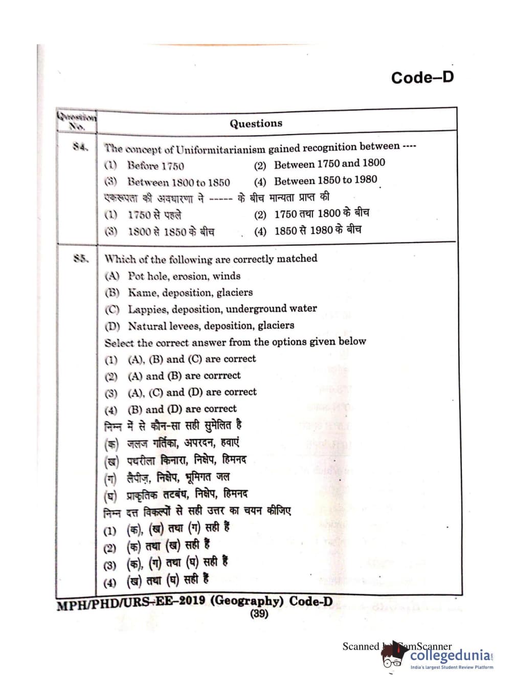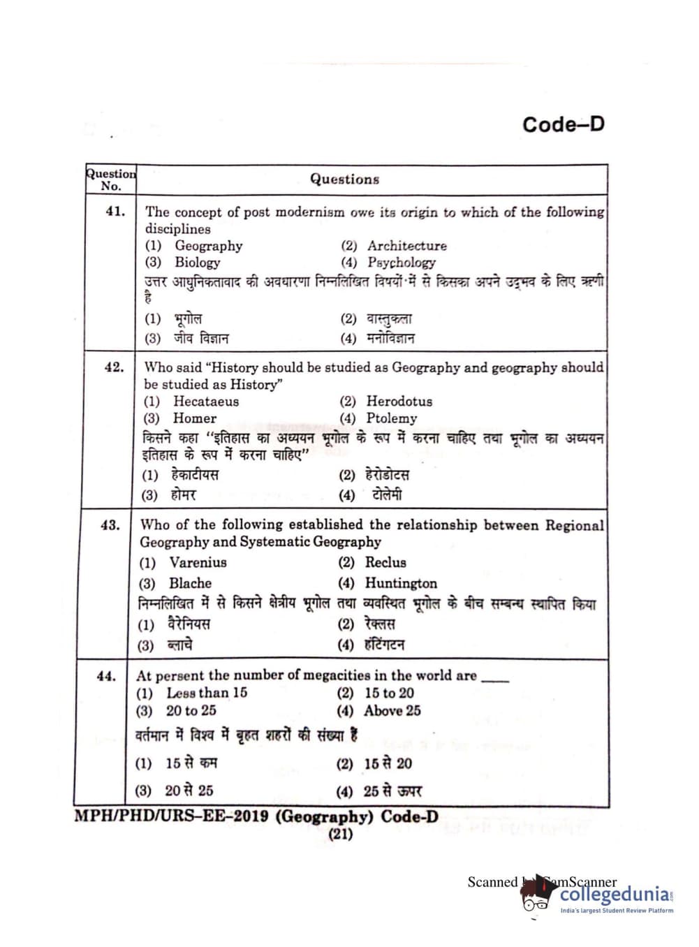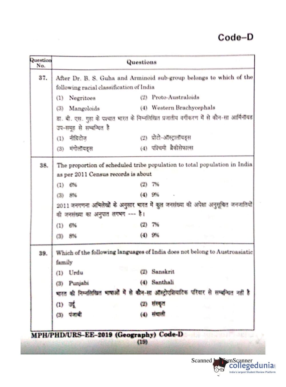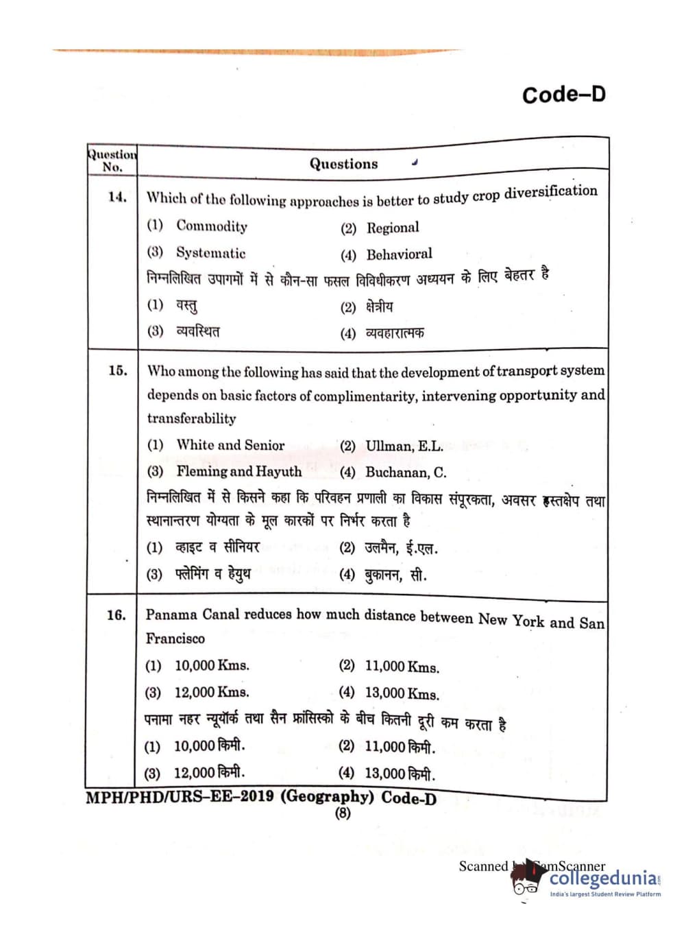 | MDUCEE 2019 Ph.D./M.Phil./URS Geography Set C Question Paper PDF | MDUCEE 2019 Ph.D./M.Phil./URS Geography Set C Answer Key PDF |