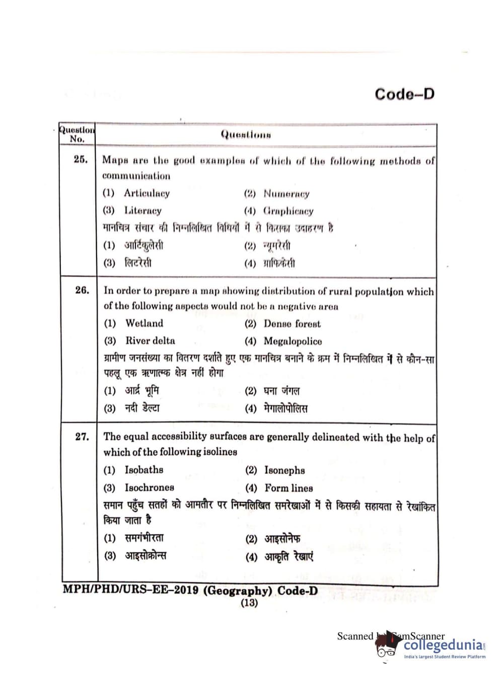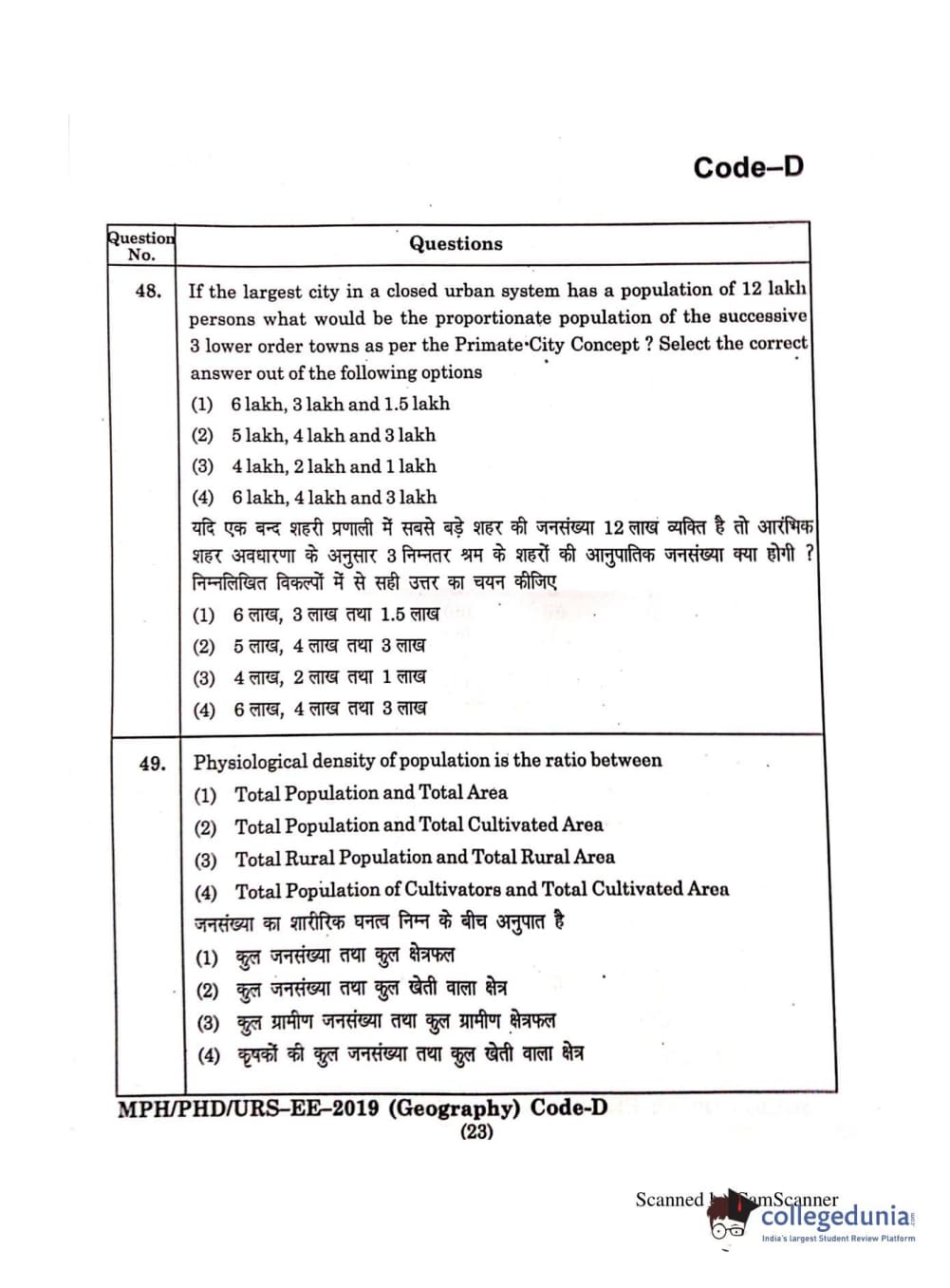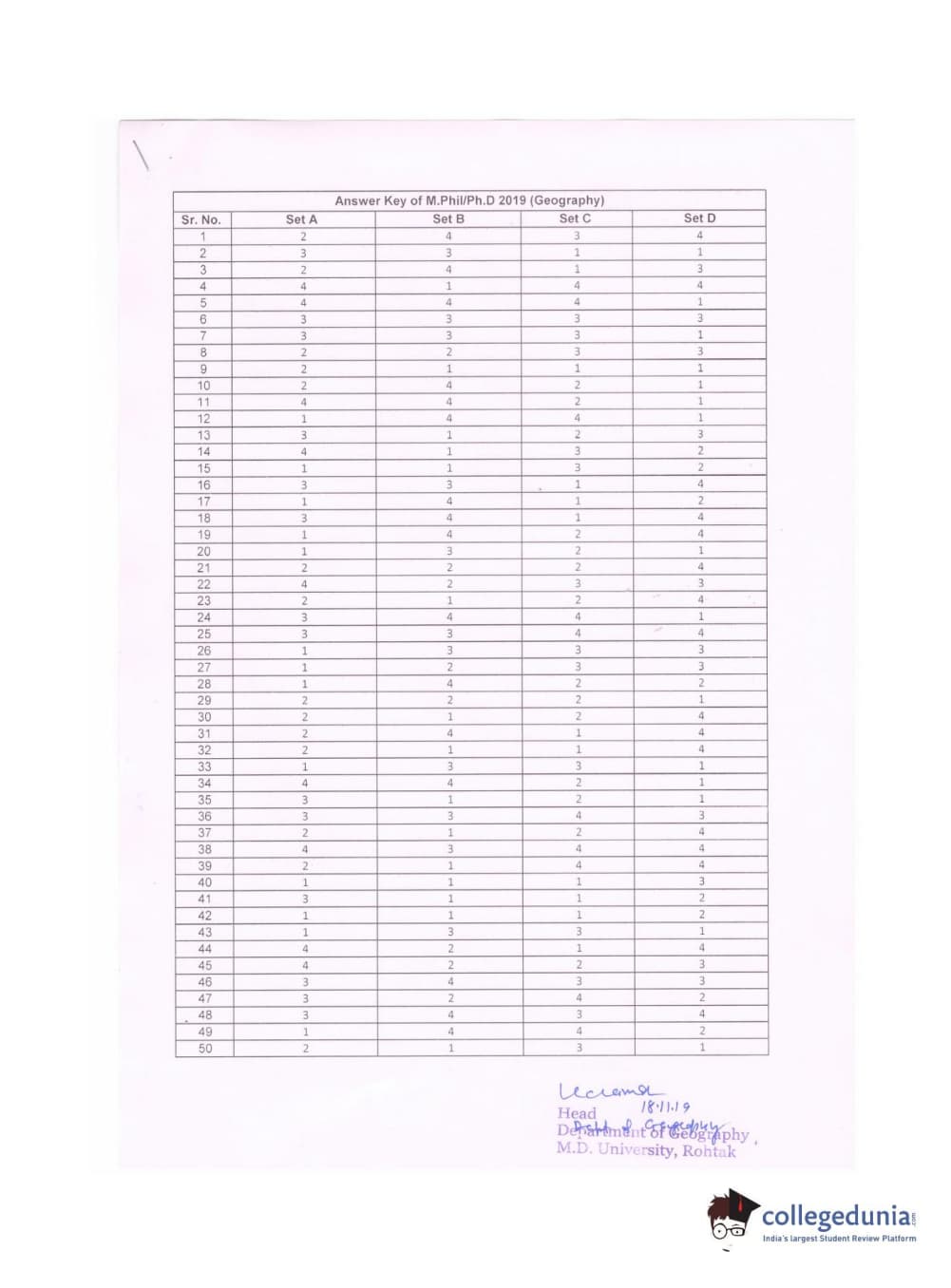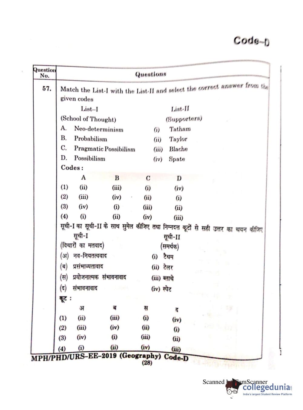 | MDUCEE 2019 Ph.D./M.Phil./URS Geography Set C Question Paper PDF | MDUCEE 2019 Ph.D./M.Phil./URS Geography Set C Answer Key PDF |