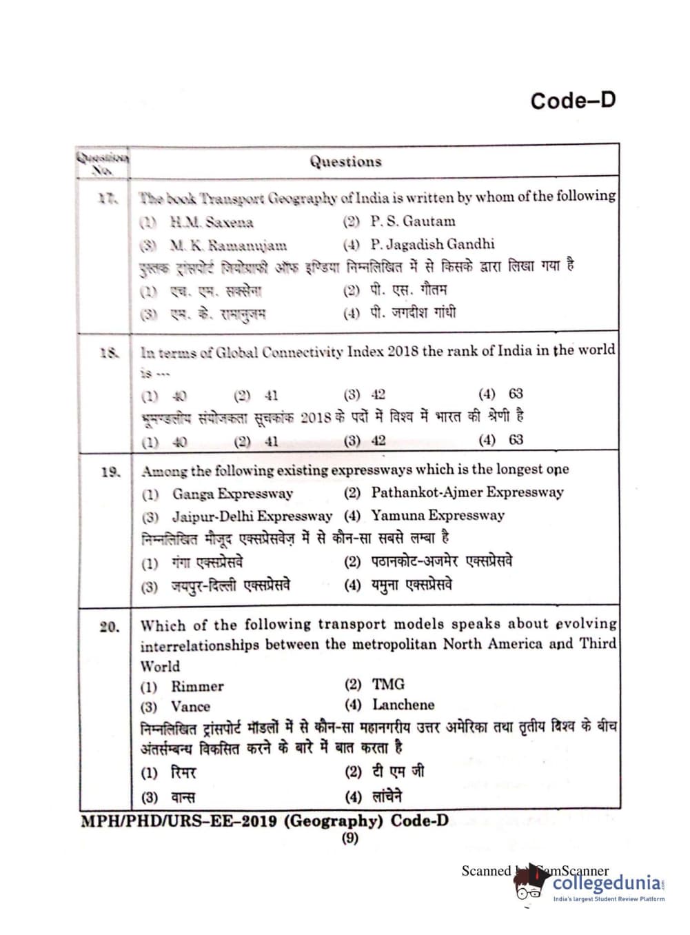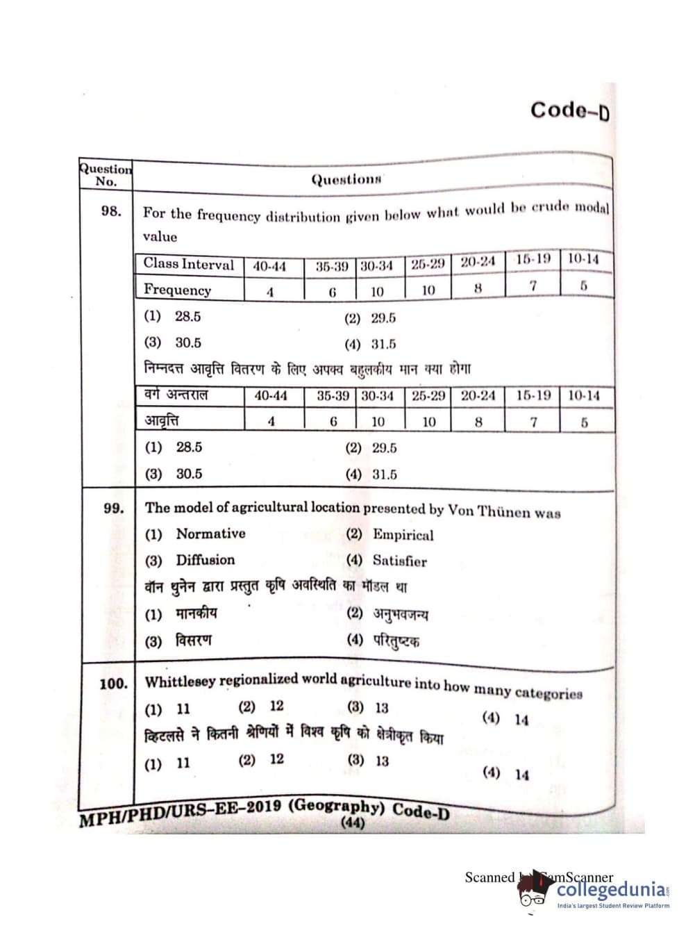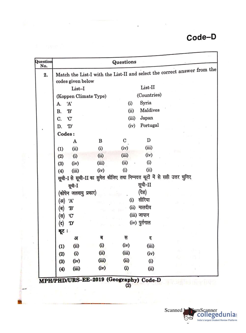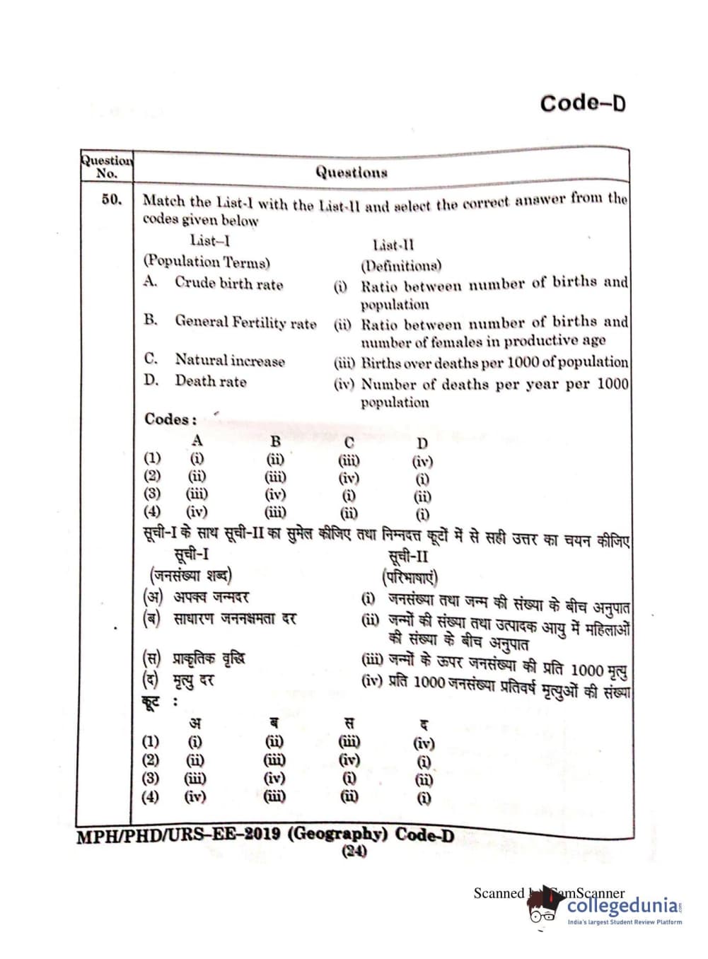 | MDUCEE 2019 Ph.D./M.Phil./URS Geography Set C Question Paper PDF | MDUCEE 2019 Ph.D./M.Phil./URS Geography Set C Answer Key PDF |