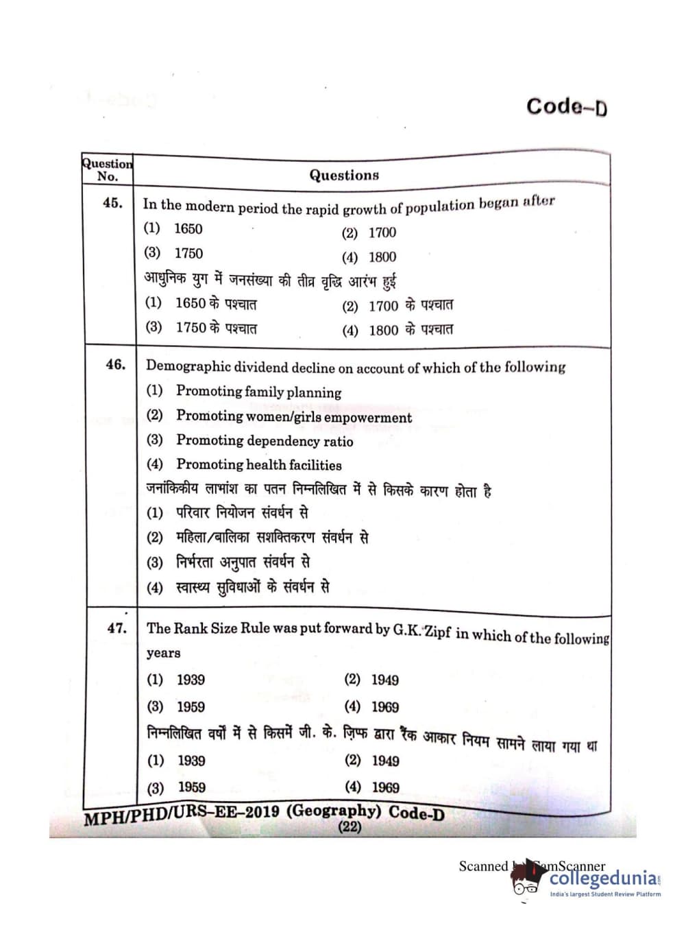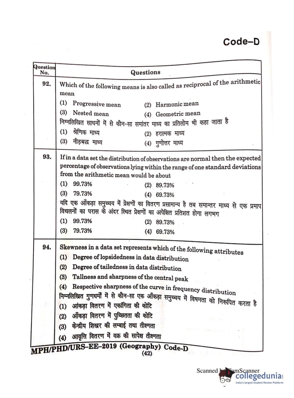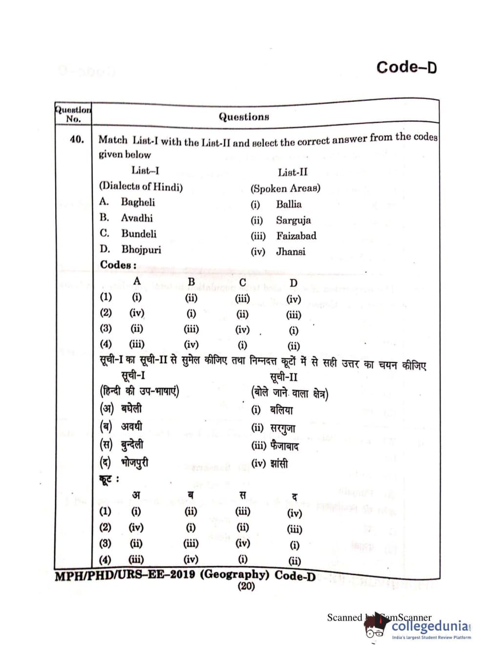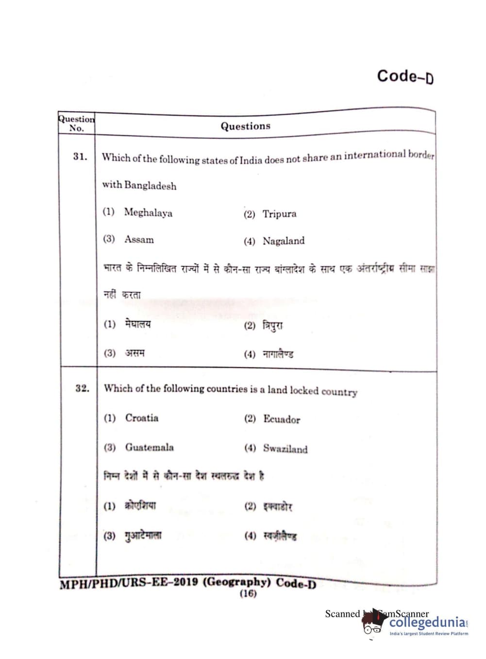 | MDUCEE 2019 Ph.D./M.Phil./URS Geography Set C Question Paper PDF | MDUCEE 2019 Ph.D./M.Phil./URS Geography Set C Answer Key PDF |