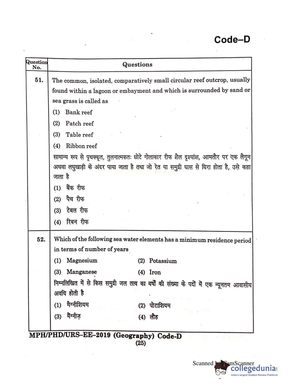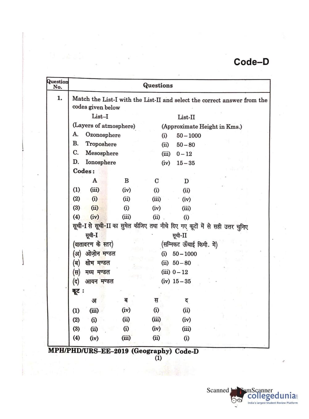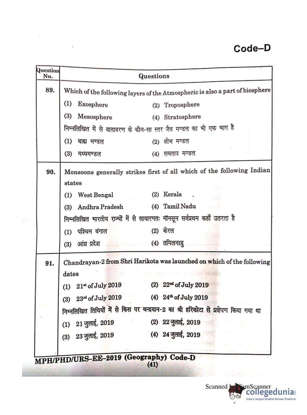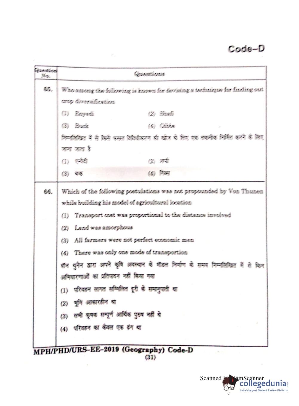 | MDUCEE 2019 Ph.D./M.Phil./URS Geography Set D Question Paper PDF | MDUCEE 2019 Ph.D./M.Phil./URS Geography Set D Answer Key PDF |