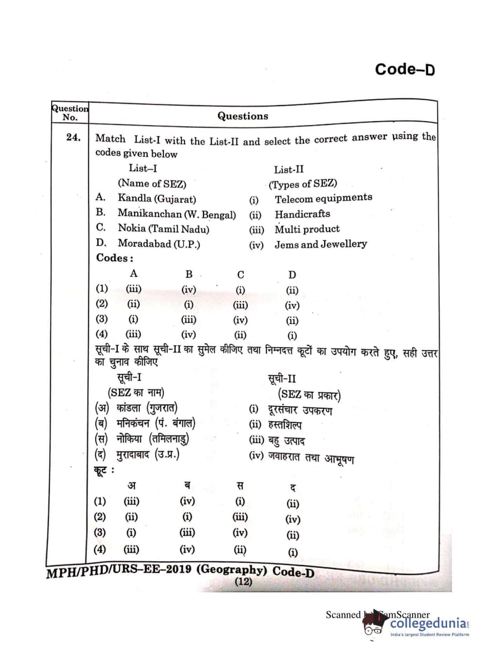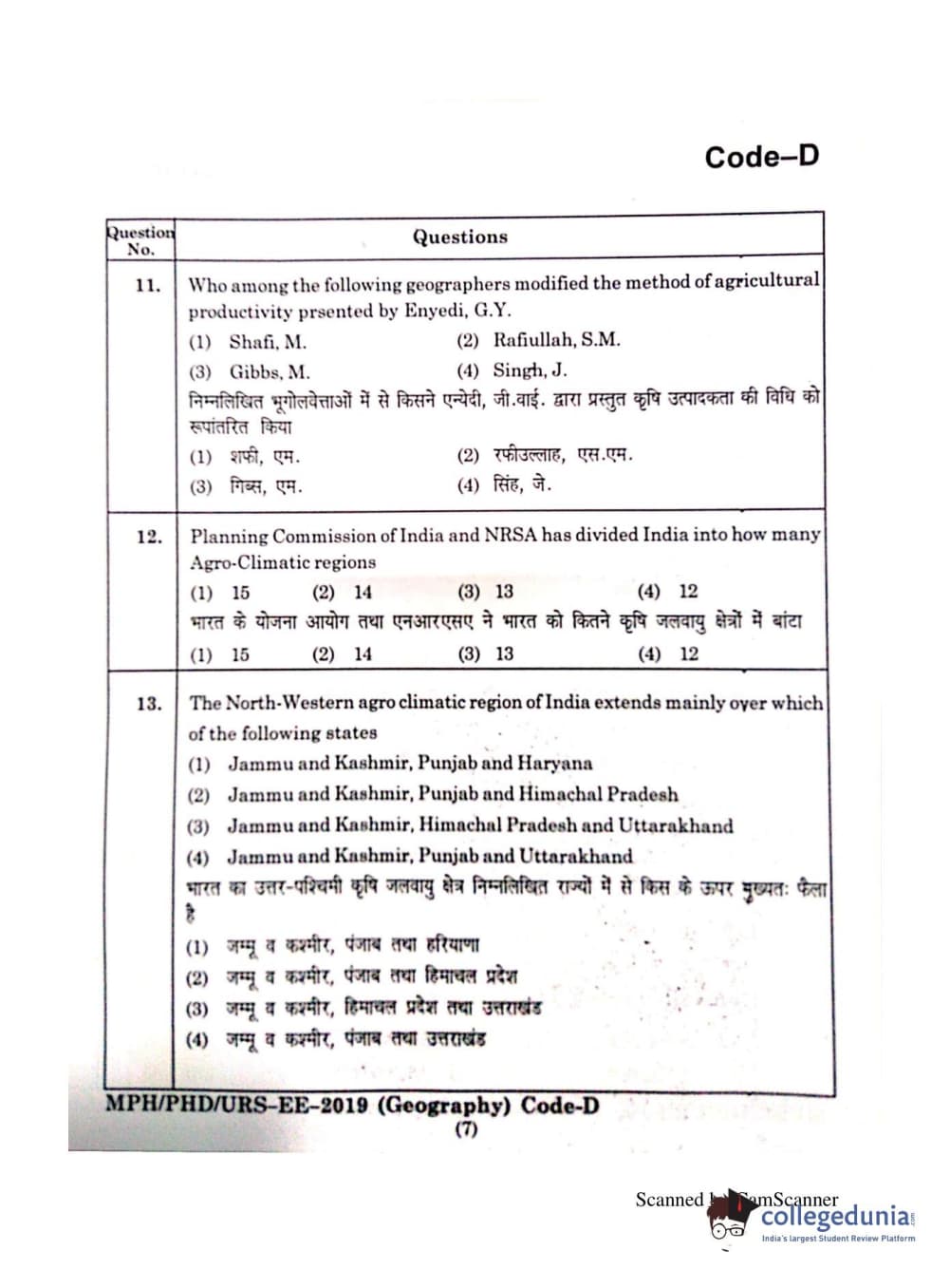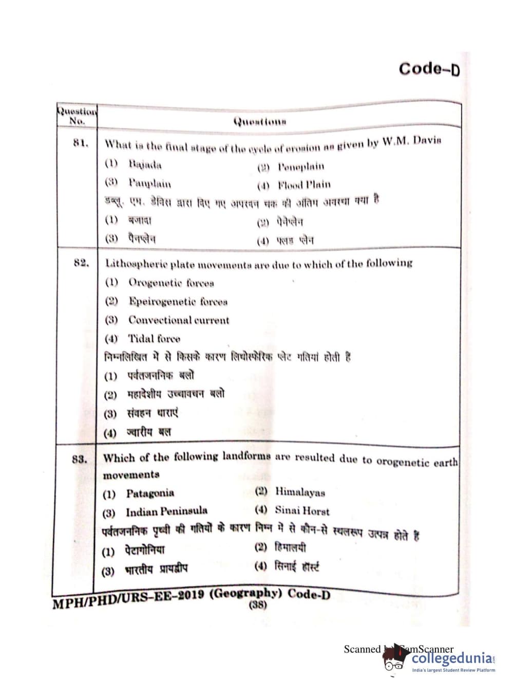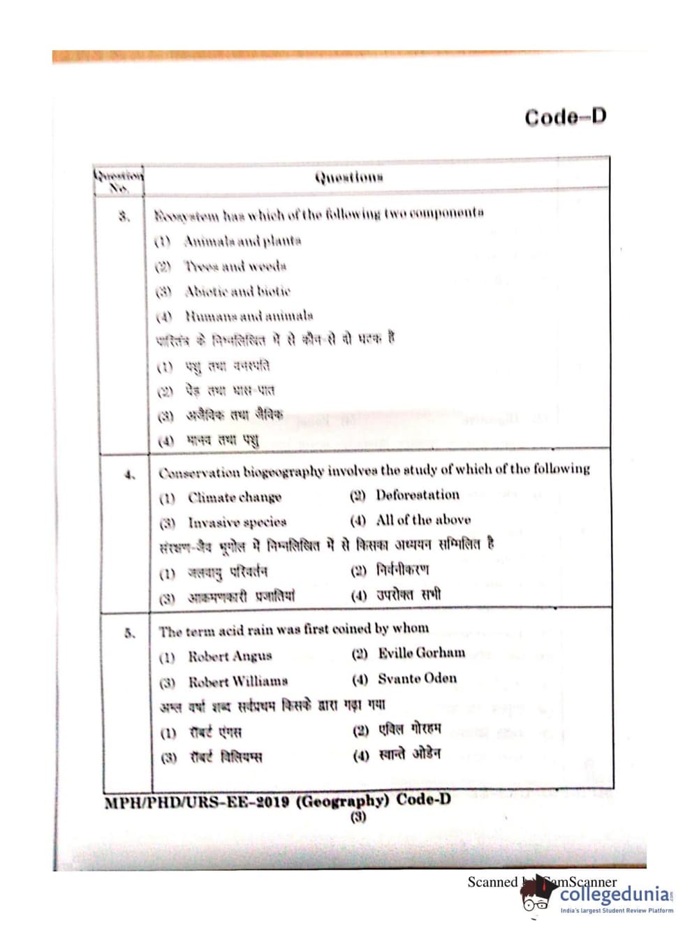 | MDUCEE 2019 Ph.D./M.Phil./URS Geography Set D Question Paper PDF | MDUCEE 2019 Ph.D./M.Phil./URS Geography Set D Answer Key PDF |
