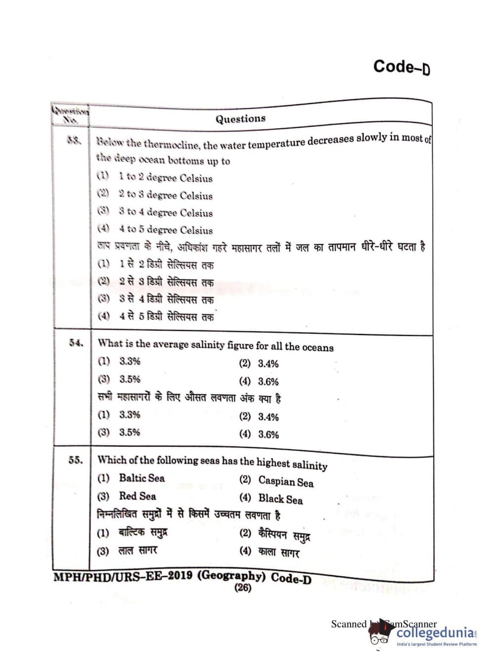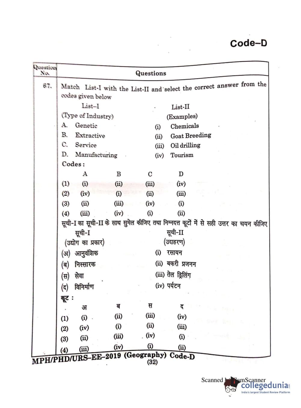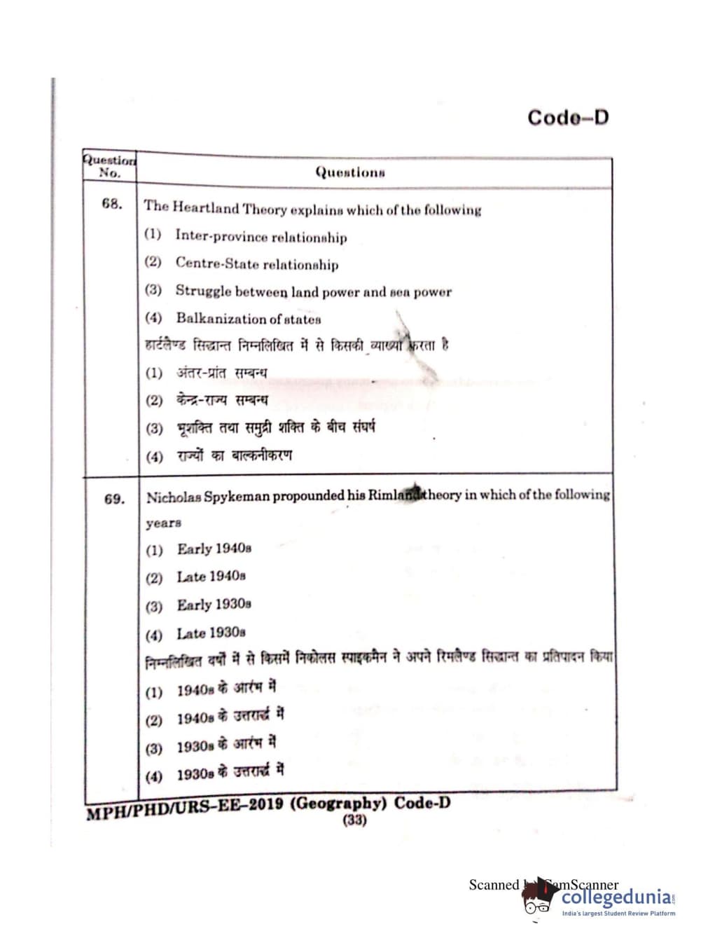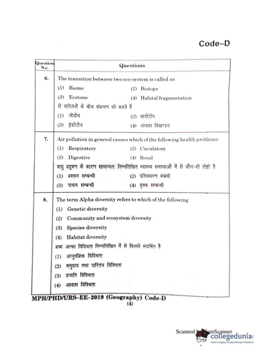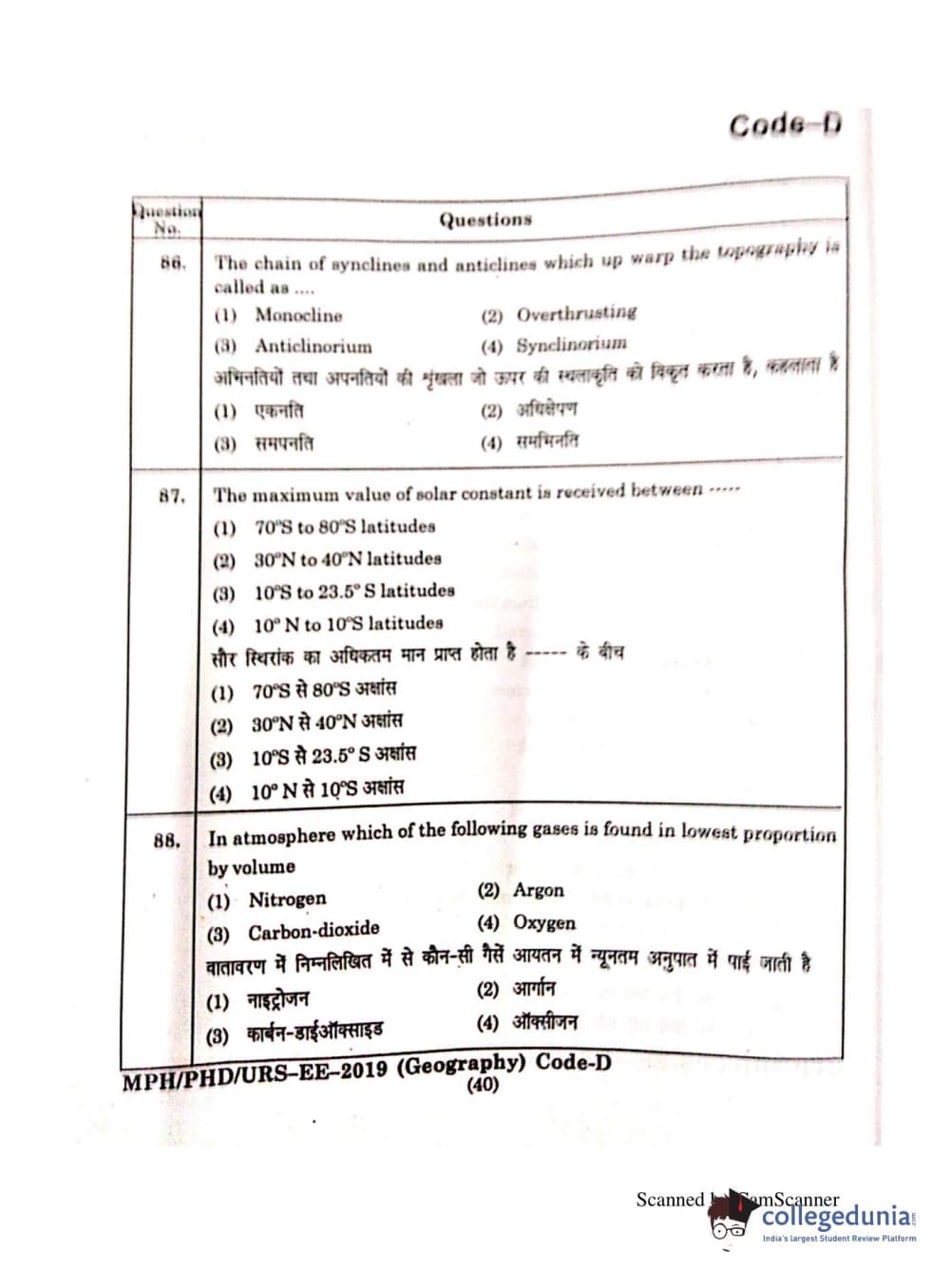 | MDUCEE 2019 Ph.D./M.Phil./URS Geography Set D Question Paper PDF | MDUCEE 2019 Ph.D./M.Phil./URS Geography Set D Answer Key PDF |