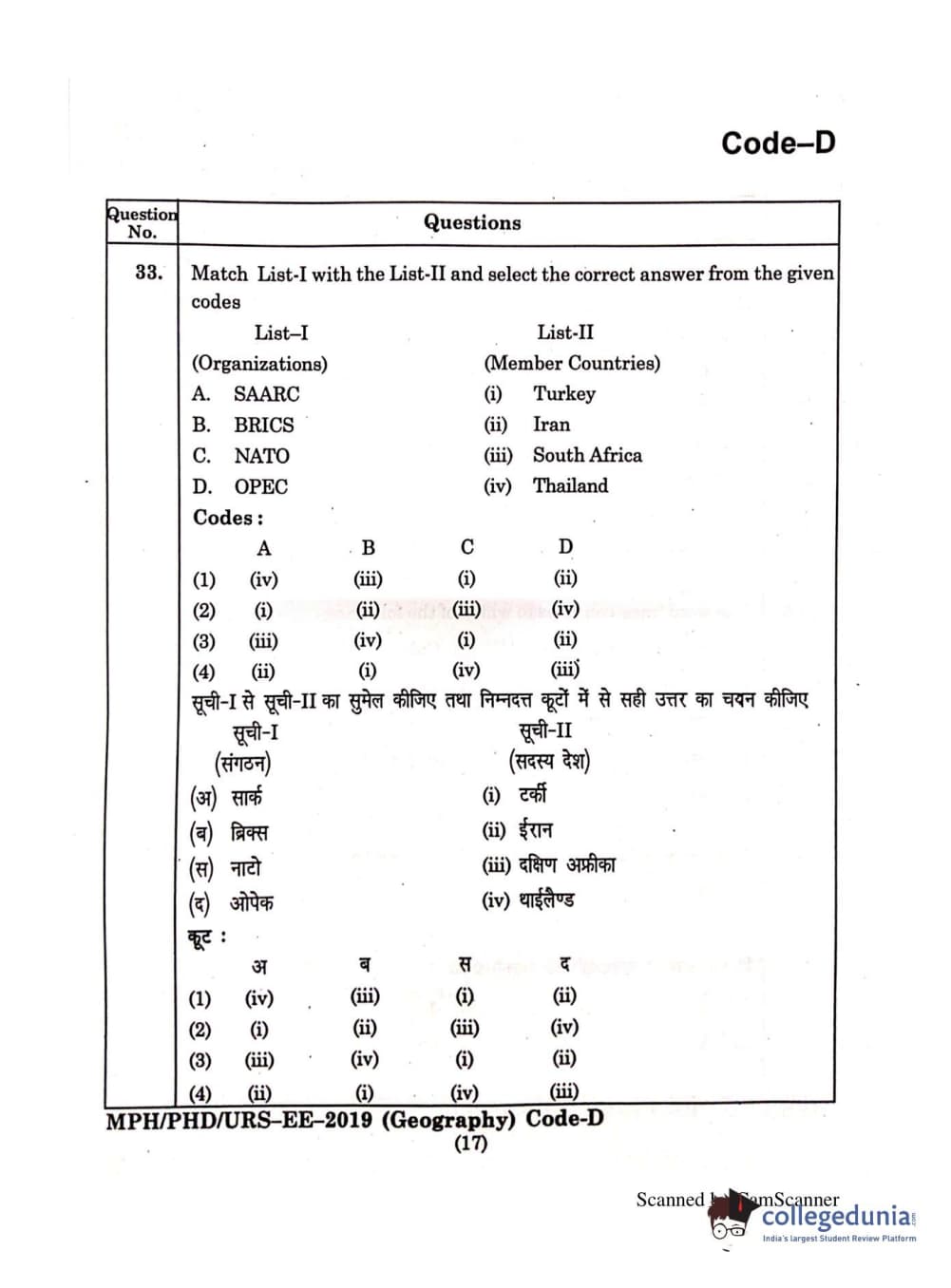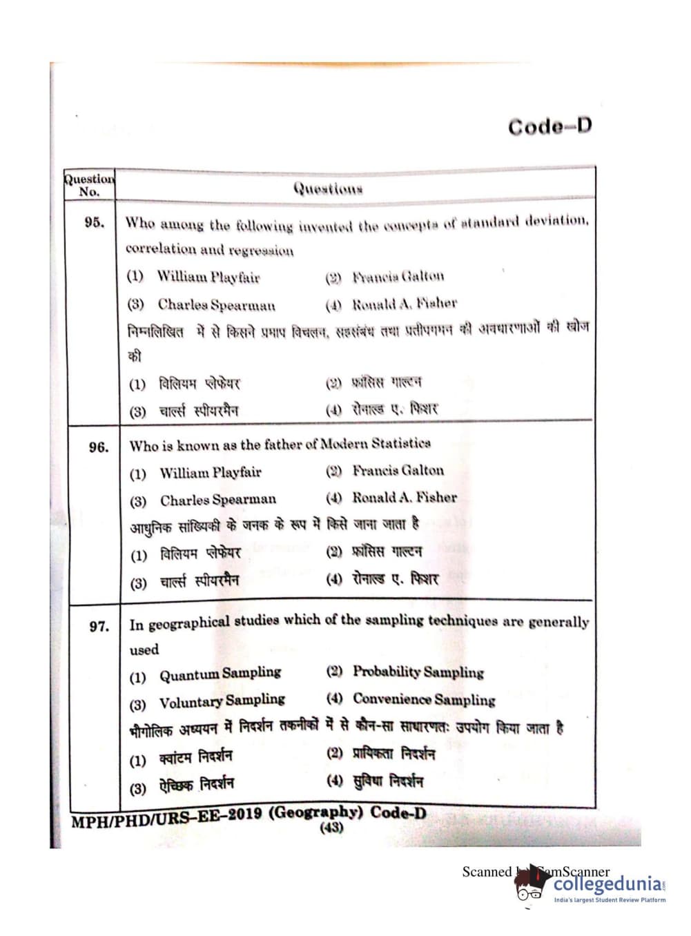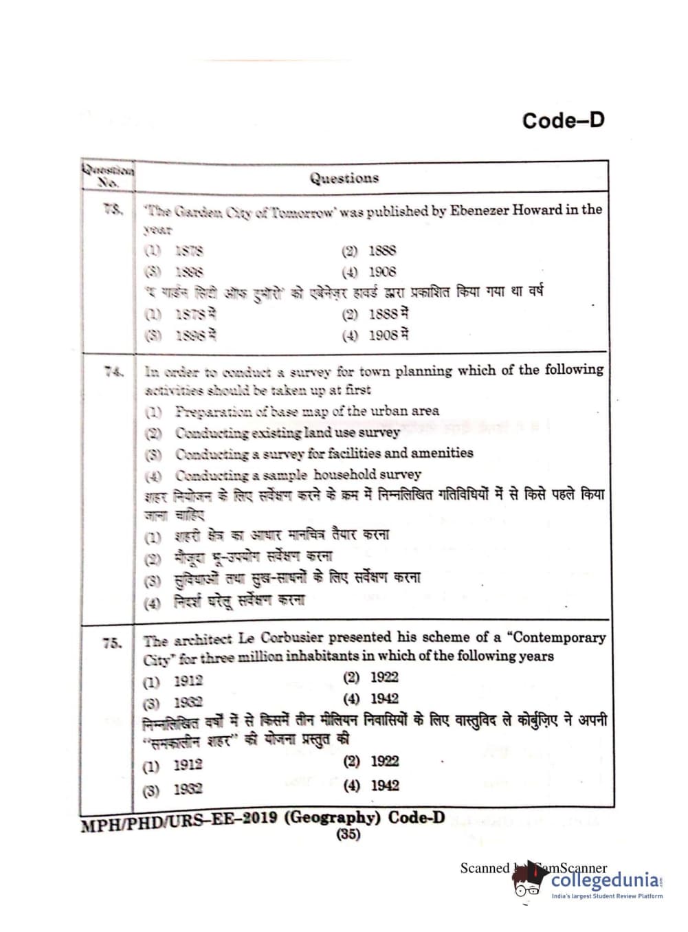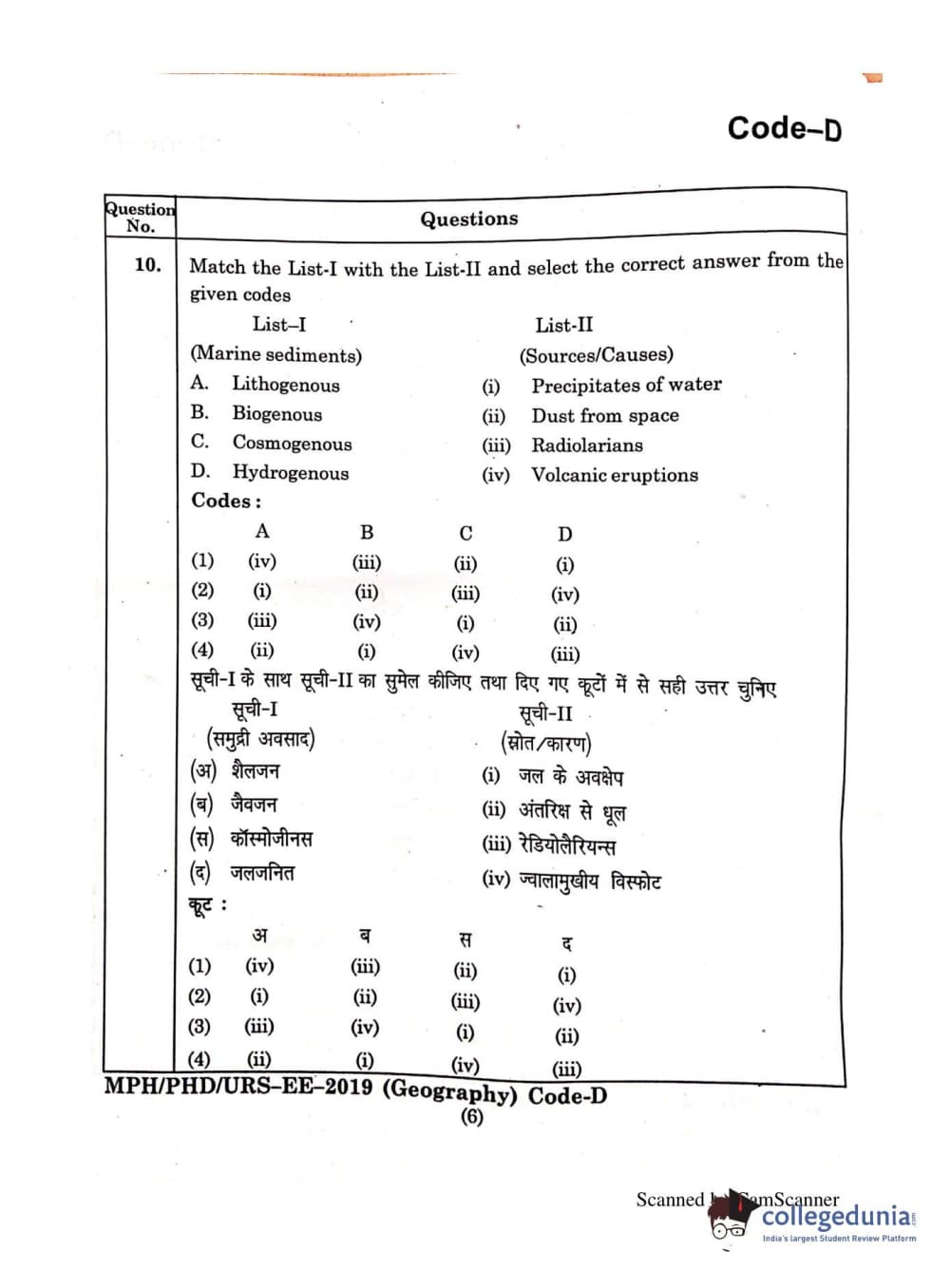 | MDUCEE 2019 Ph.D./M.Phil./URS Geography Set D Question Paper PDF | MDUCEE 2019 Ph.D./M.Phil./URS Geography Set D Answer Key PDF |