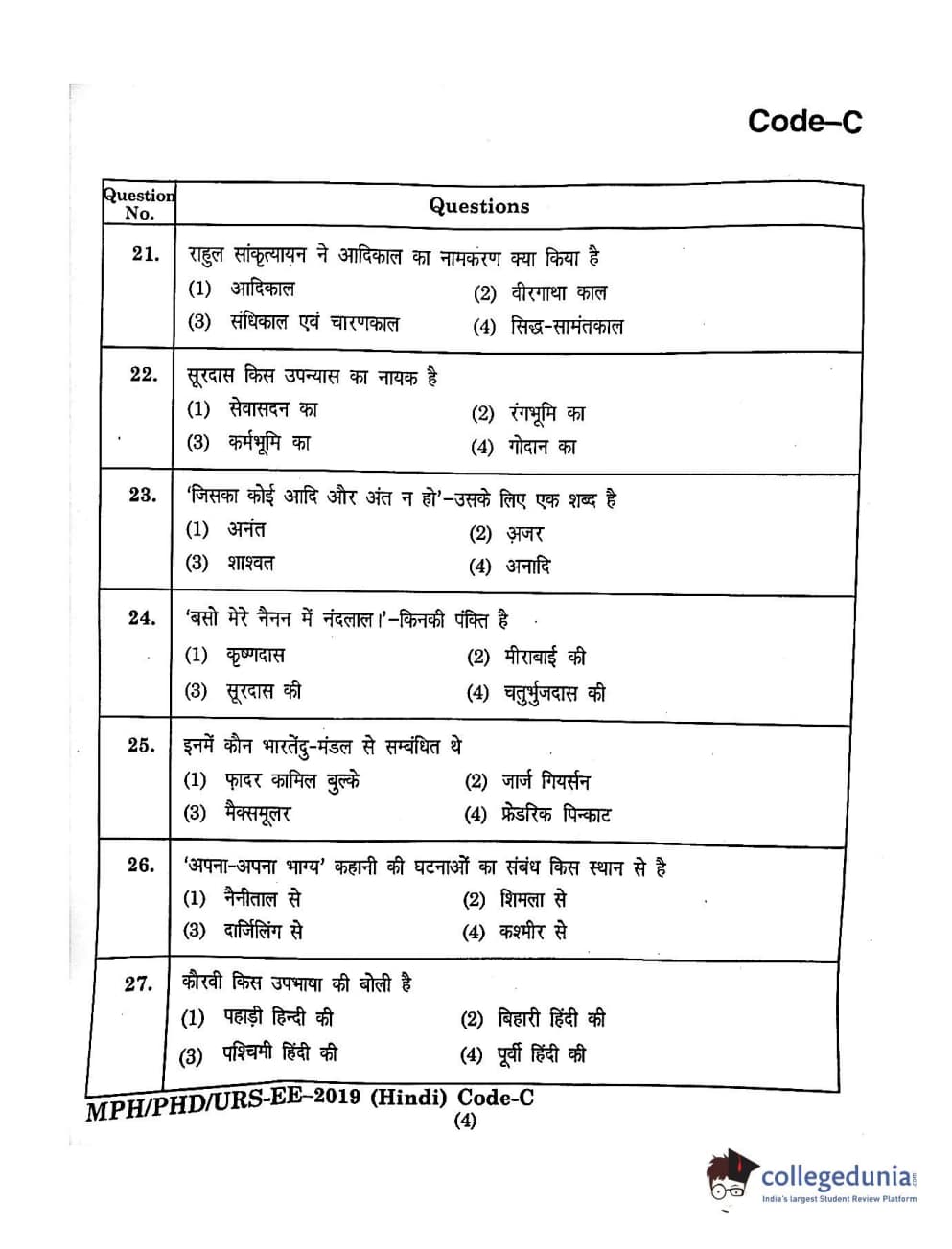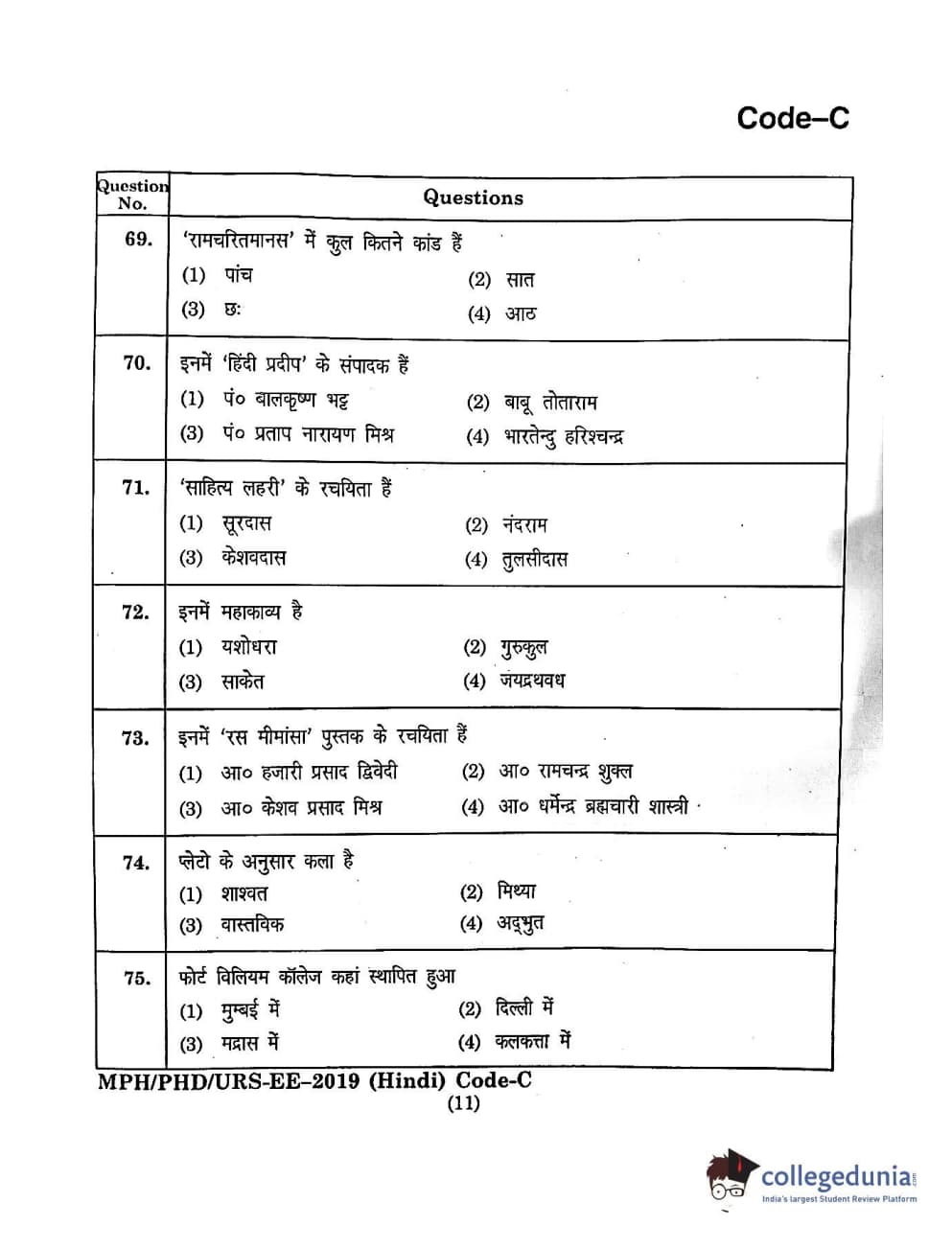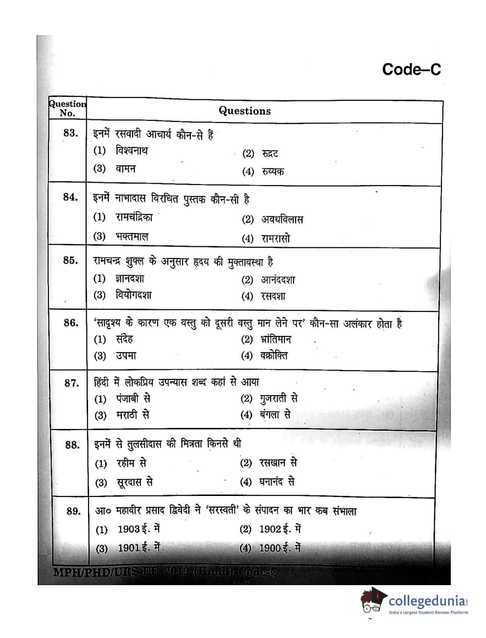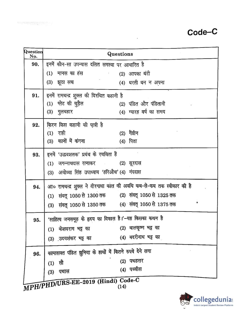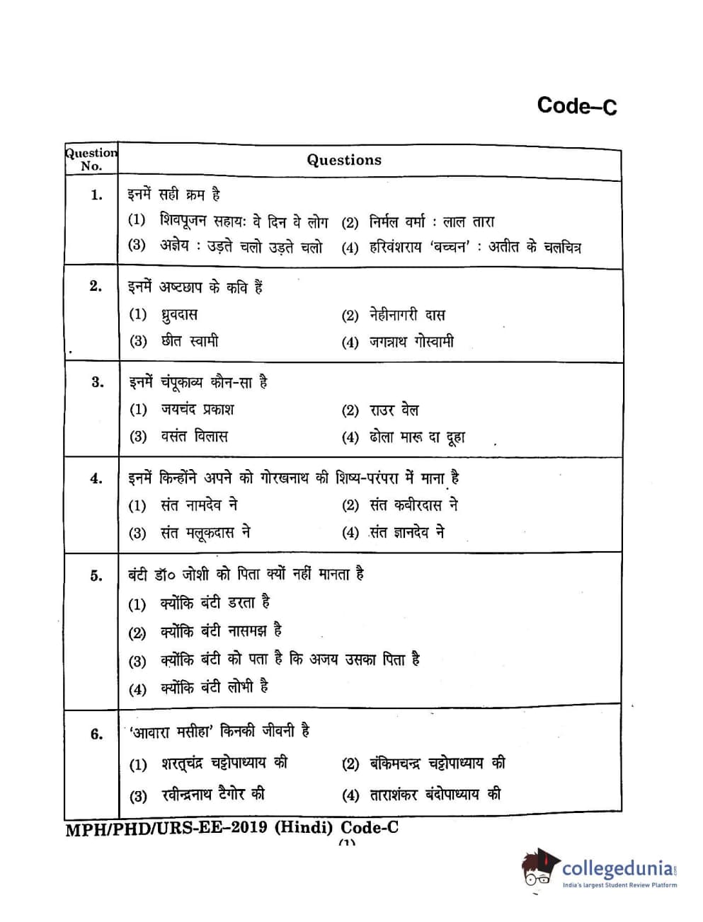 MDUCEE 2019 Ph.D./M.Phil./URS Hindi Set C Question Paper with Answer Key PDFs