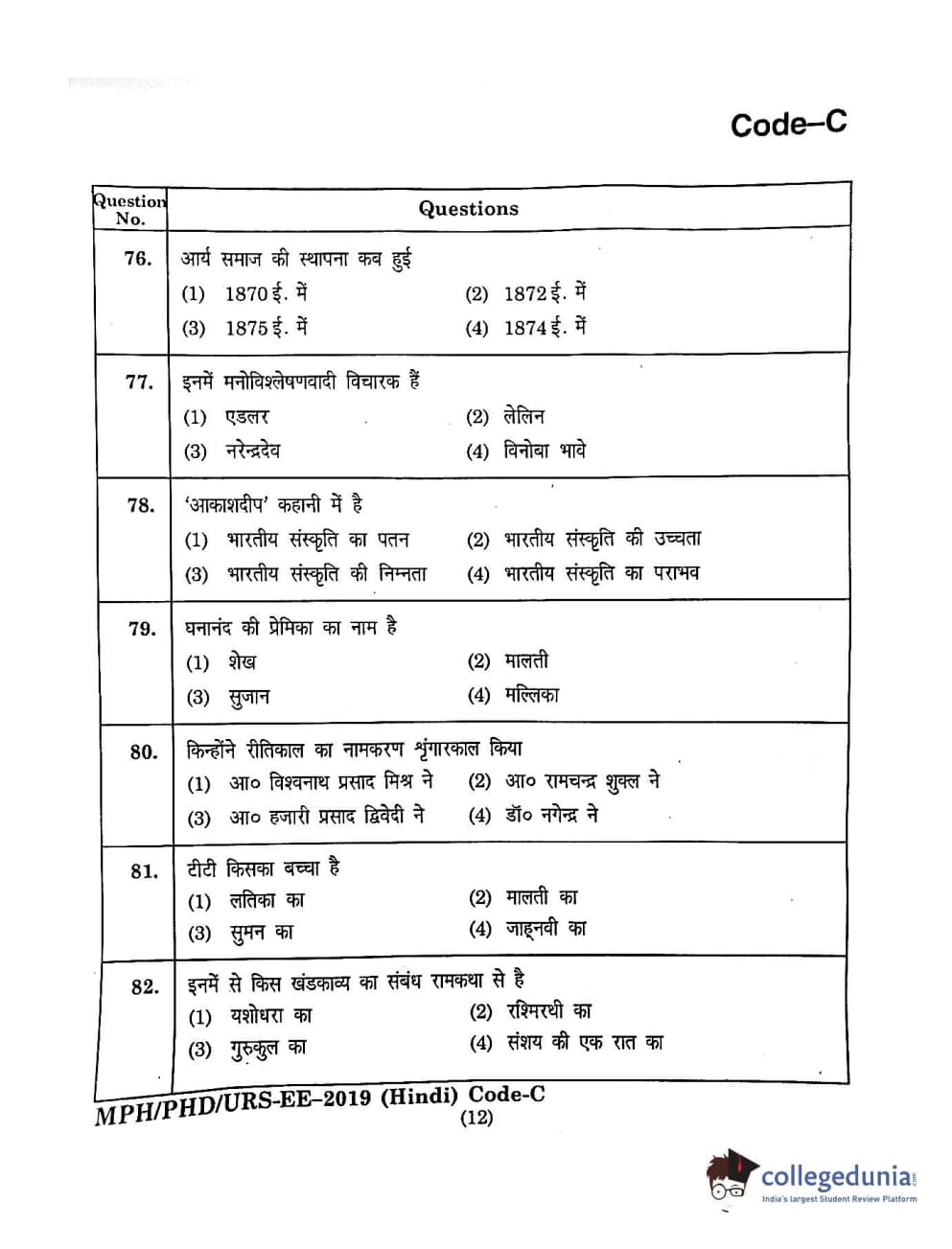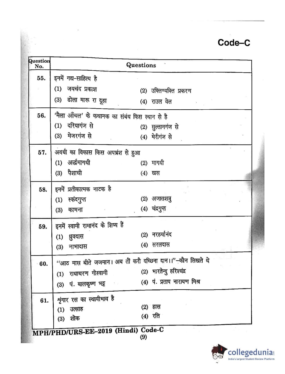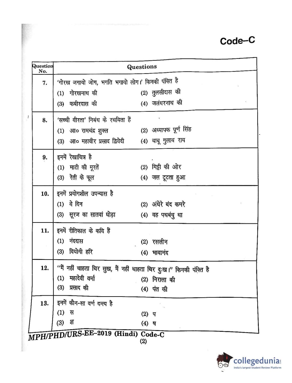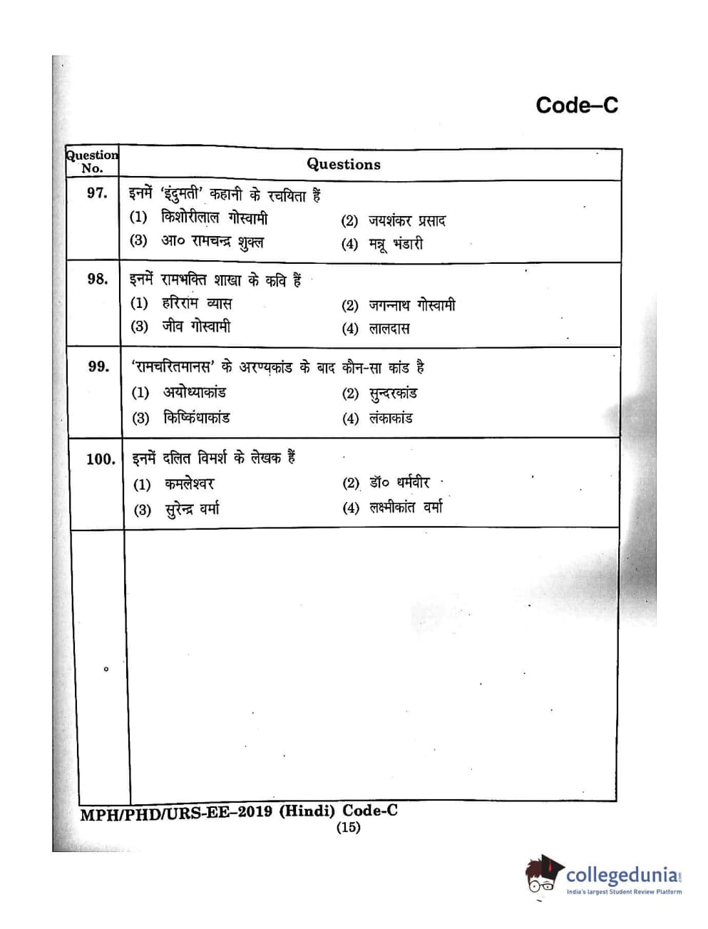 MDUCEE 2019 Ph.D./M.Phil./URS Hindi Set C Question Paper with Answer Key PDFs