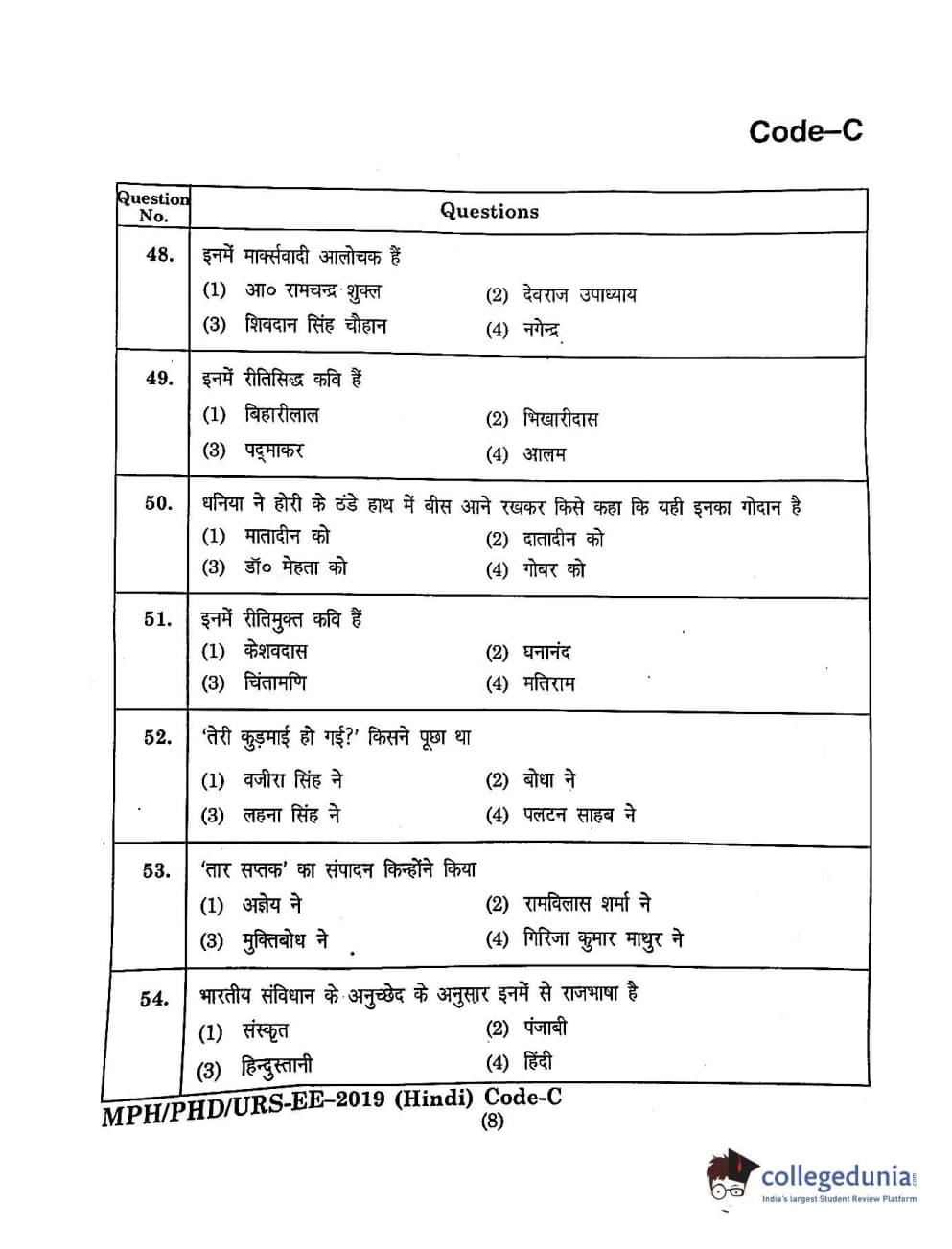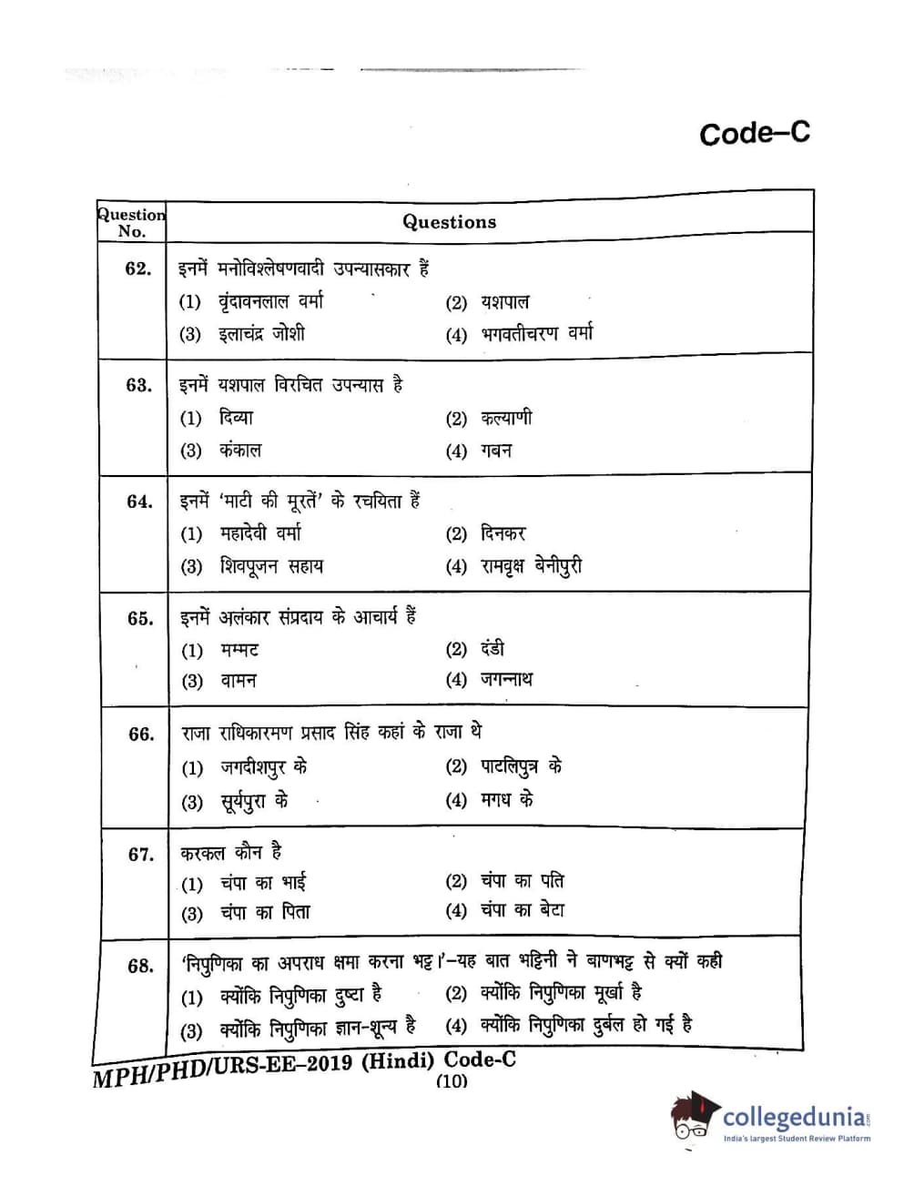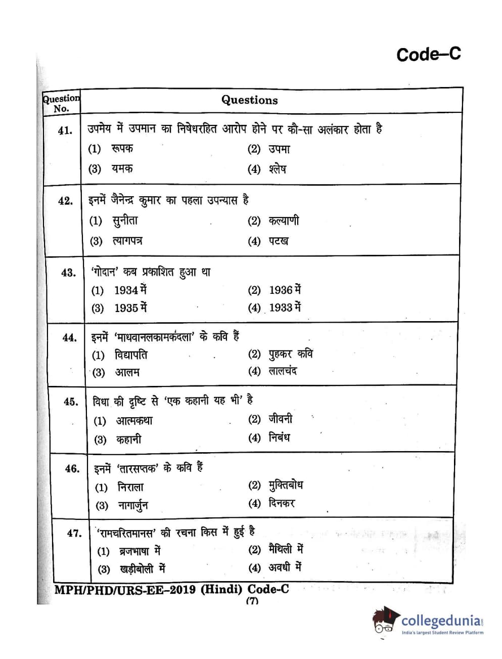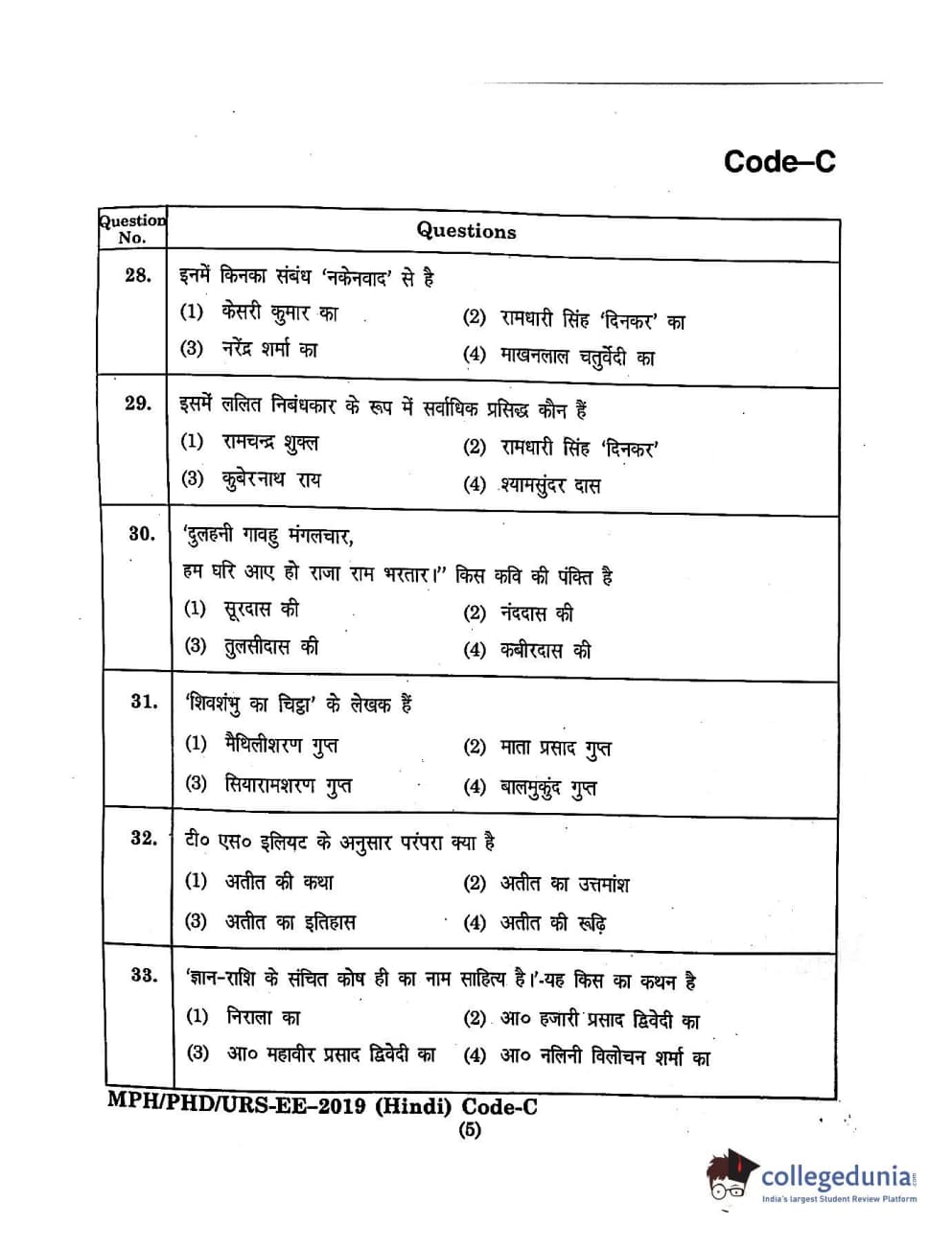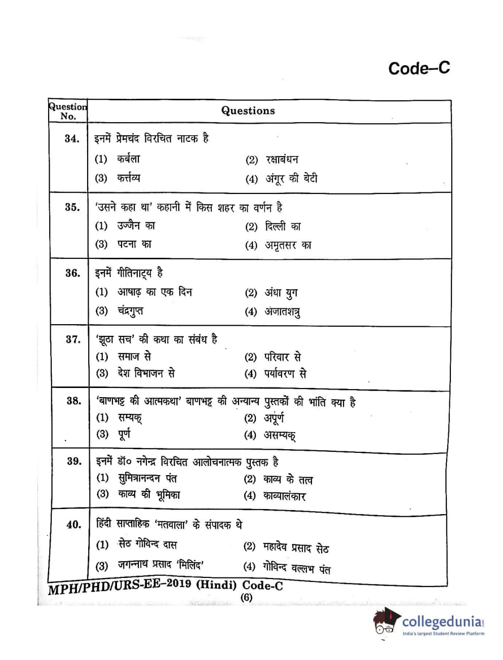 MDUCEE 2019 Ph.D./M.Phil./URS Hindi Set C Question Paper with Answer Key PDFs