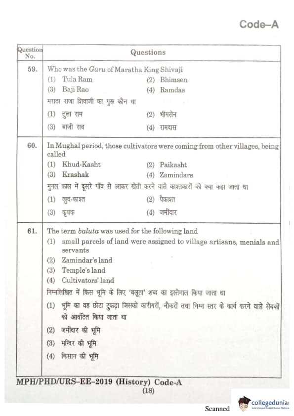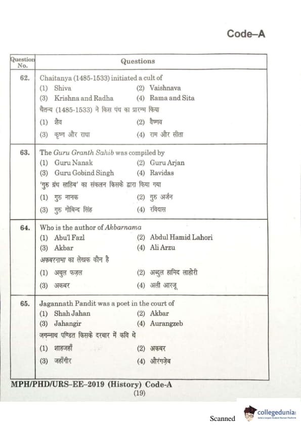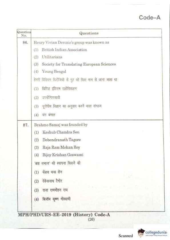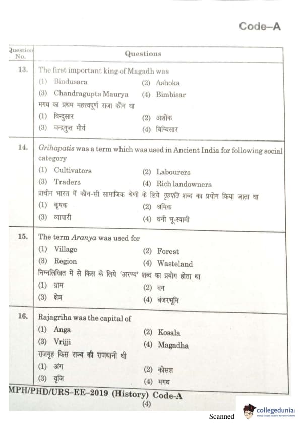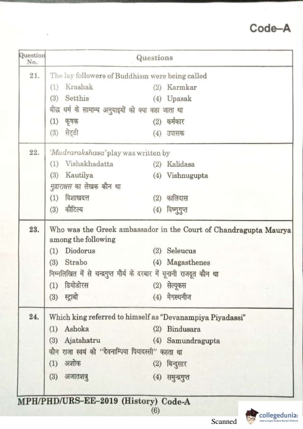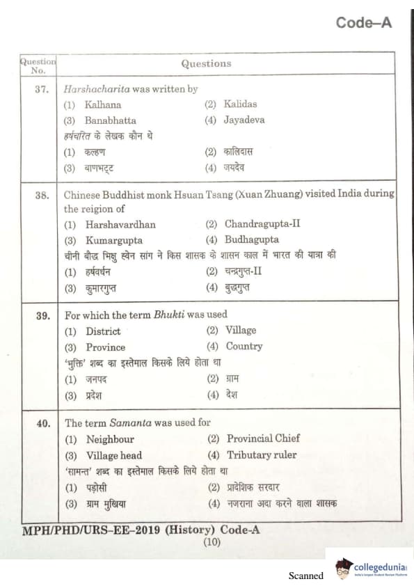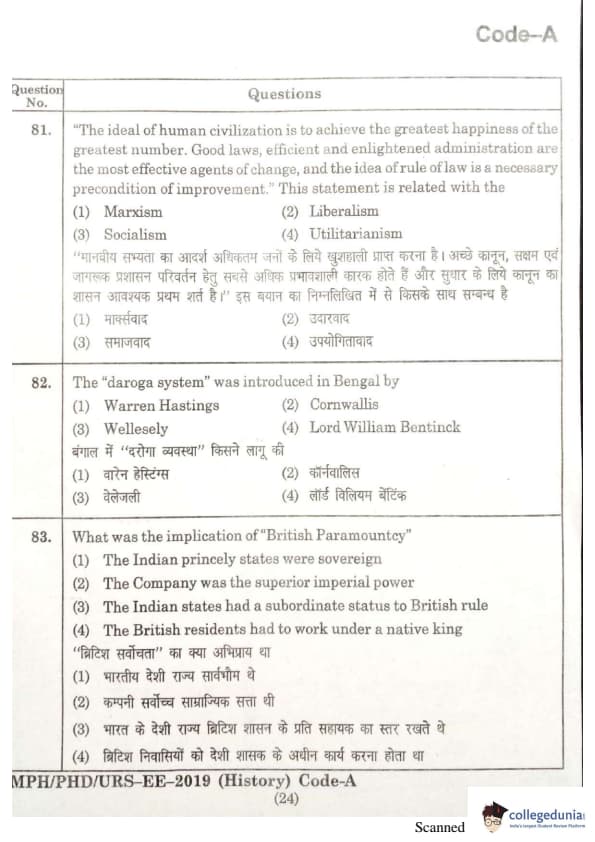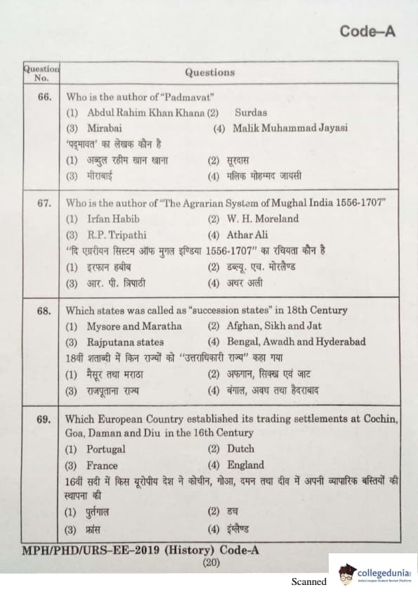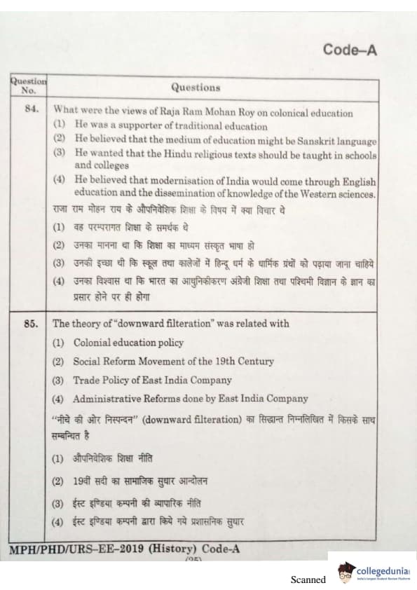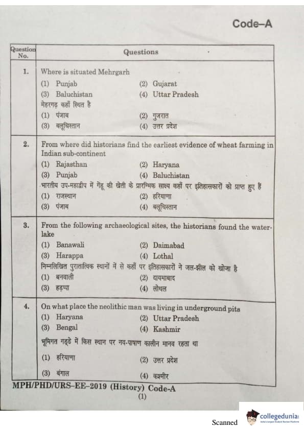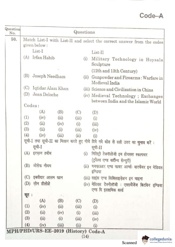 | MDUCEE 2019 Ph.D./M.Phil./URS History Set A Question Paper PDF | MDUCEE 2019 Ph.D./M.Phil./URS History Set A Answer Key PDF |