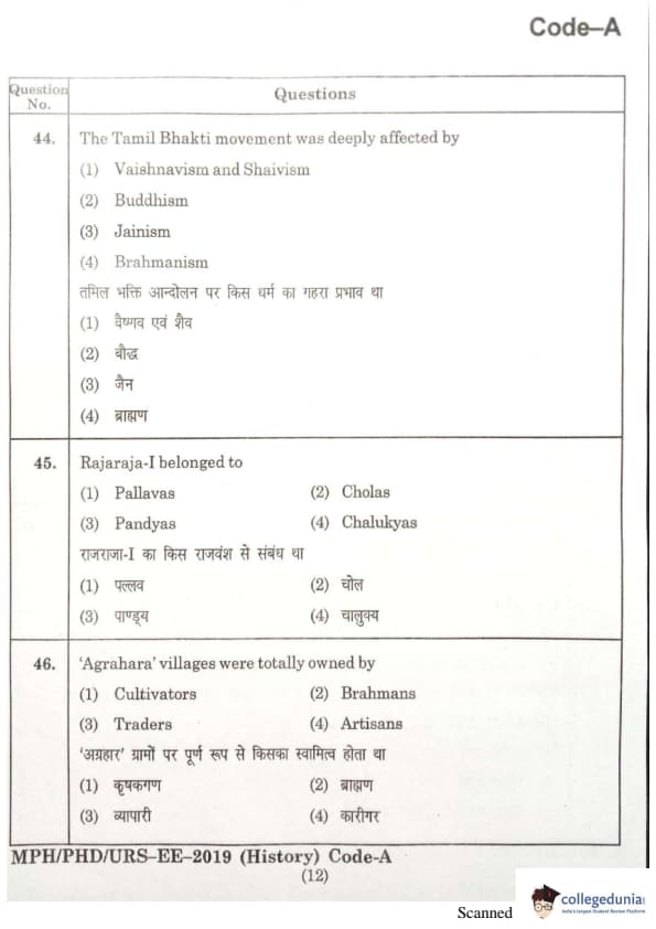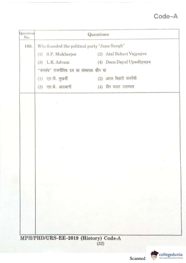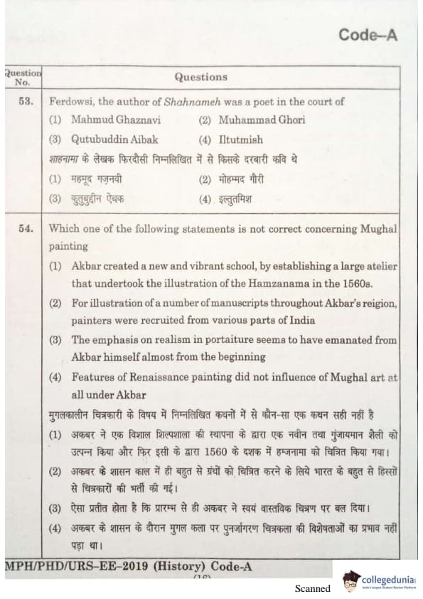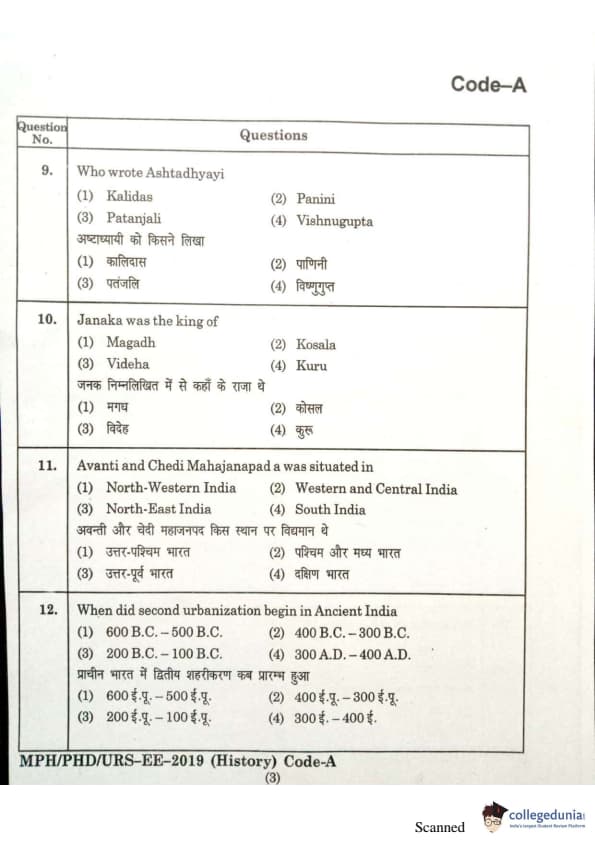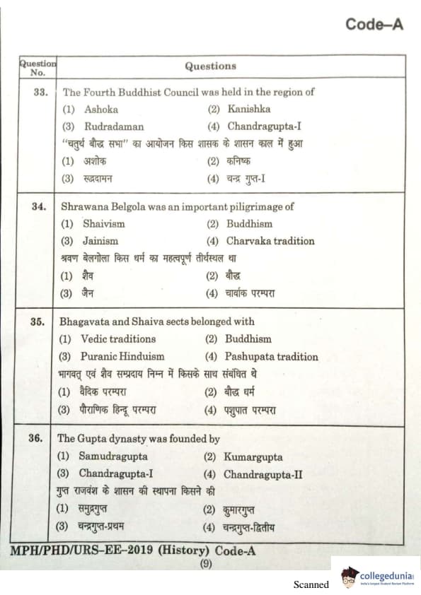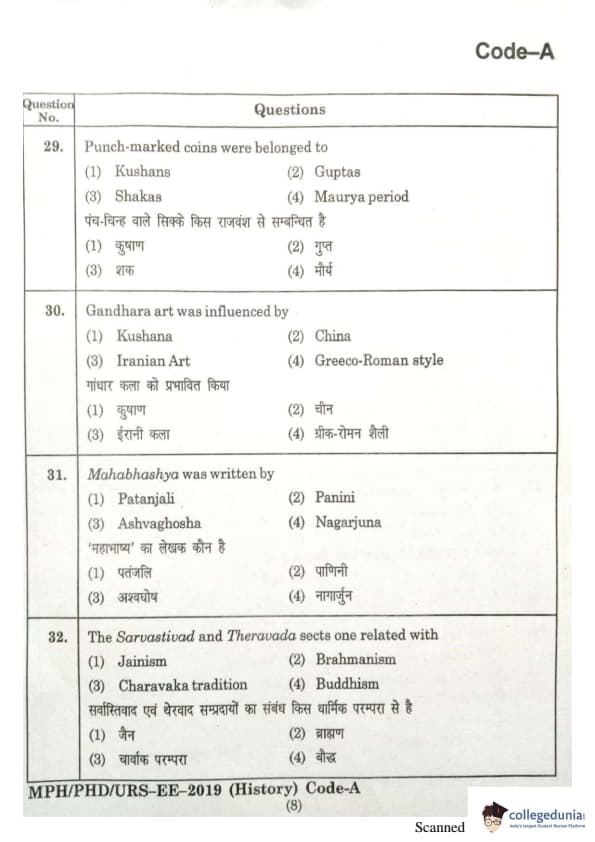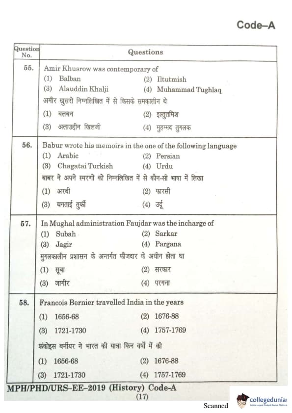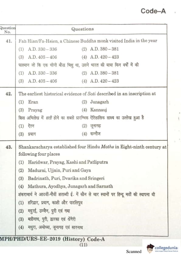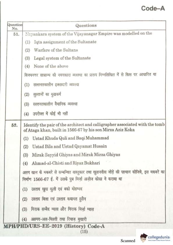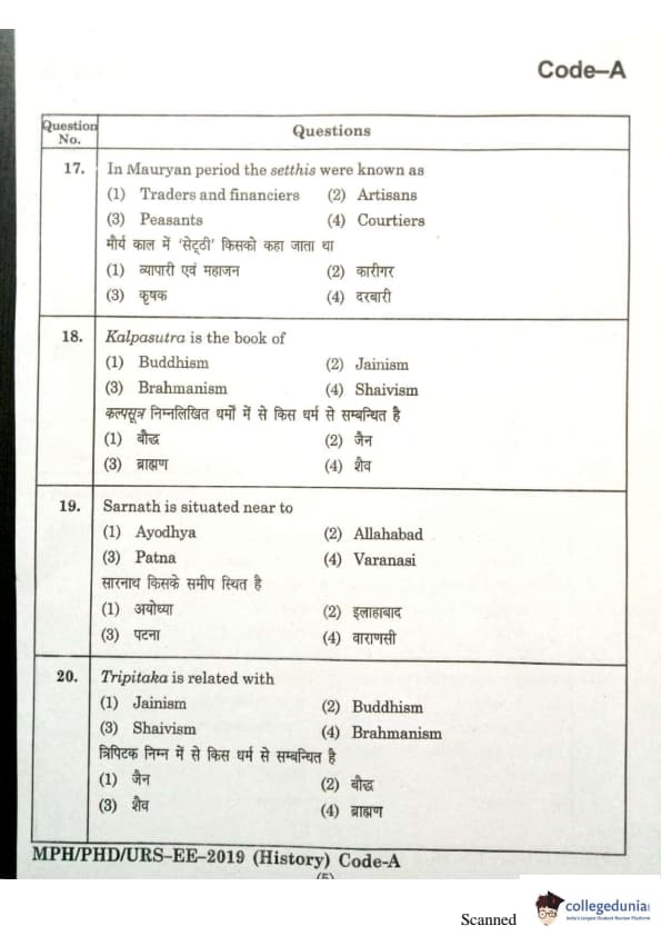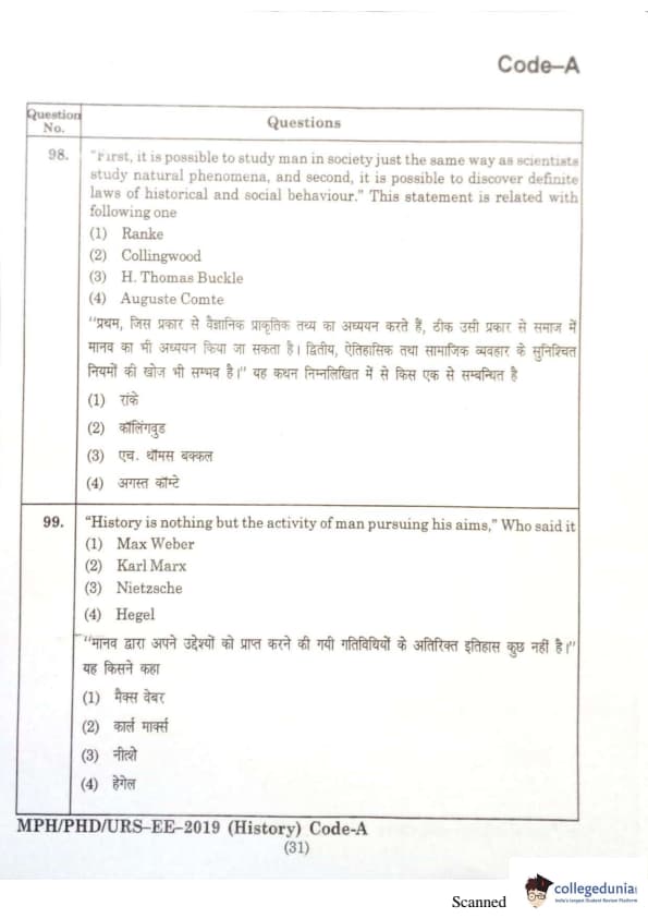 | MDUCEE 2019 Ph.D./M.Phil./URS History Set A Question Paper PDF | MDUCEE 2019 Ph.D./M.Phil./URS History Set A Answer Key PDF |