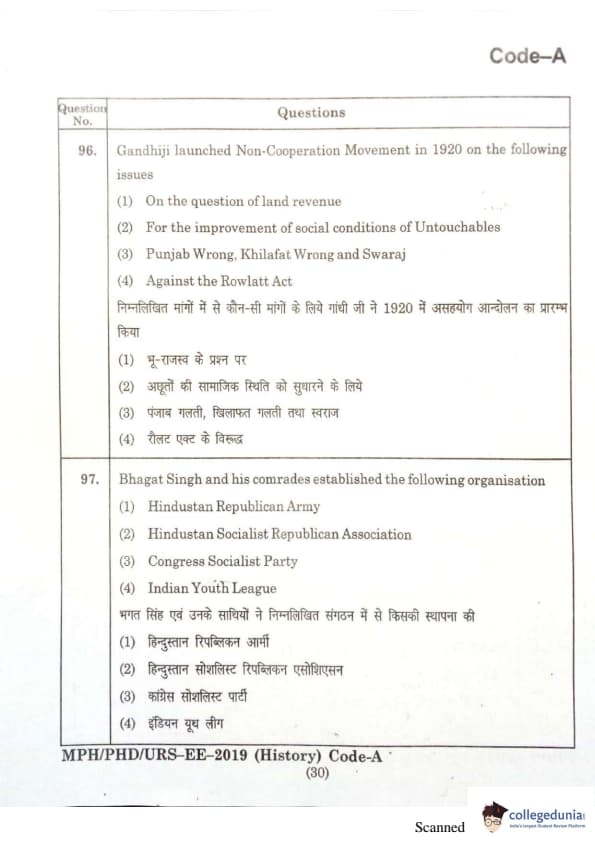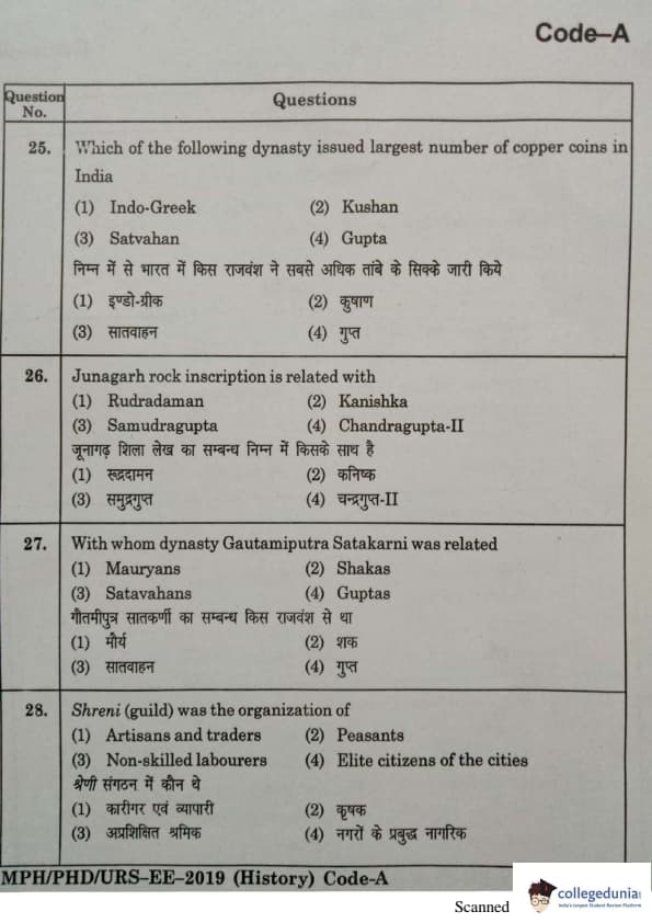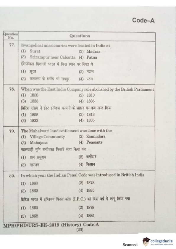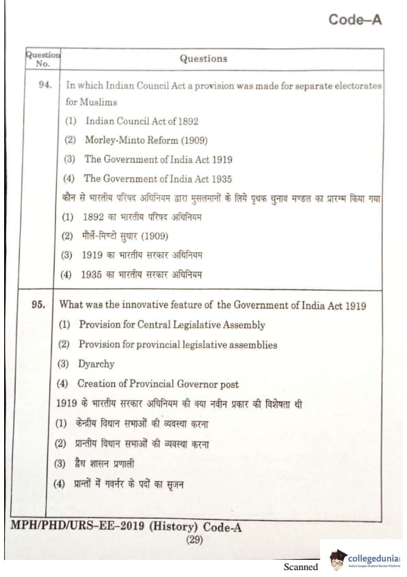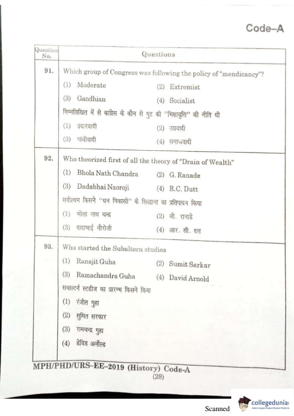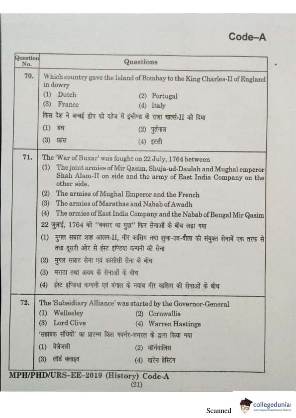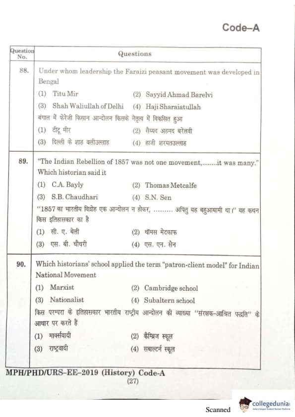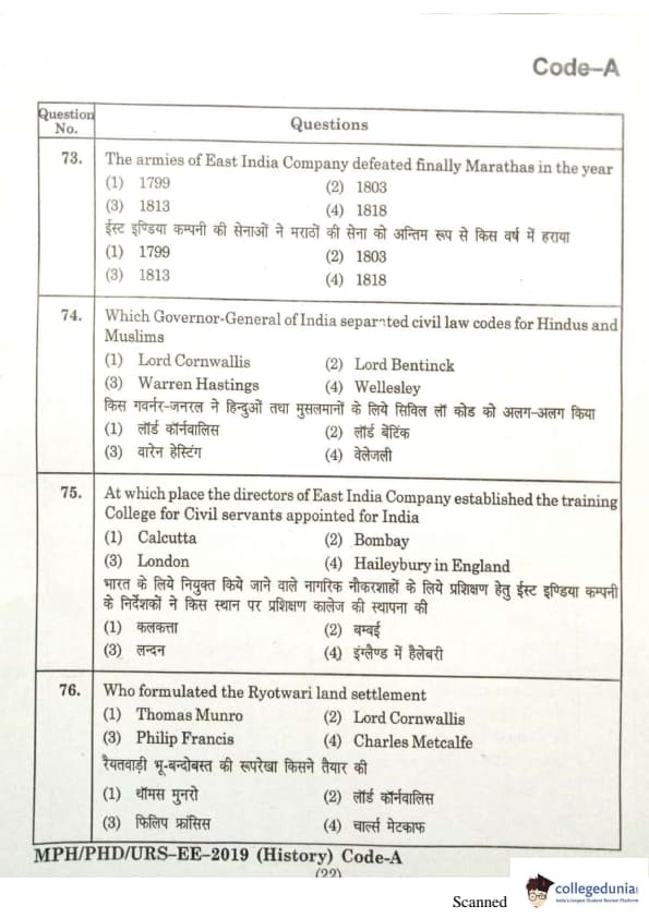 MDUCEE 2019 Ph.D./M.Phil./URS History Set A Question Paper with Answer Key PDFs