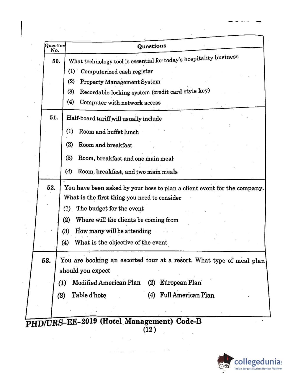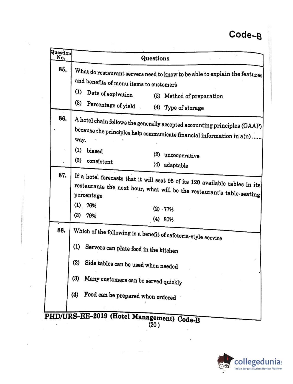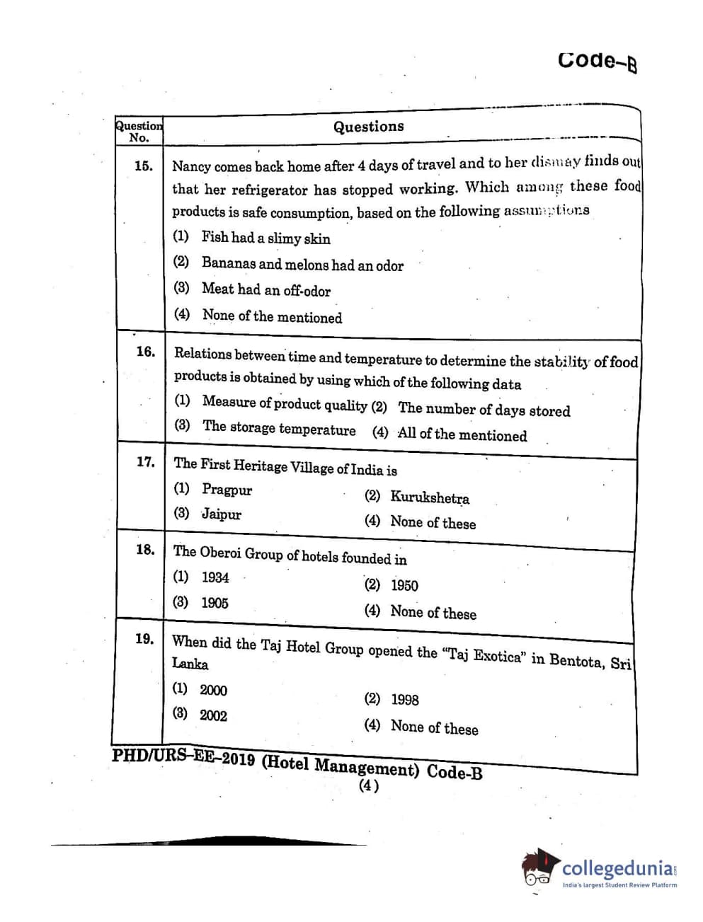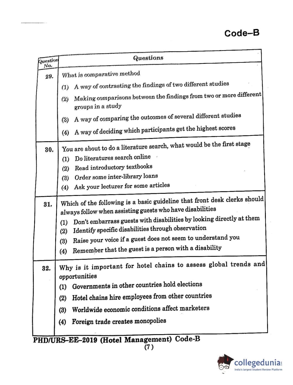 MDUCEE 2019 Ph.D./M.Phil./URS Hotel Management Set B Question Paper with Answer Key PDFs