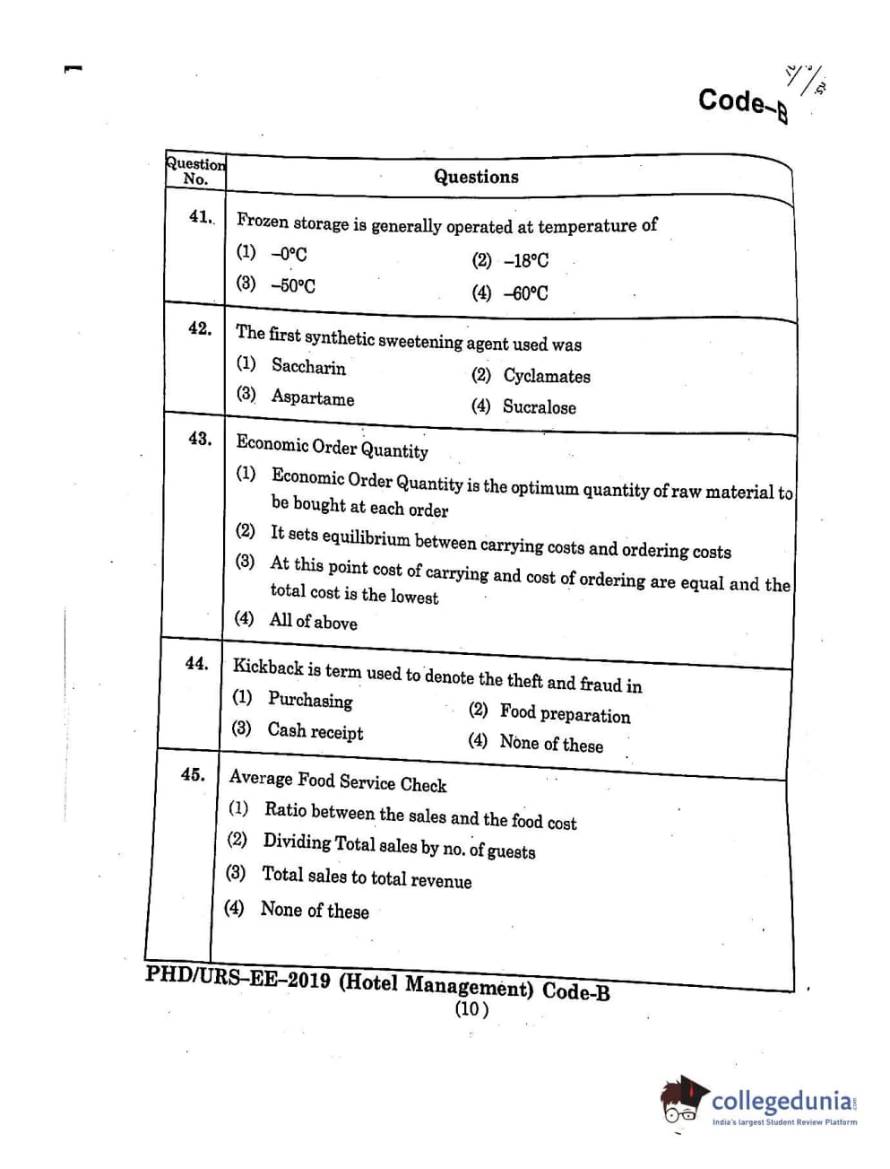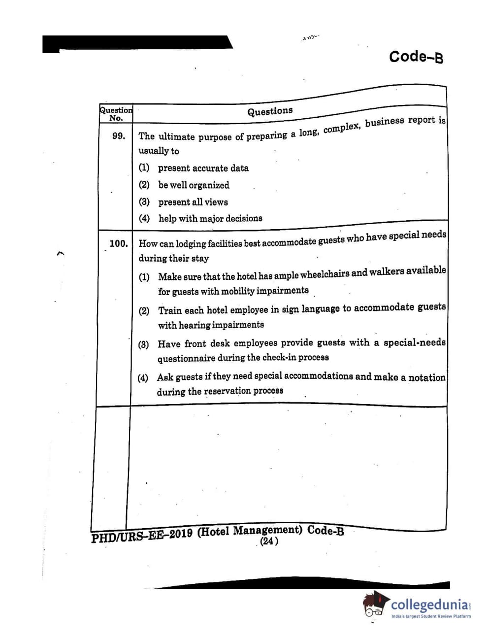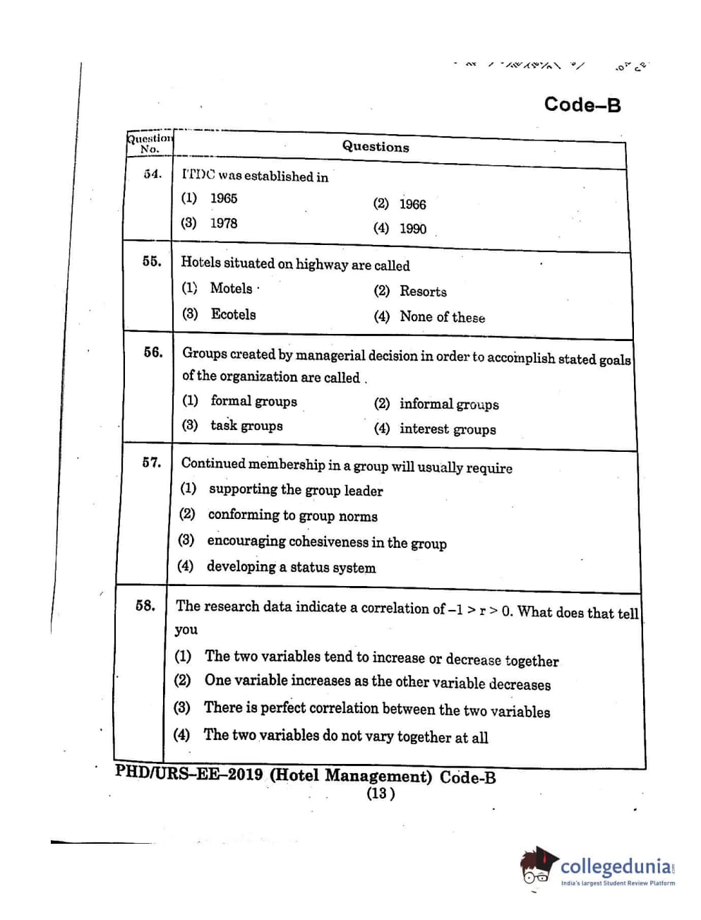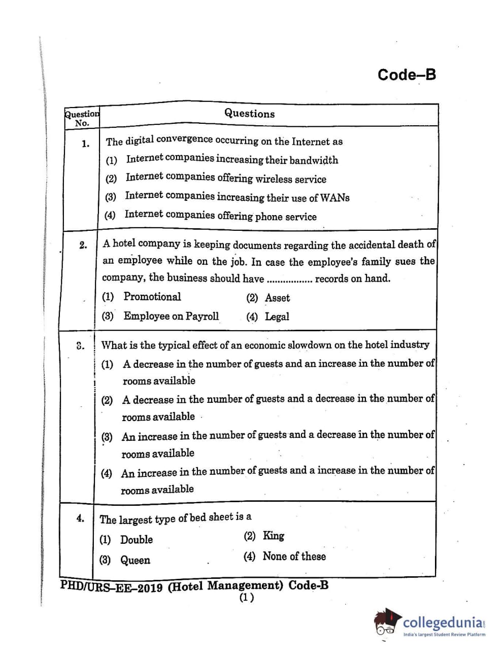MDUCEE 2019 Ph.D./M.Phil./URS Hotel Management Set B Question Paper with Answer Key PDFs