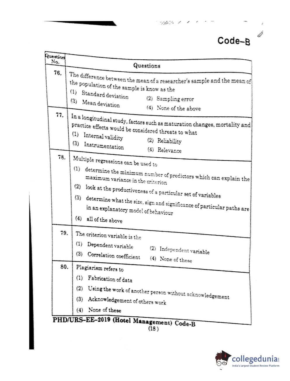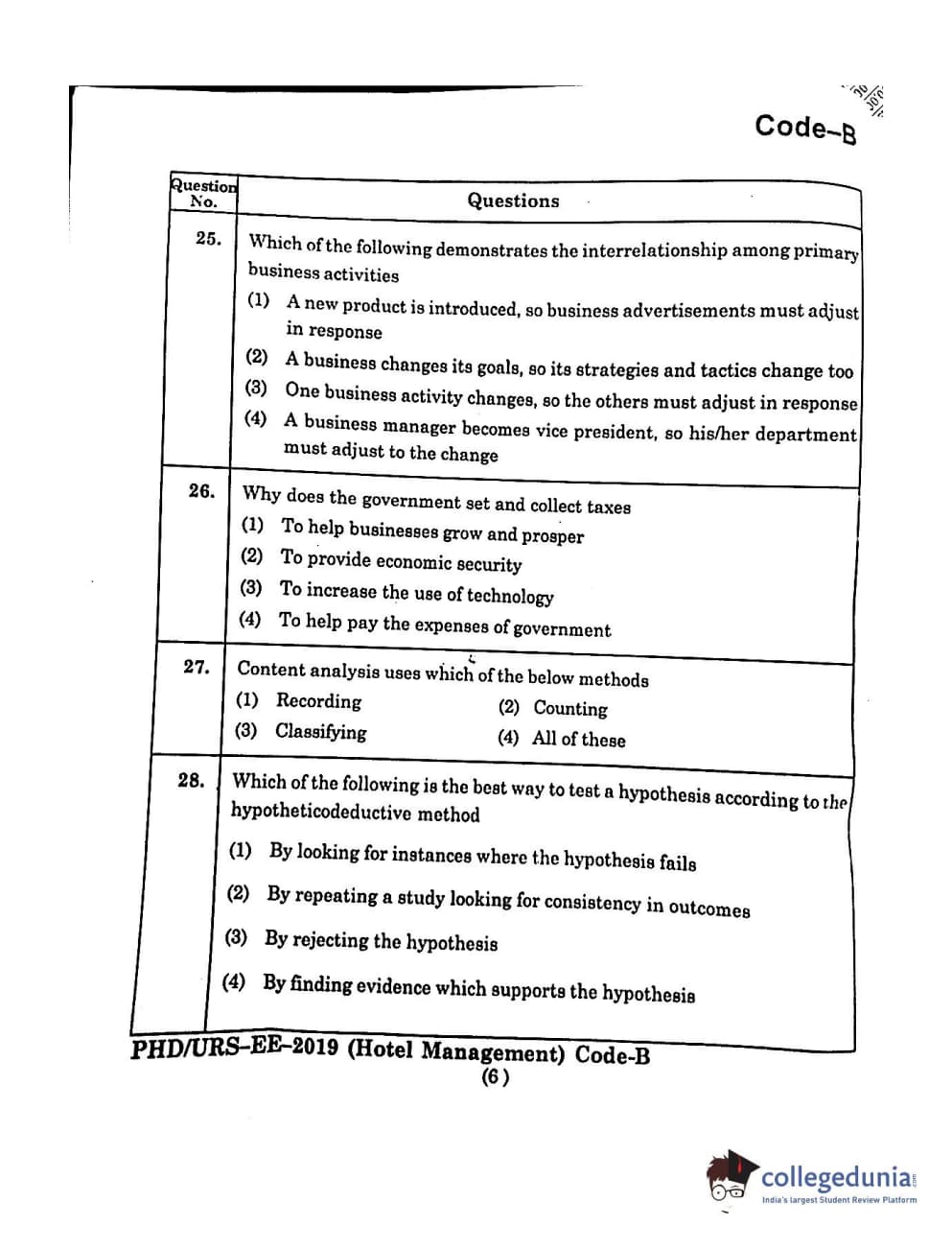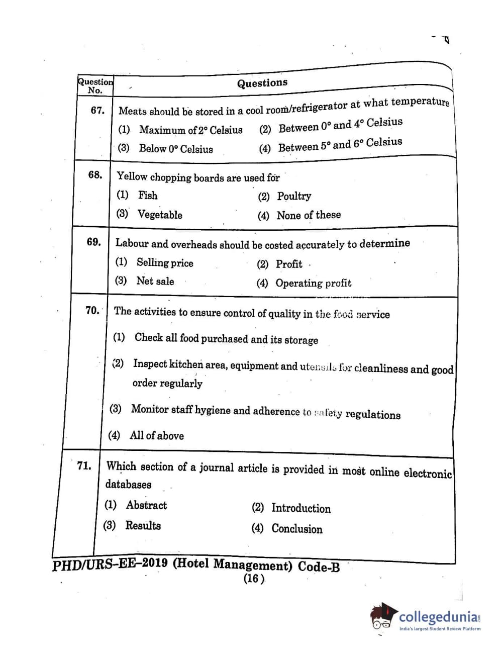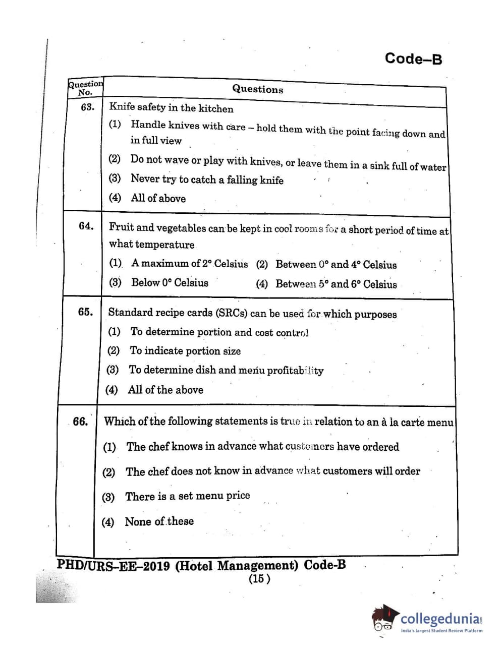 | MDUCEE 2019 Ph.D./M.Phil./URS Hotel Management Set B Question Paper PDF | MDUCEE 2019 Ph.D./M.Phil./URS Hotel Management Set B Answer Key PDF |