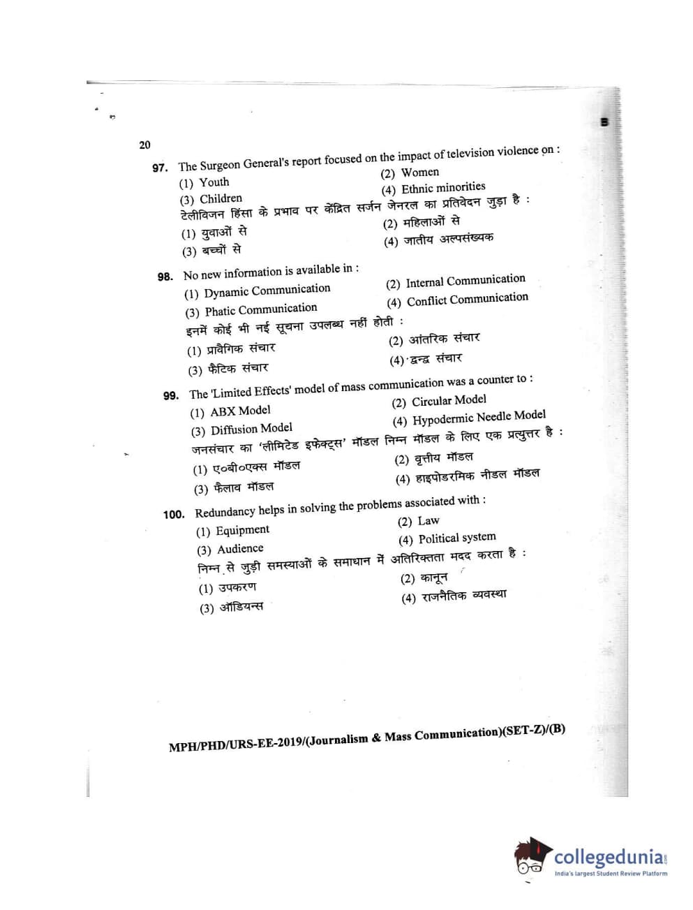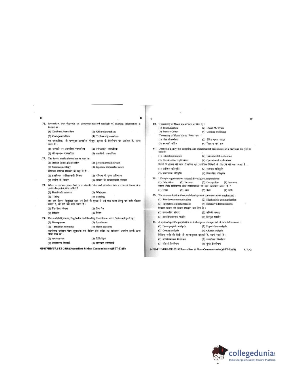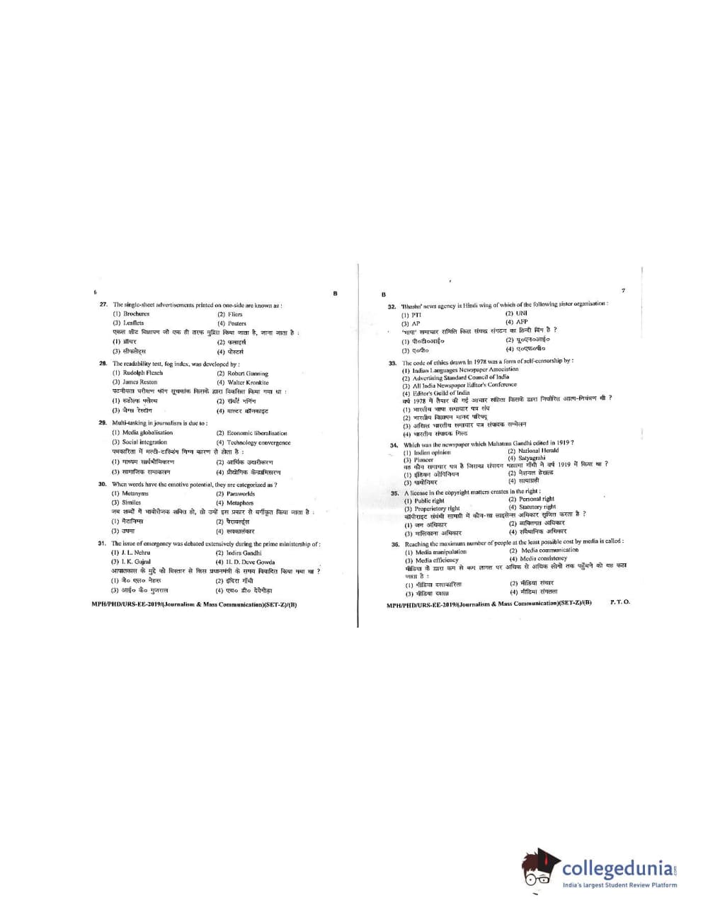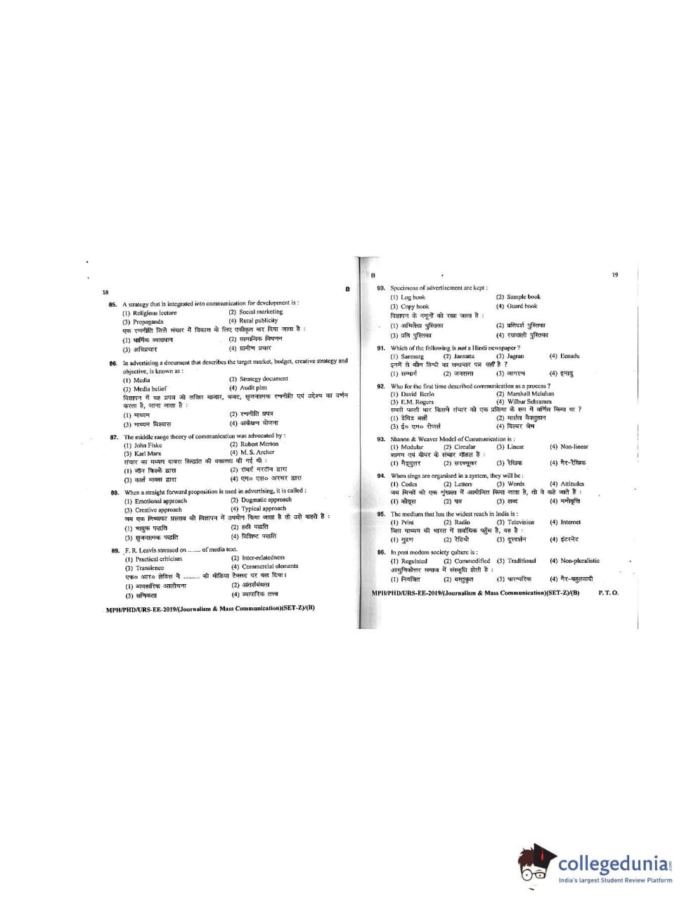 MDUCEE 2019 Ph.D./M.Phil./URS Journalism and Mass Communication Set B Question Paper with Answer Key PDFs