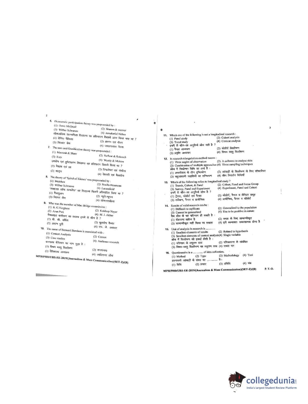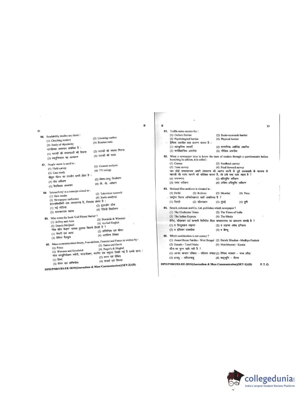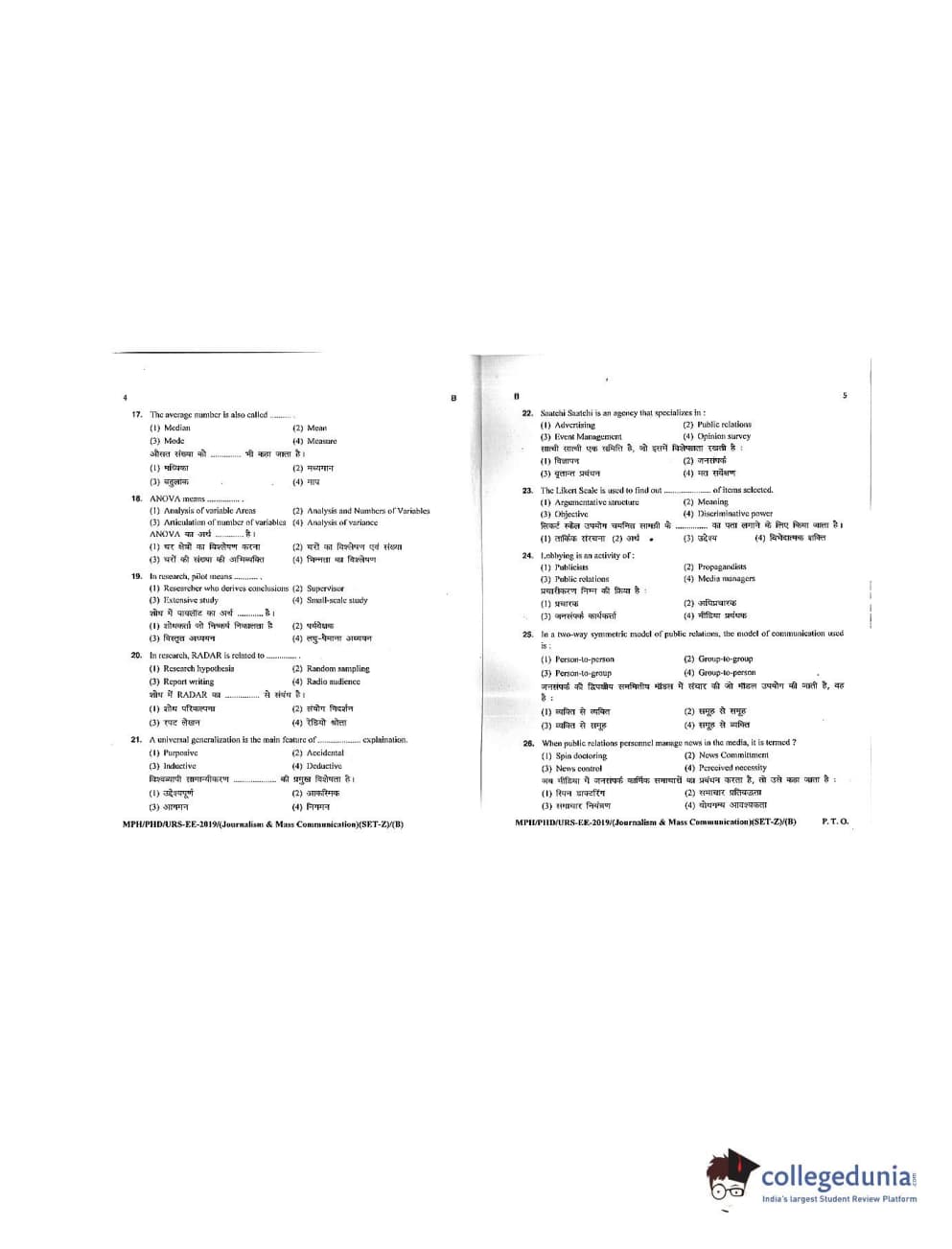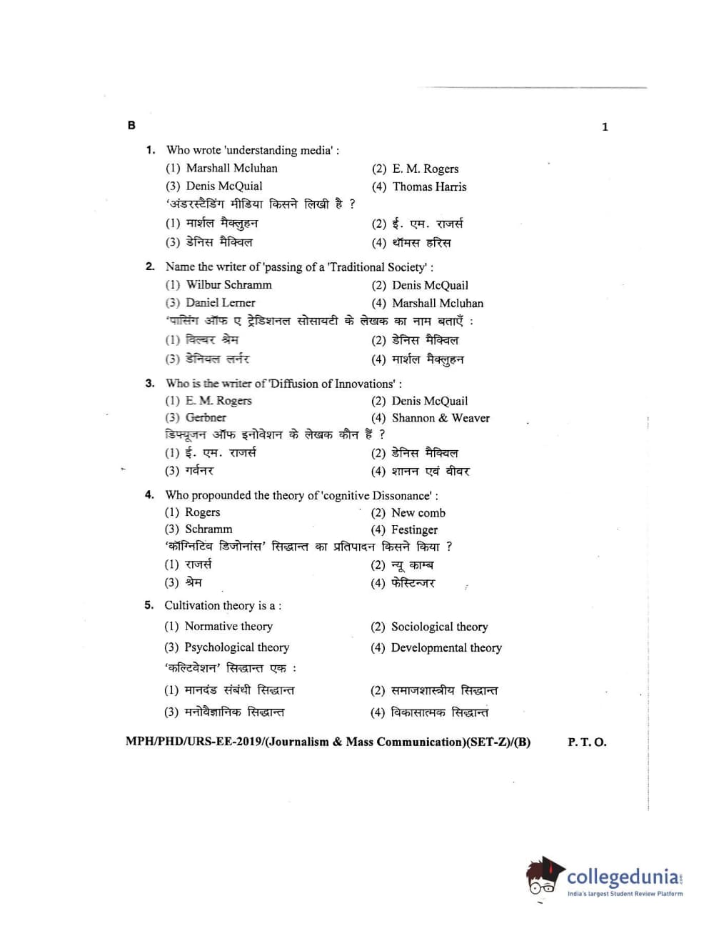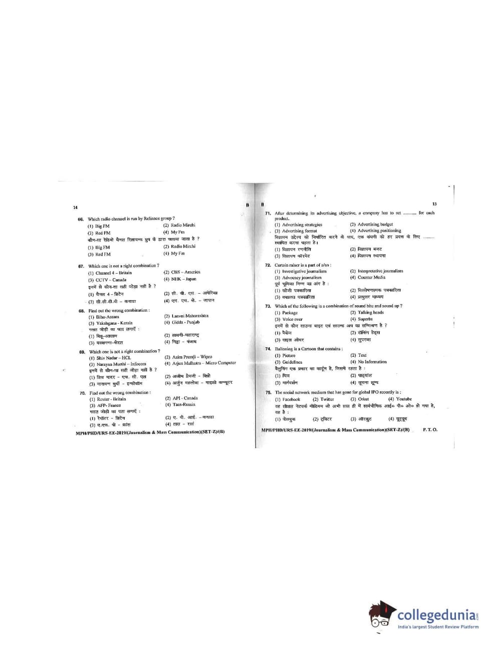 | MDUCEE 2019 Ph.D./M.Phil./URS Journalism and Mass Communication Set B Question Paper PDF | MDUCEE 2019 Ph.D./M.Phil./URS Journalism and Mass Communication Set B Answer Key PDF |