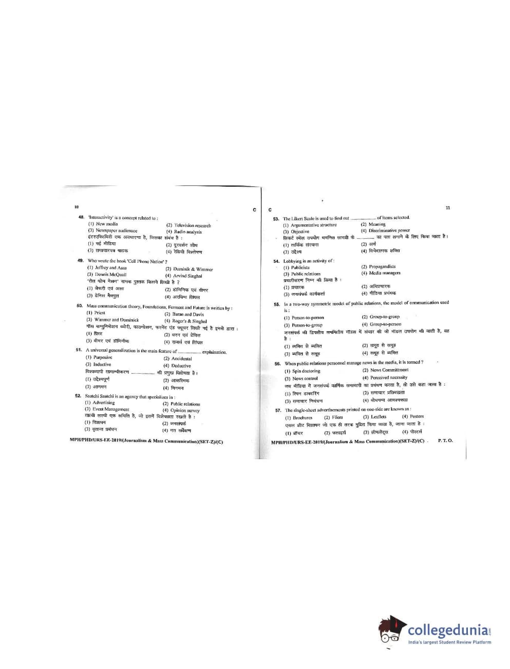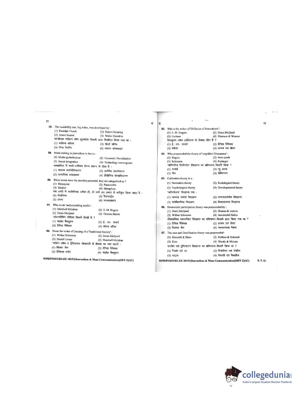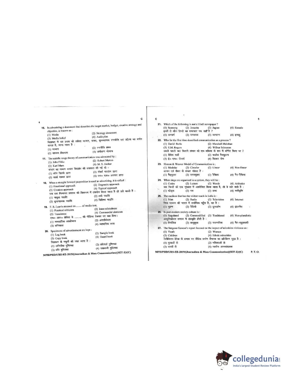 | MDUCEE 2019 Ph.D./M.Phil./URS Journalism and Mass Communication Set C Question Paper PDF | MDUCEE 2019 Ph.D./M.Phil./URS Journalism and Mass Communication Set C Answer Key PDF |