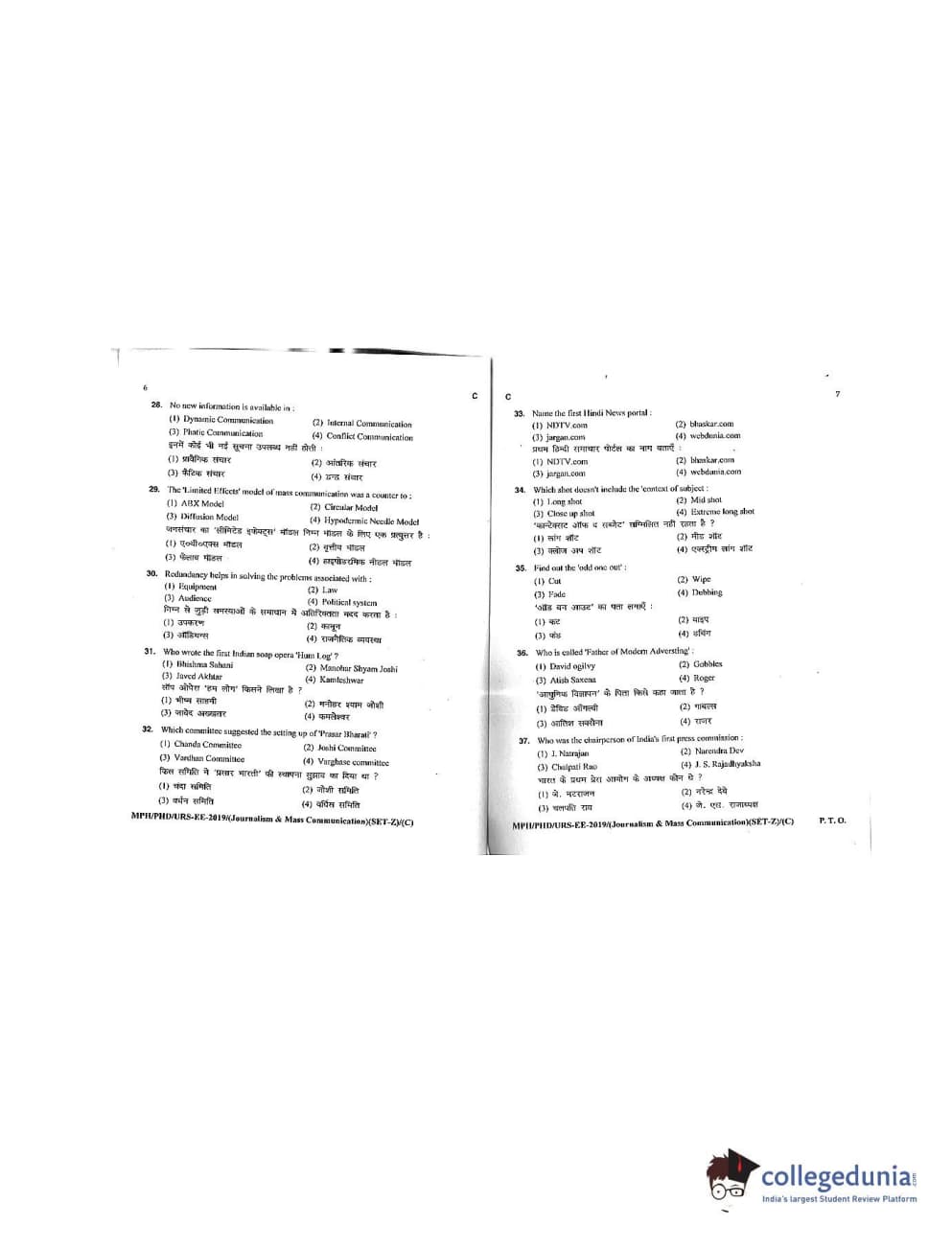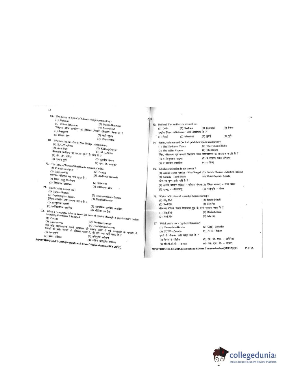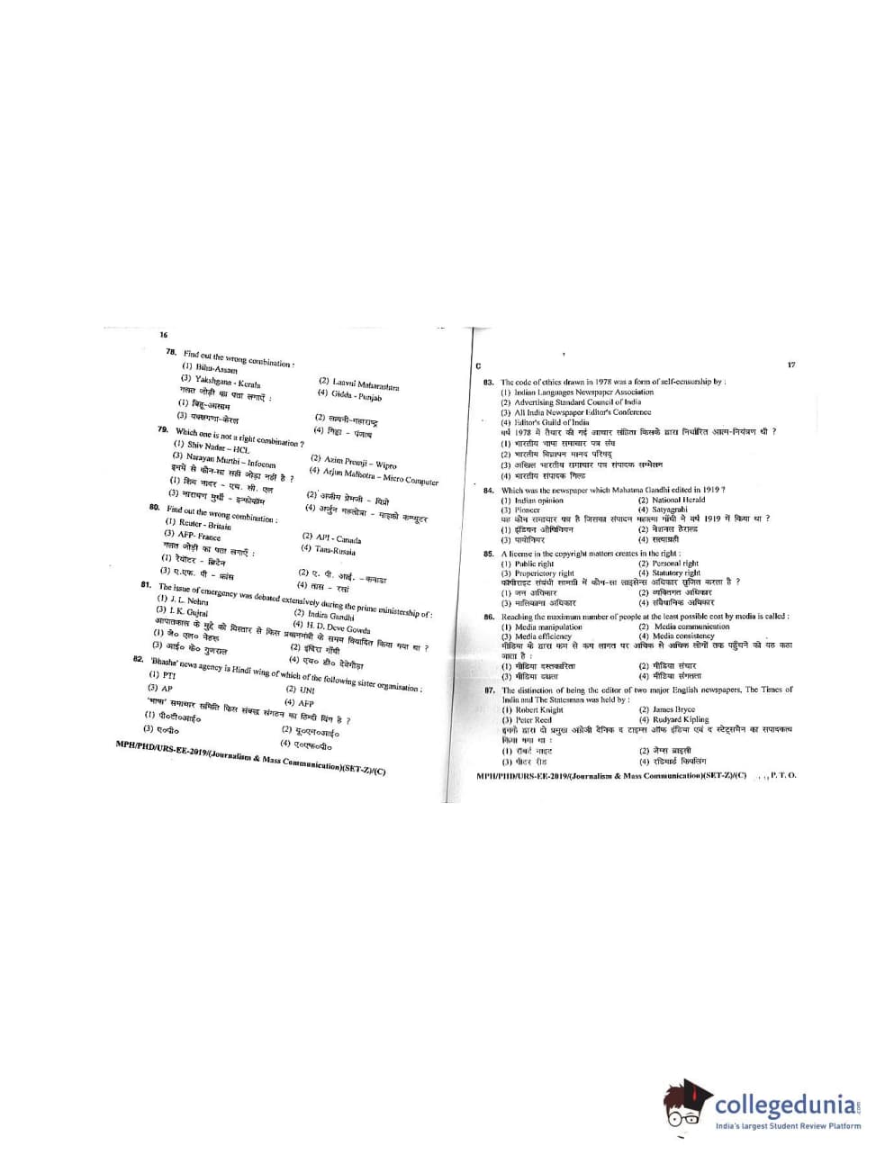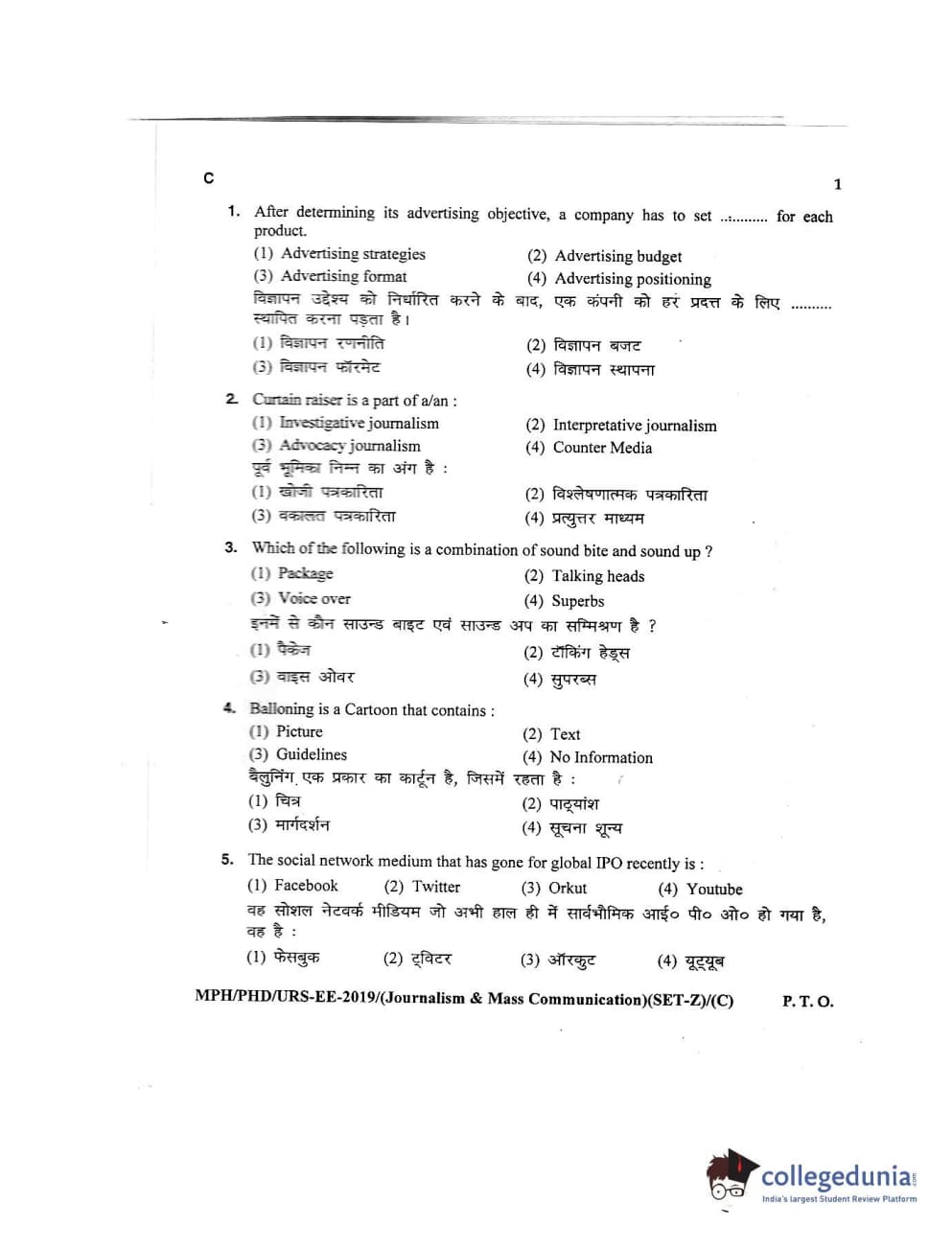 | MDUCEE 2019 Ph.D./M.Phil./URS Journalism and Mass Communication Set C Question Paper PDF | MDUCEE 2019 Ph.D./M.Phil./URS Journalism and Mass Communication Set C Answer Key PDF |