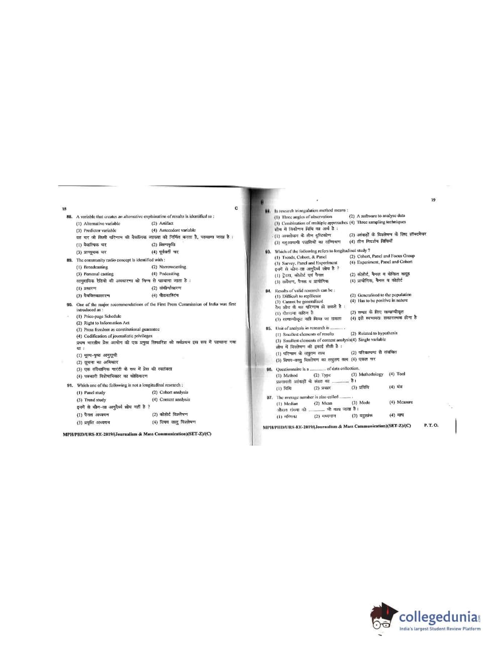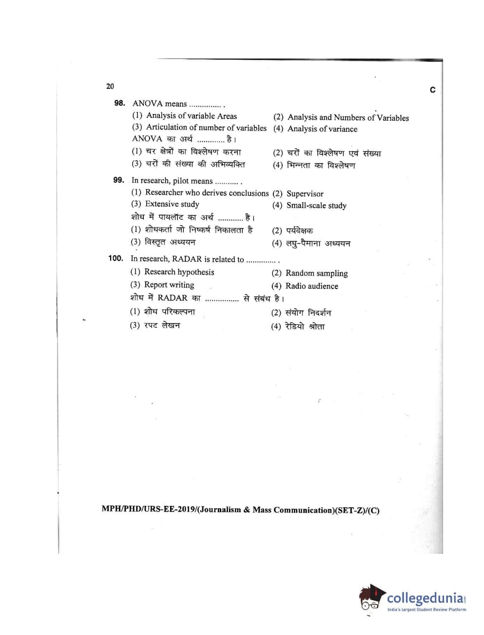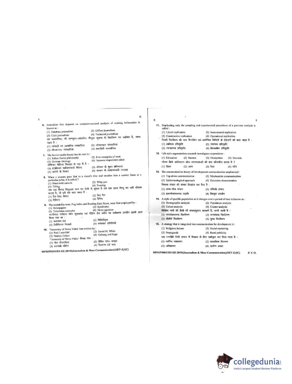 MDUCEE 2019 Ph.D./M.Phil./URS Journalism and Mass Communication Set C Question Paper with Answer Key PDFs