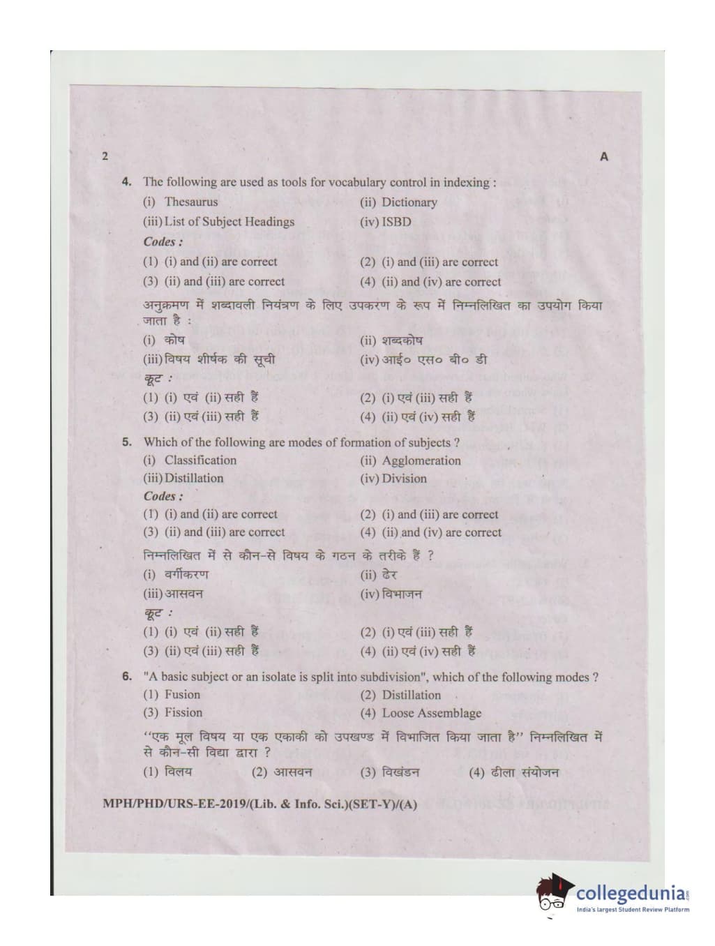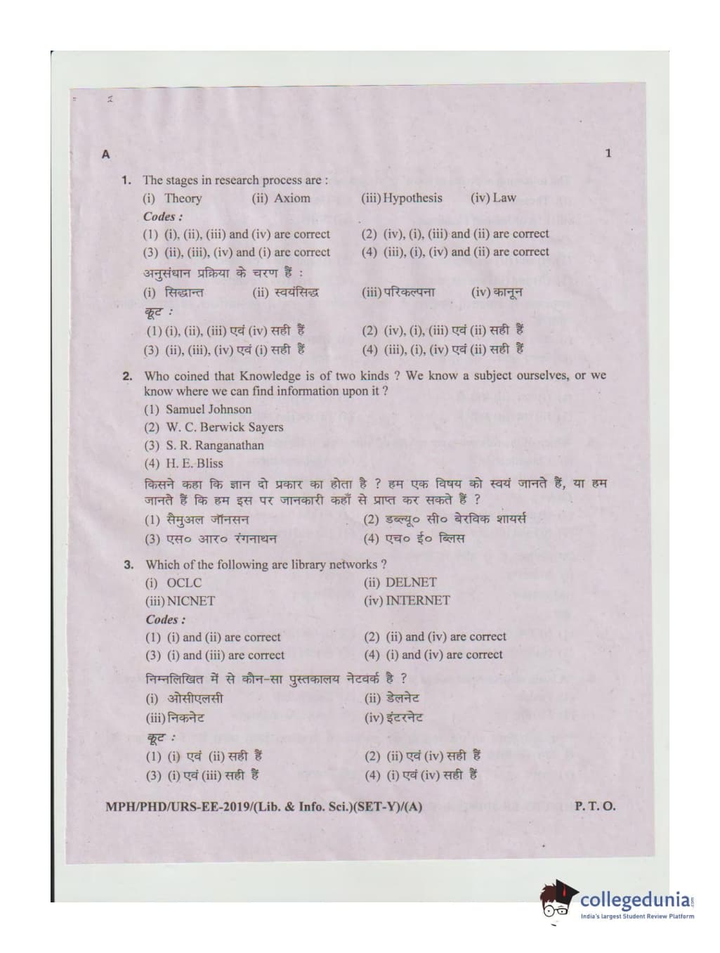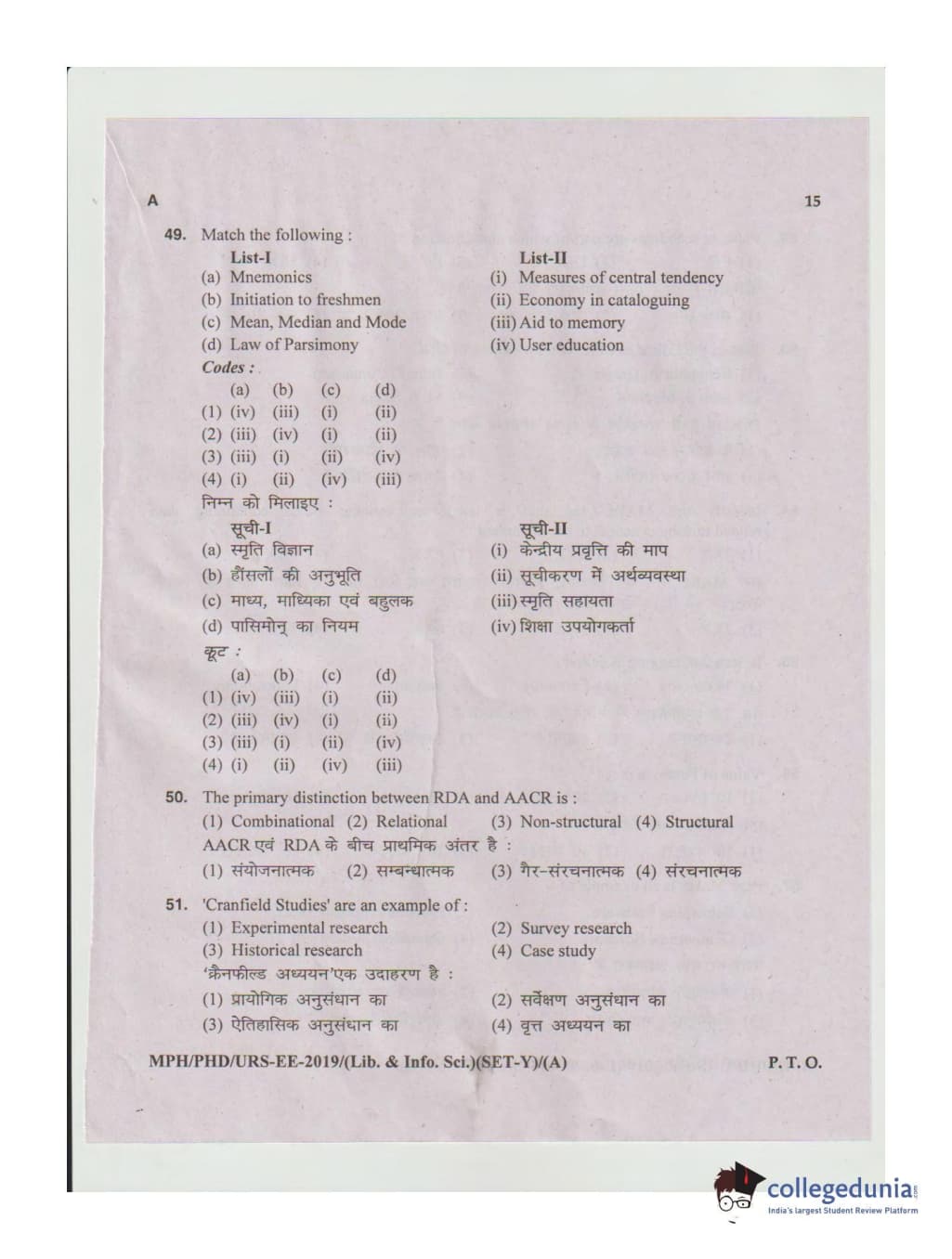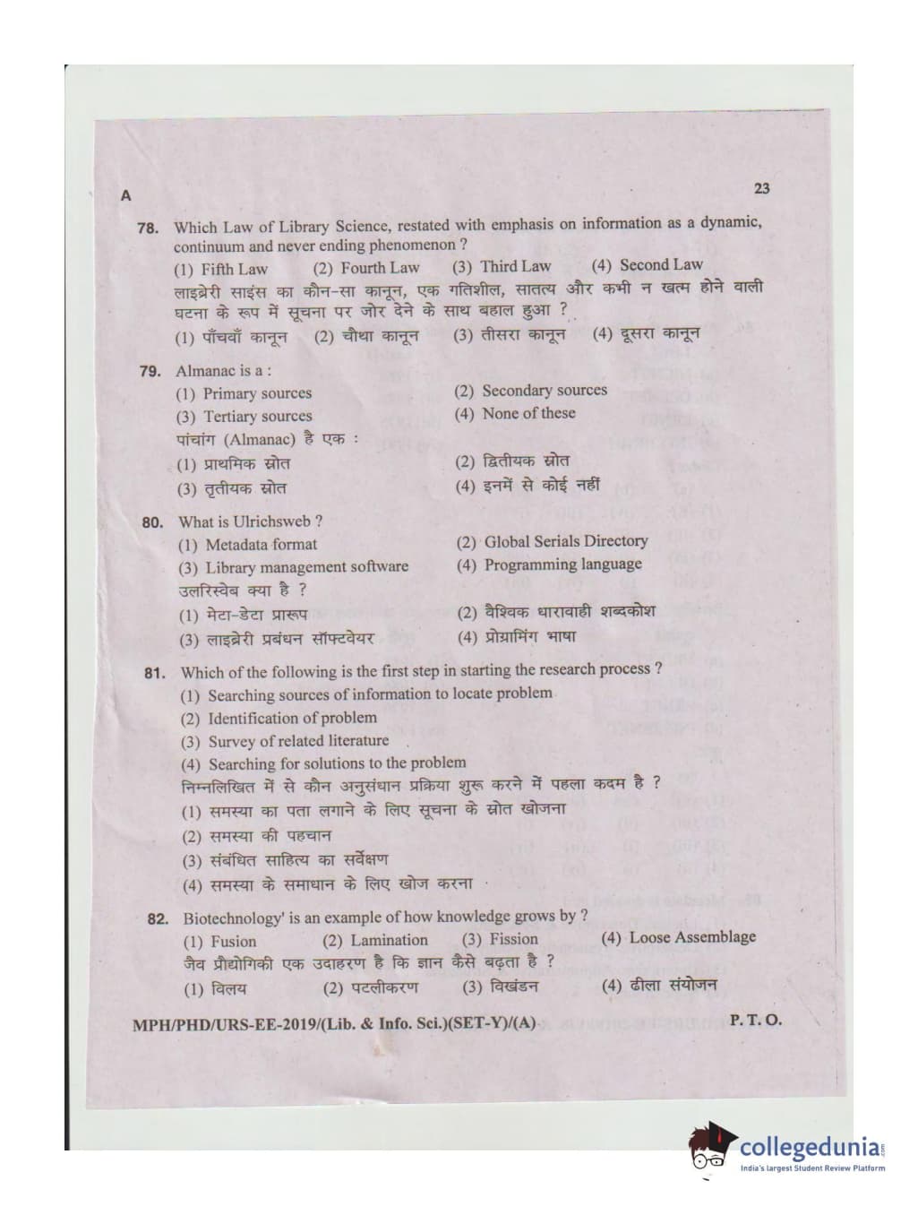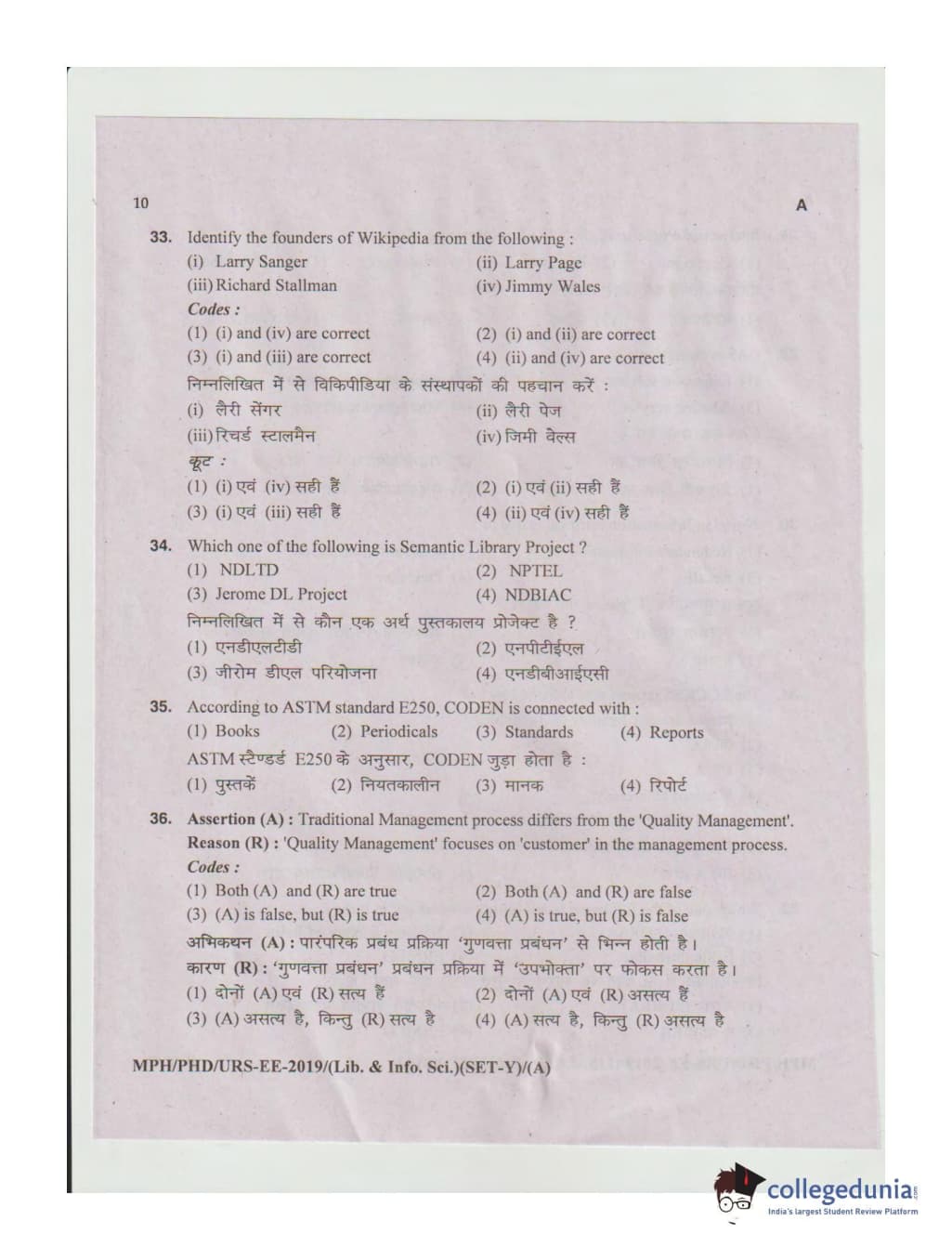 MDUCEE 2019 Ph.D./M.Phil./URS Library and Information Sciences Set A Question Paper with Answer Key PDFs