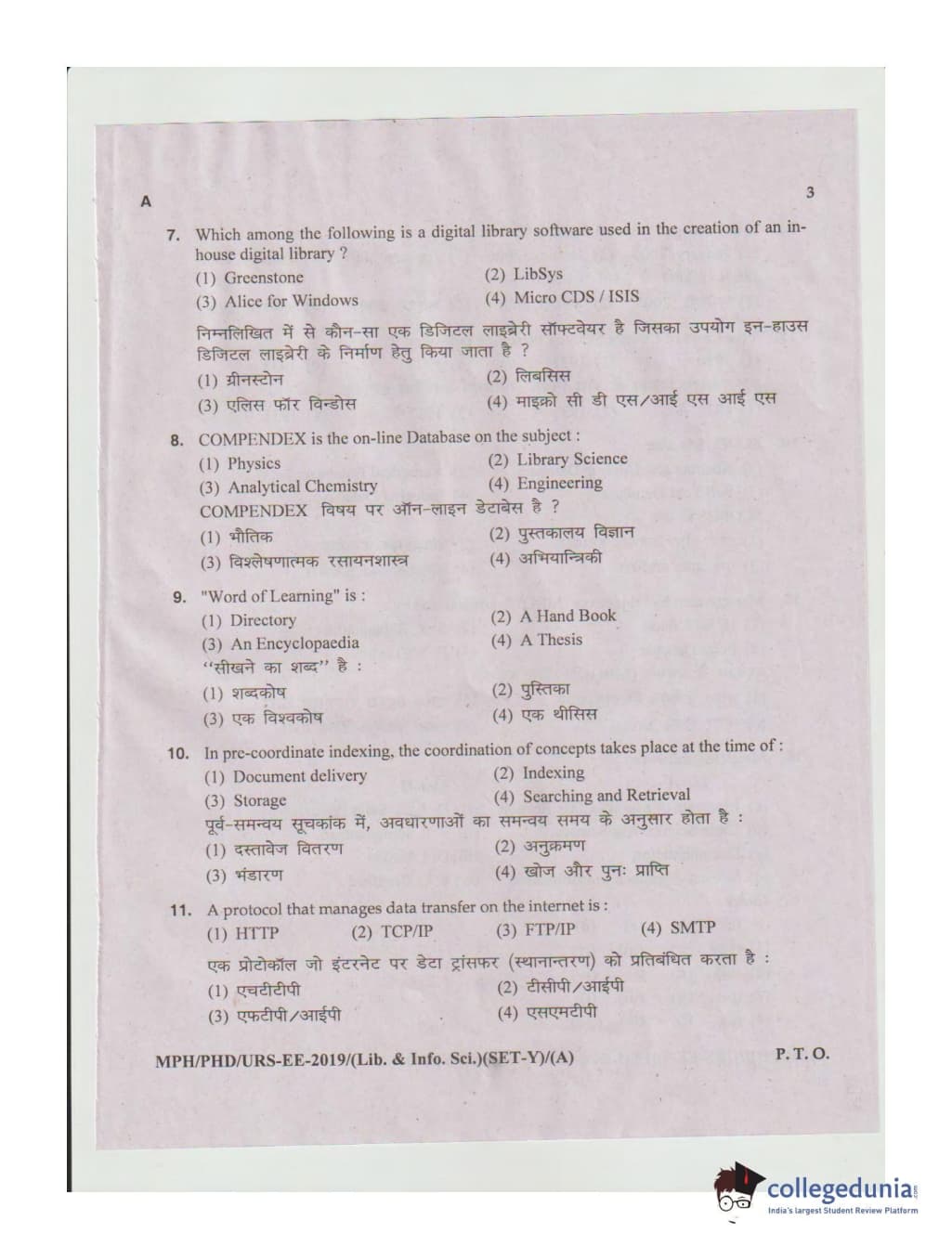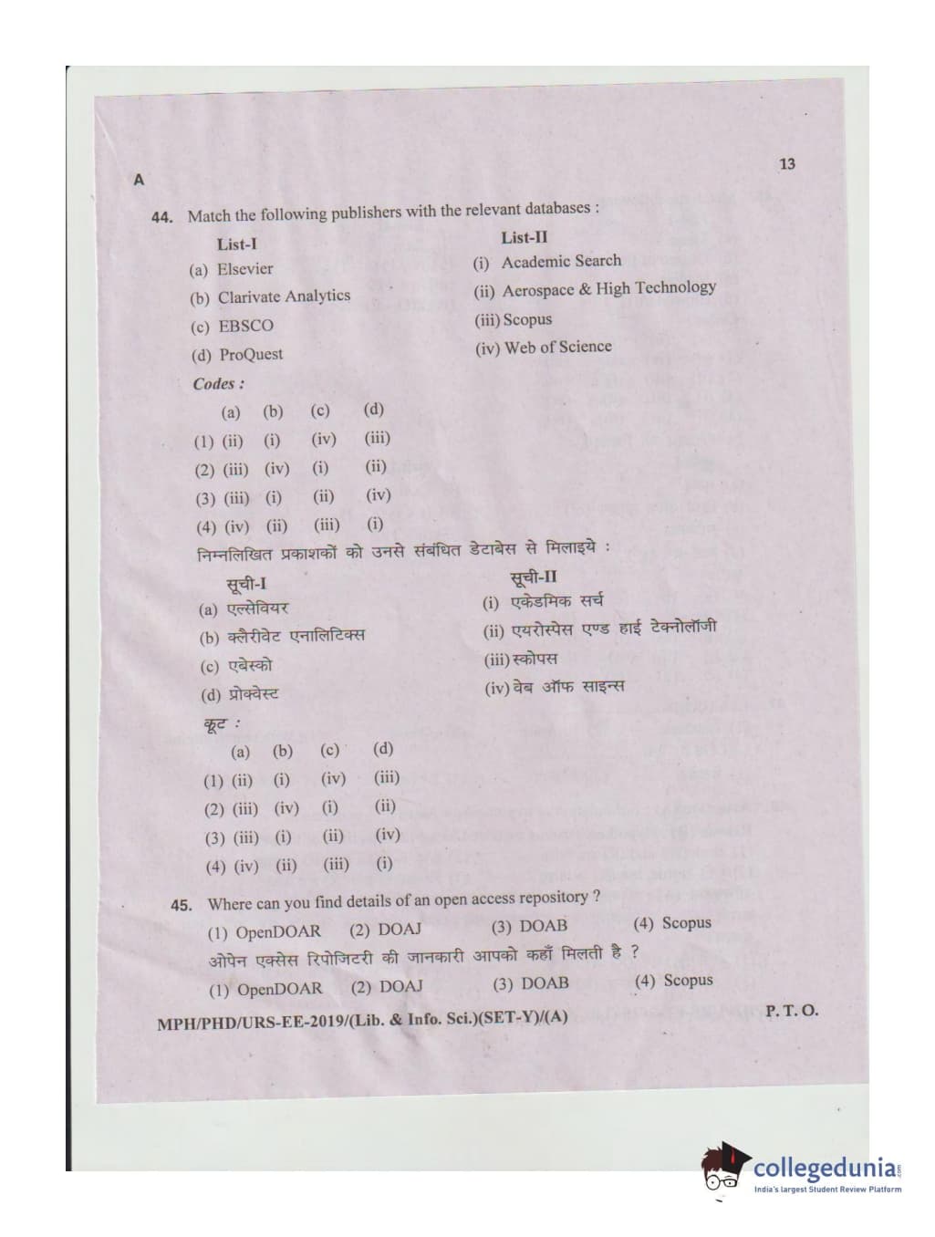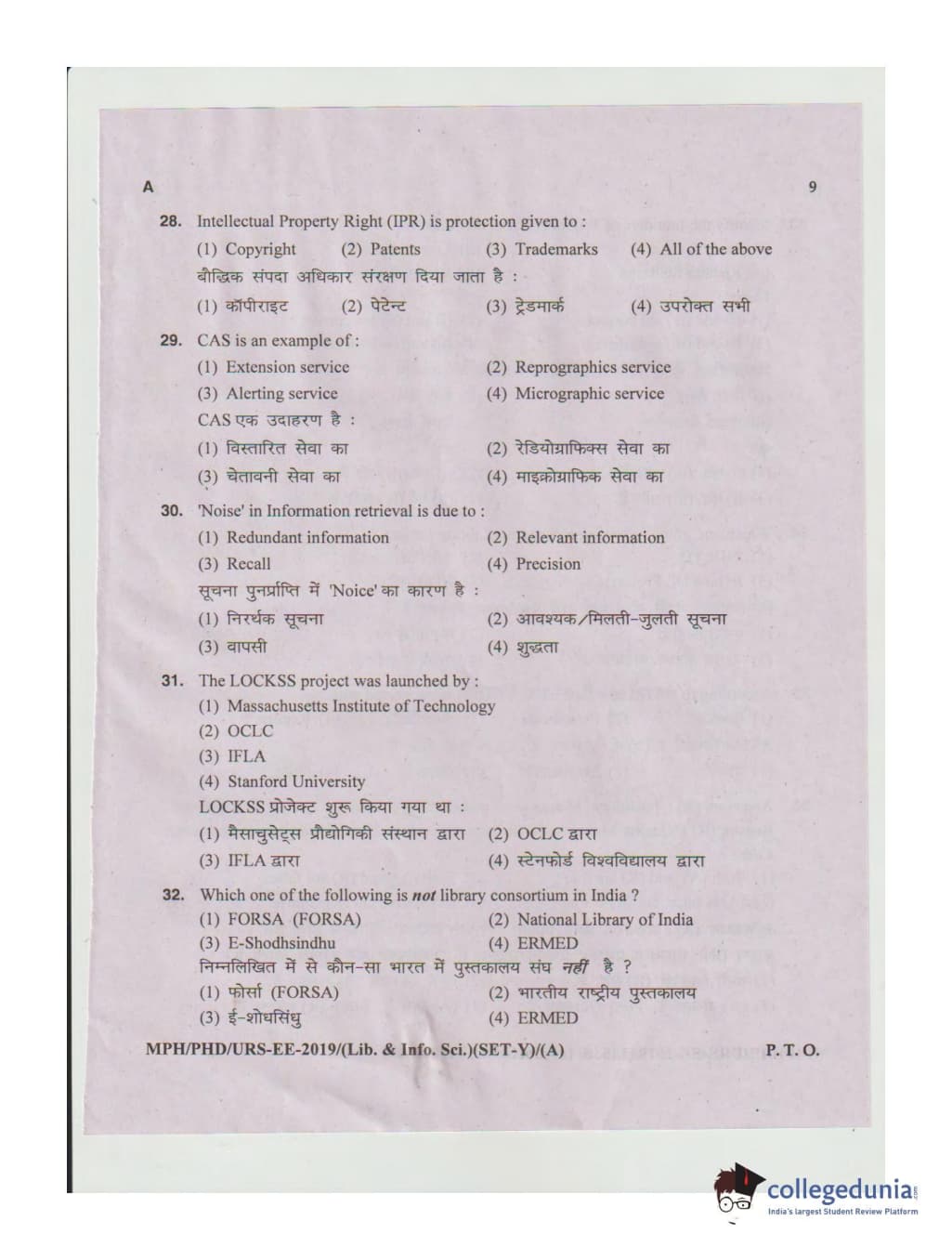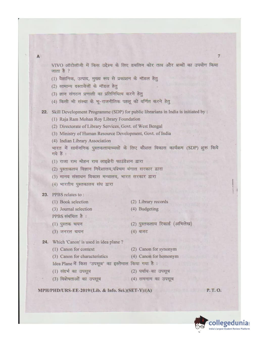 MDUCEE 2019 Ph.D./M.Phil./URS Library and Information Sciences Set A Question Paper with Answer Key PDFs