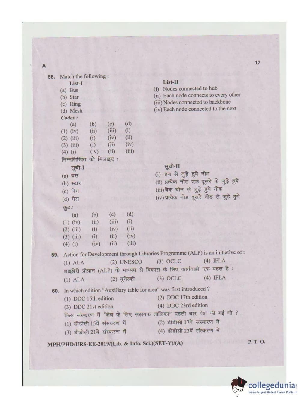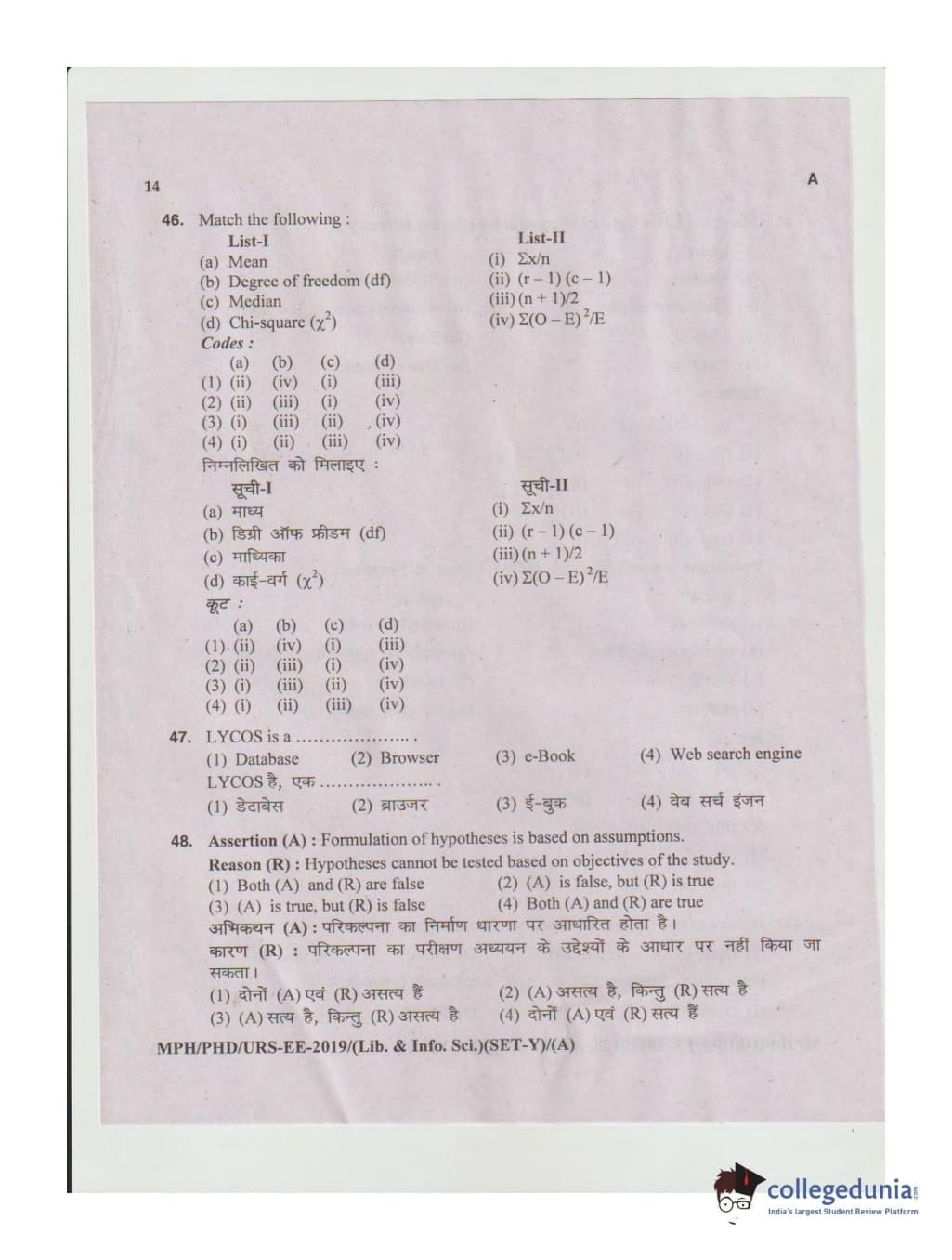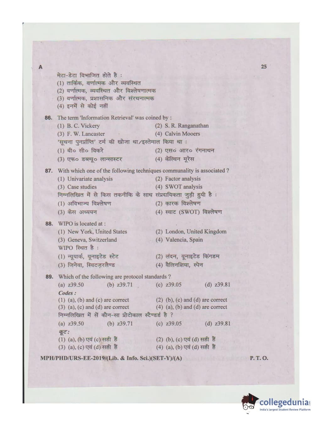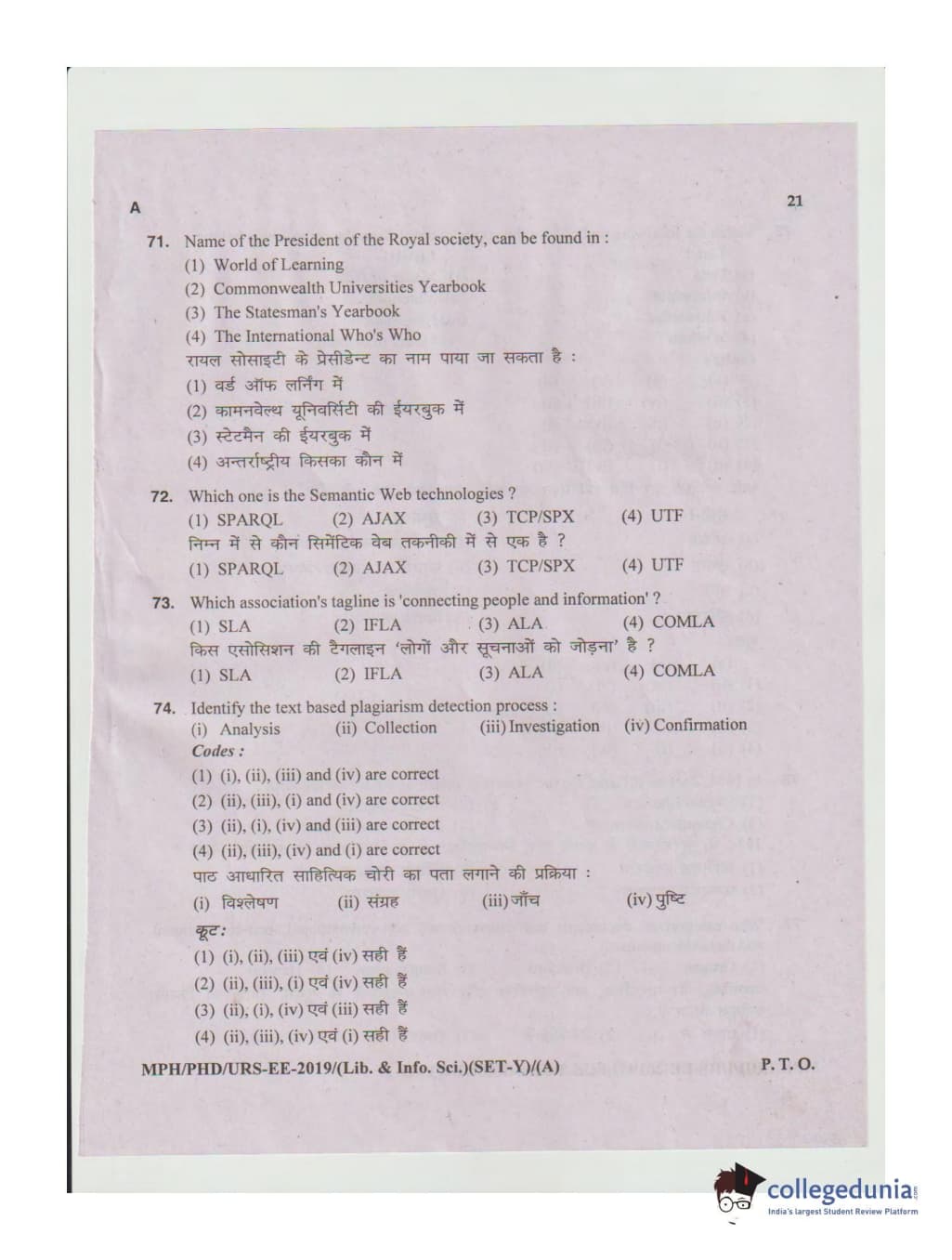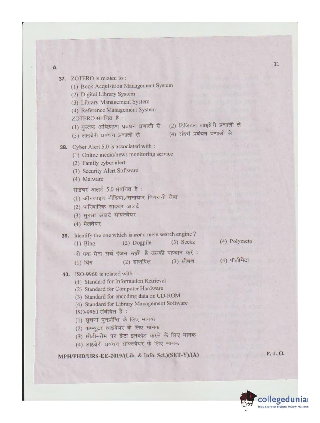 MDUCEE 2019 Ph.D./M.Phil./URS Library and Information Sciences Set A Question Paper with Answer Key PDFs