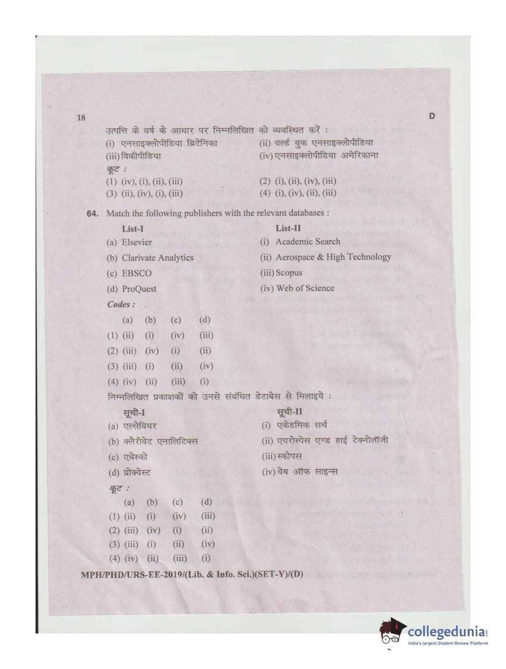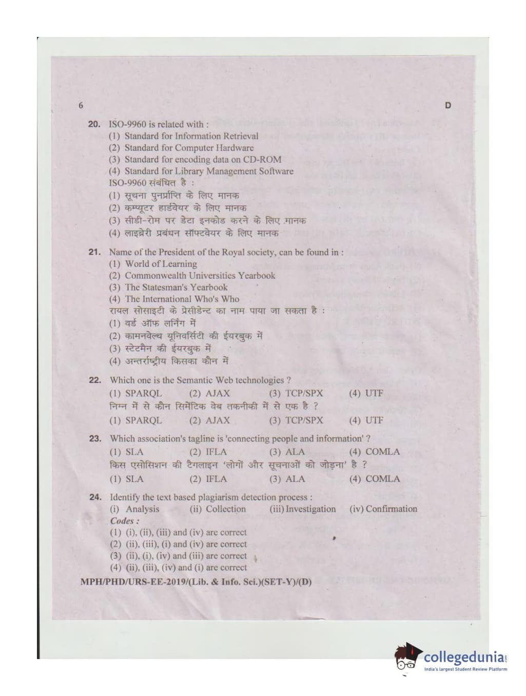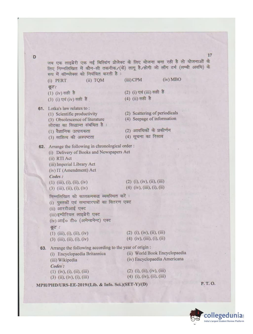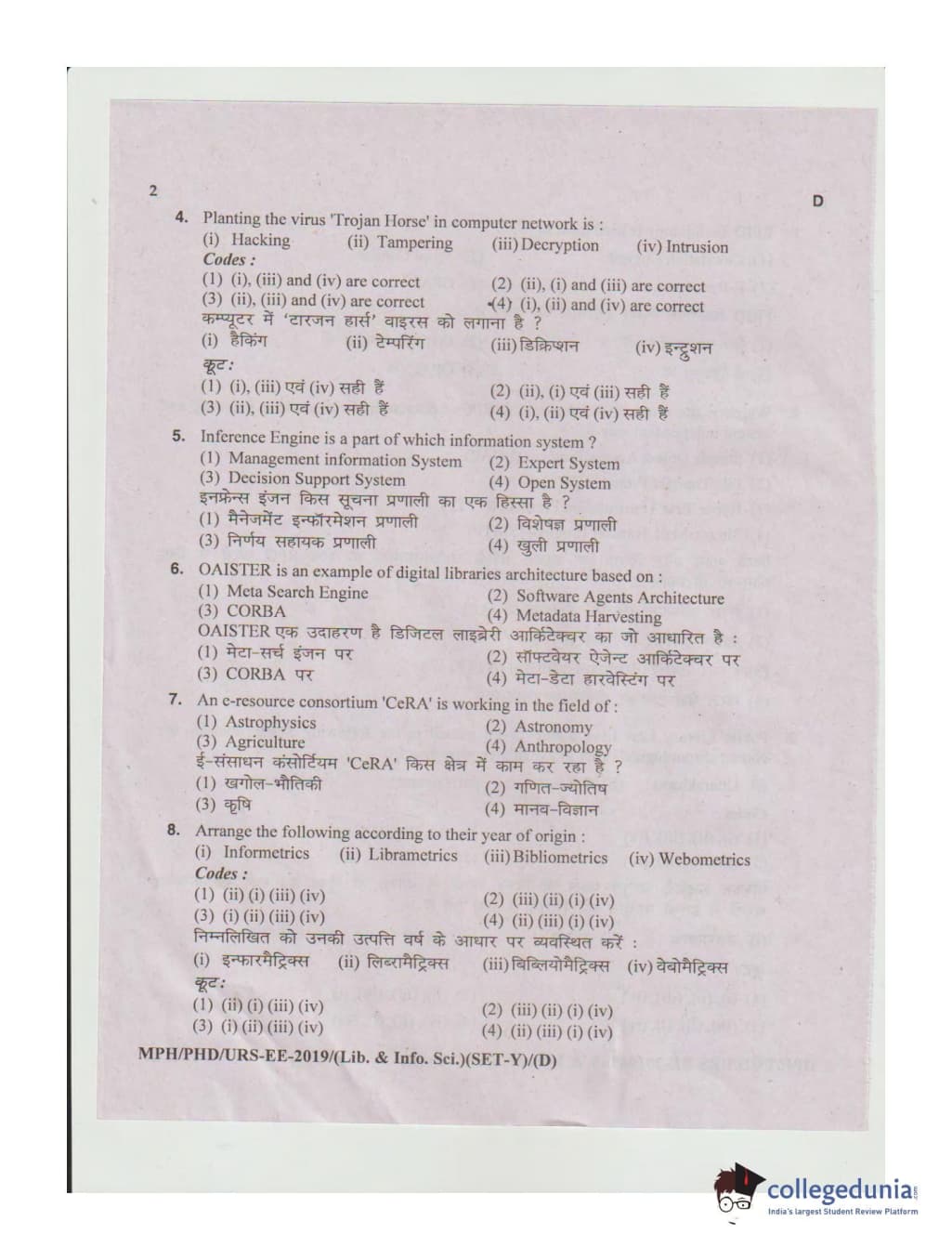 MDUCEE 2019 Ph.D./M.Phil./URS Library and Information Sciences Set D Question Paper with Answer Key PDFs