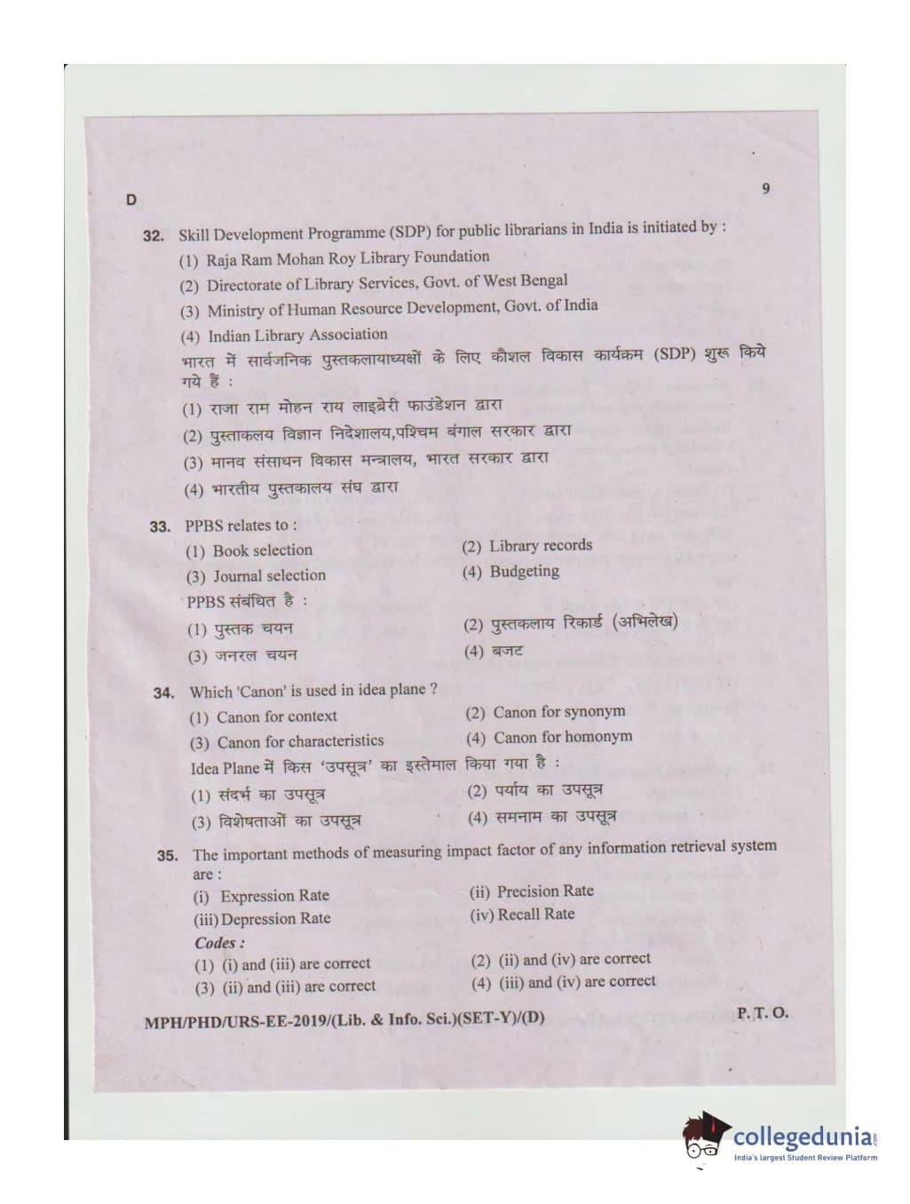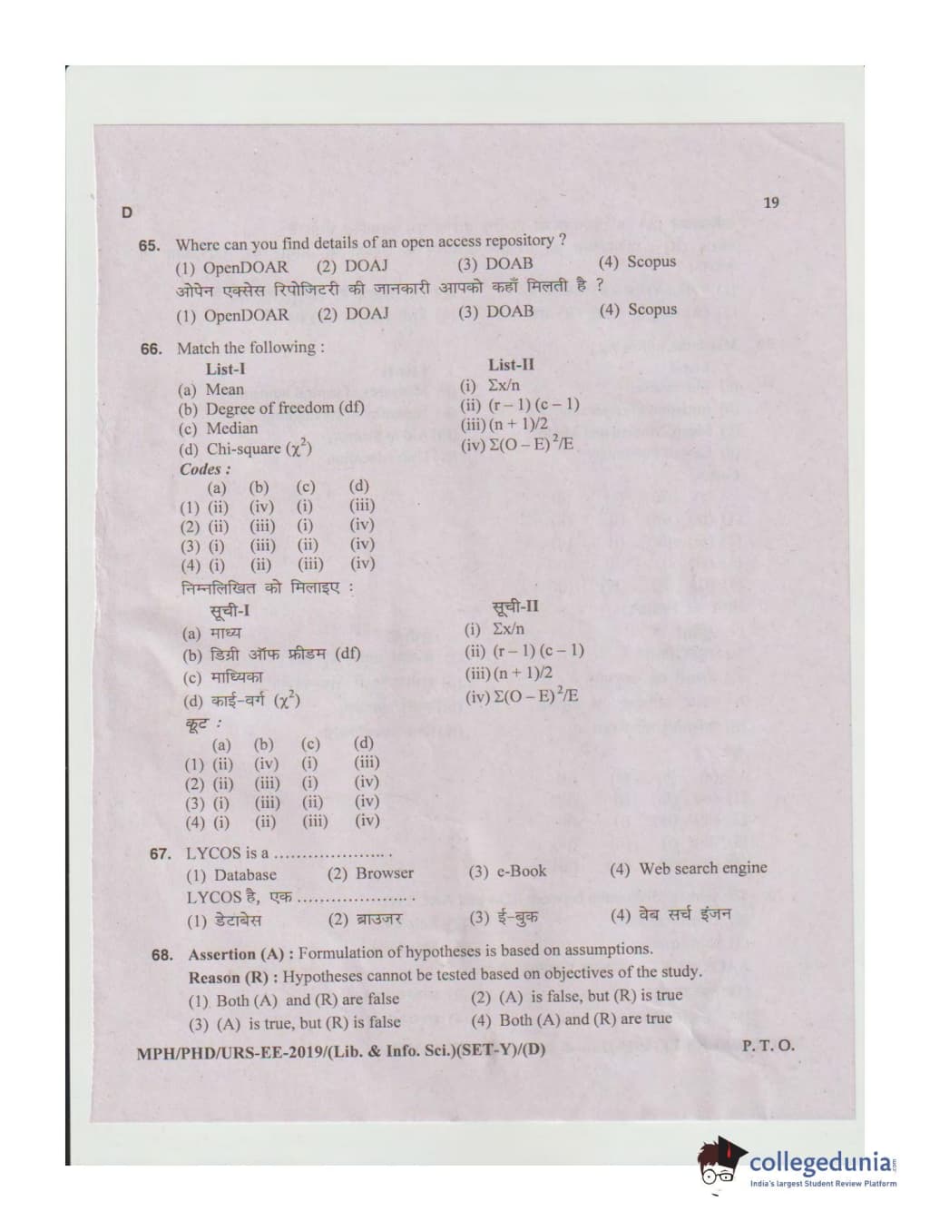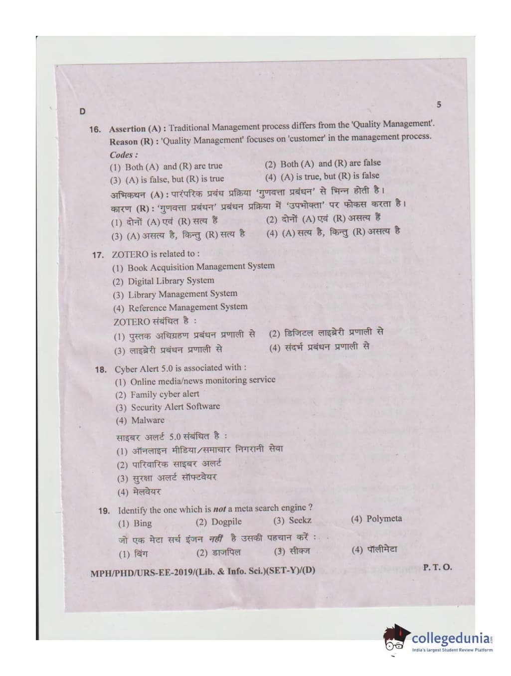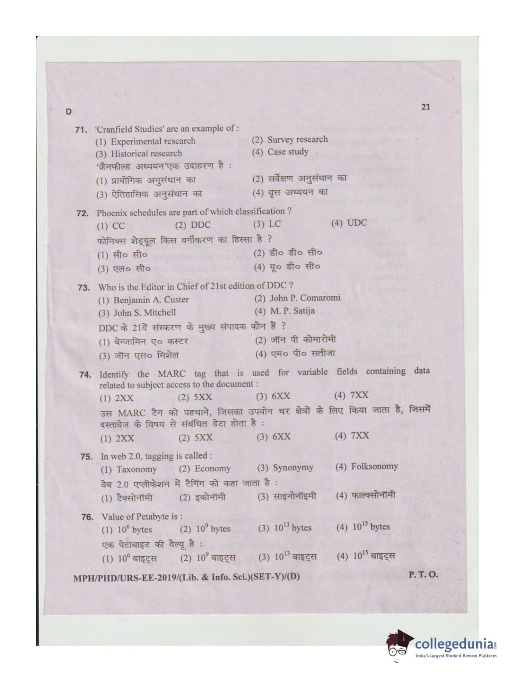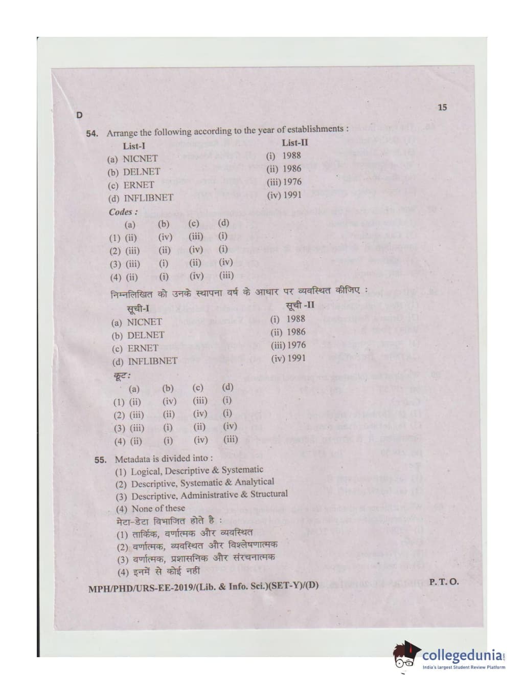 MDUCEE 2019 Ph.D./M.Phil./URS Library and Information Sciences Set D Question Paper with Answer Key PDFs