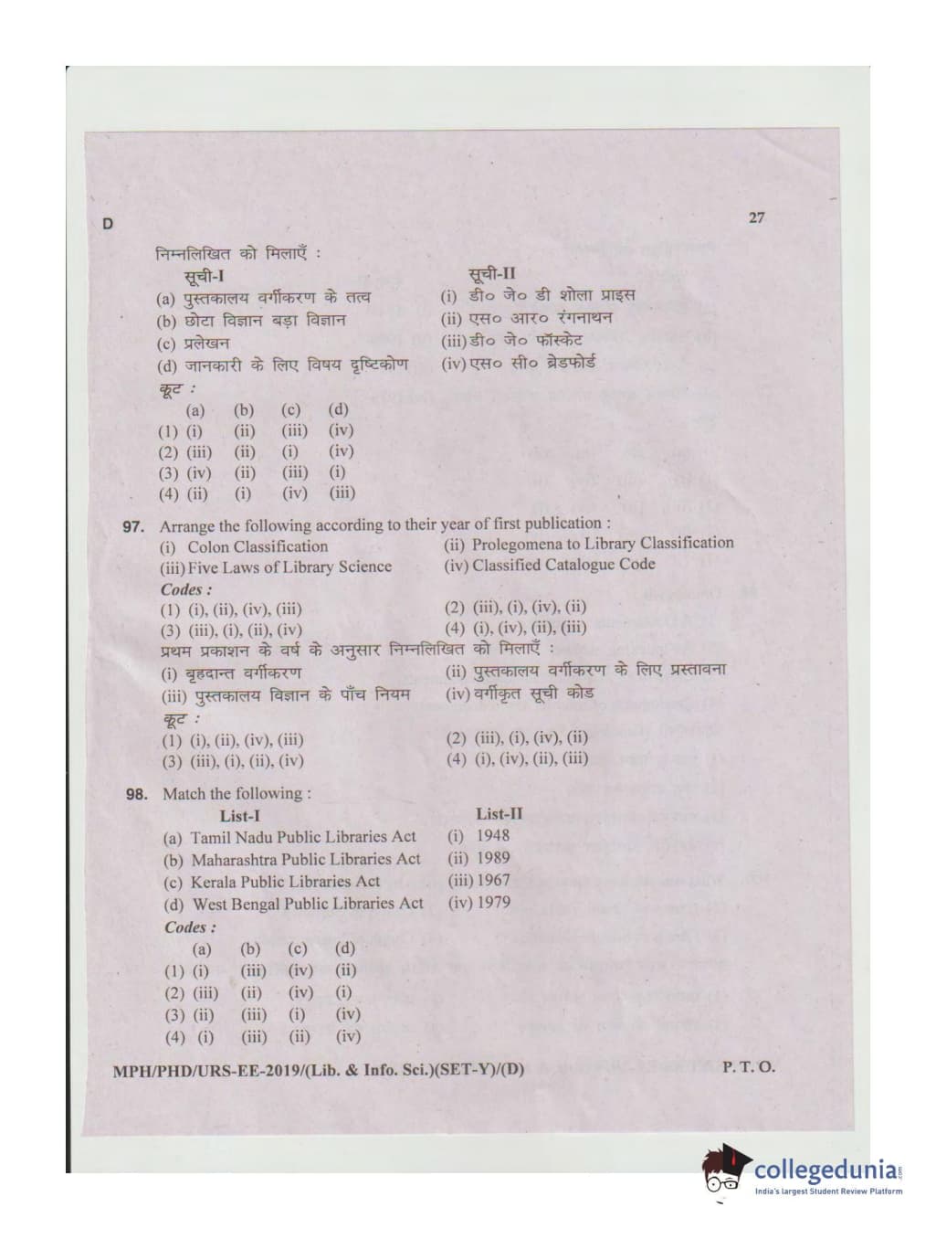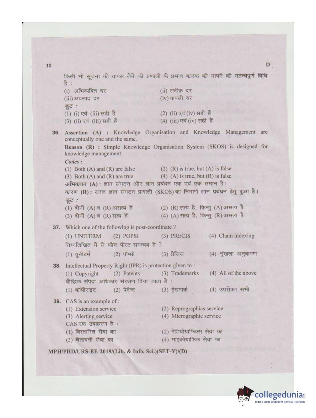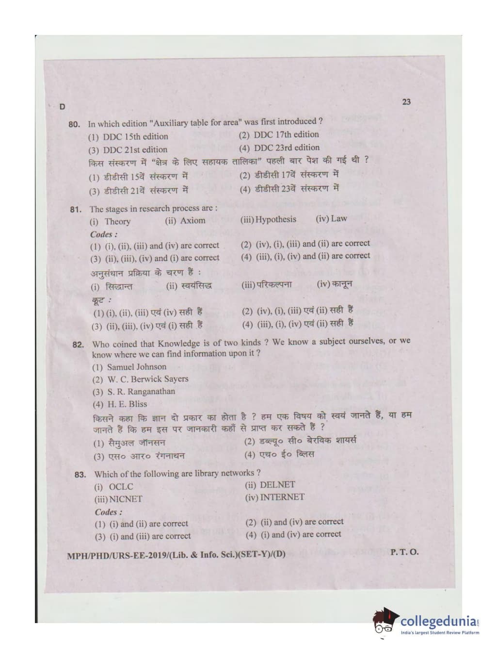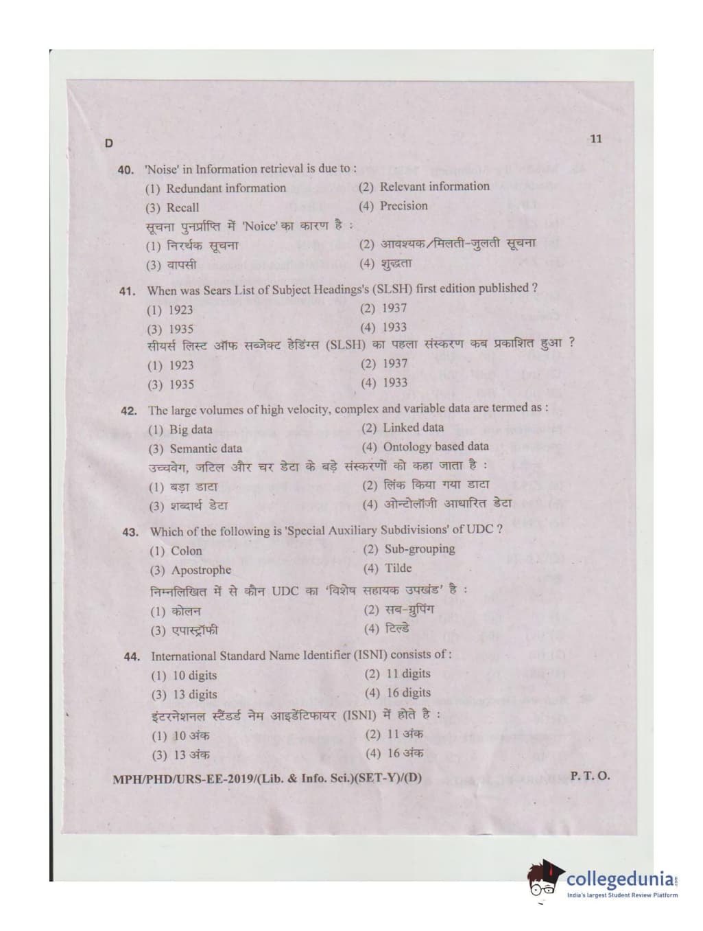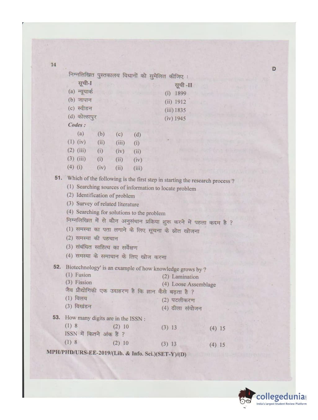 MDUCEE 2019 Ph.D./M.Phil./URS Library and Information Sciences Set D Question Paper with Answer Key PDFs