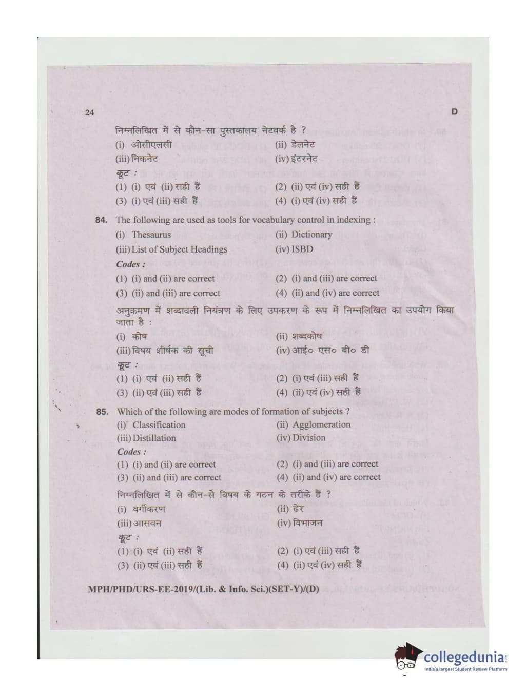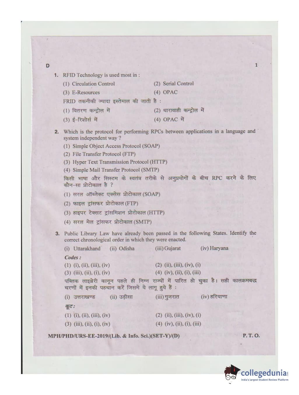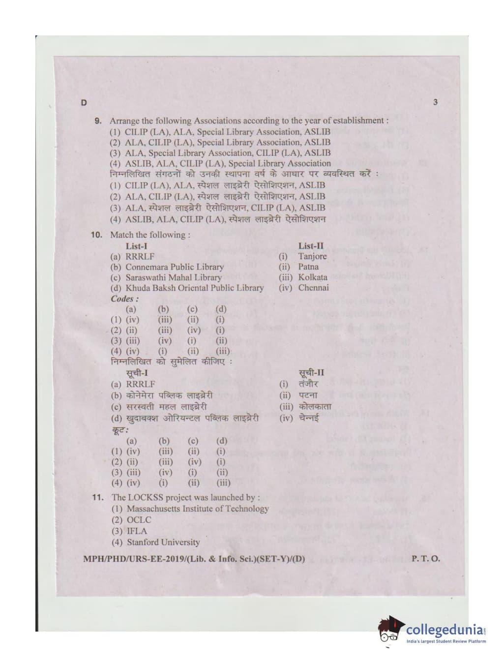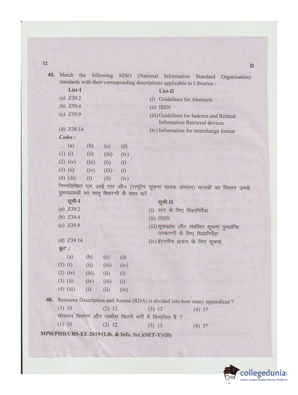 MDUCEE 2019 Ph.D./M.Phil./URS Library and Information Sciences Set D Question Paper with Answer Key PDFs
