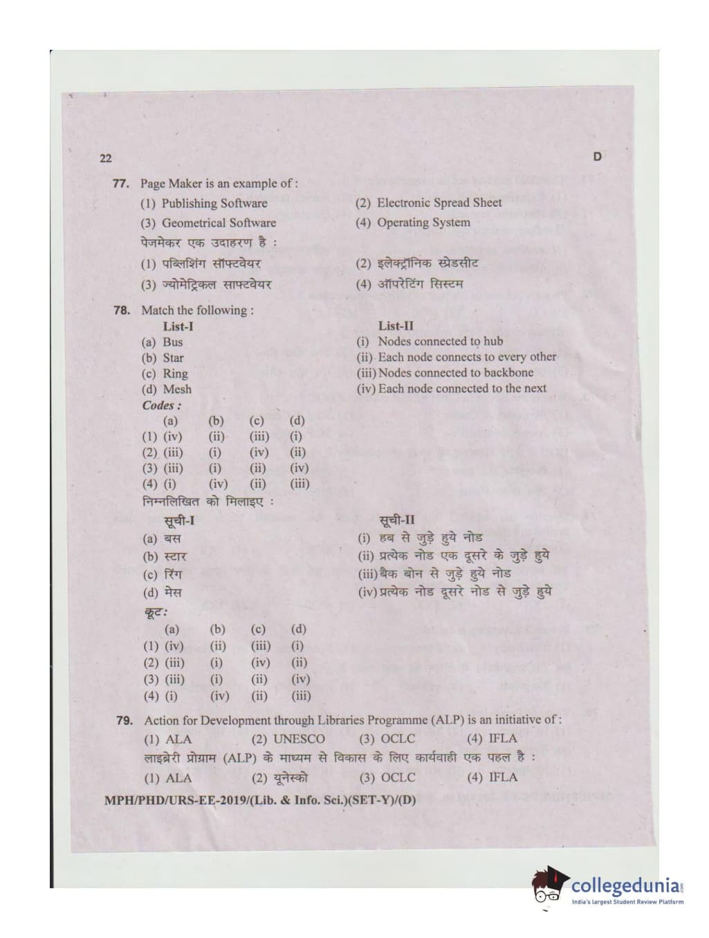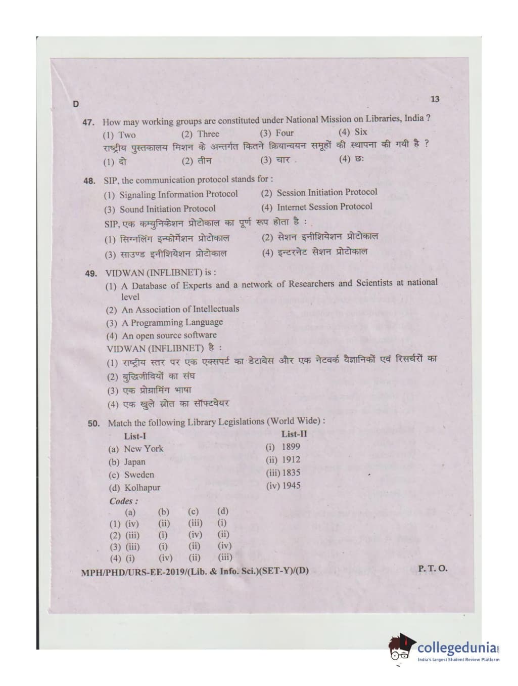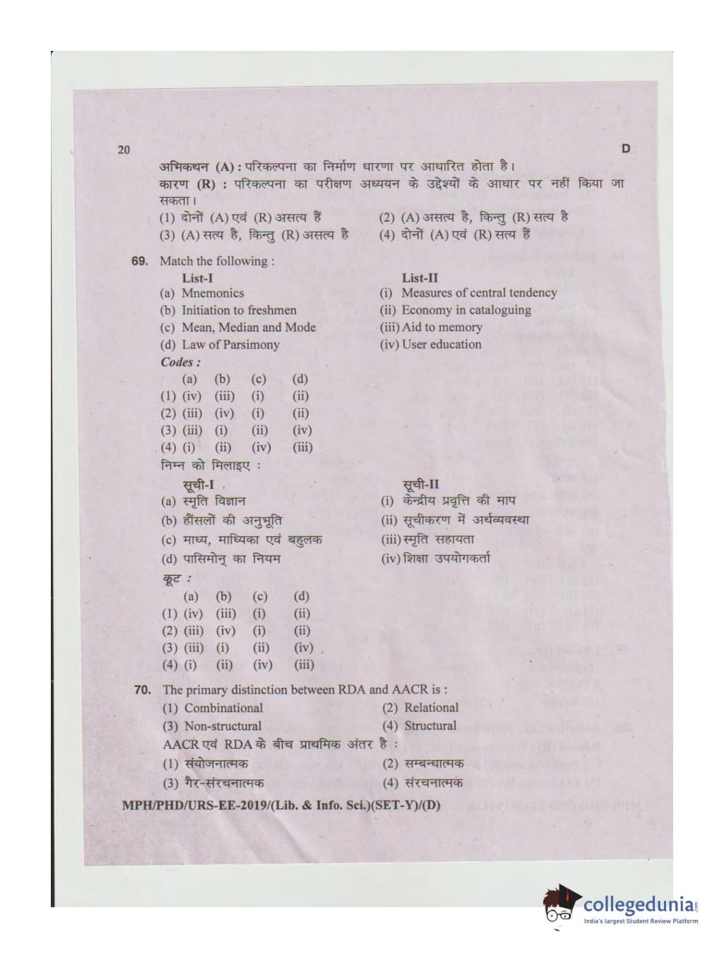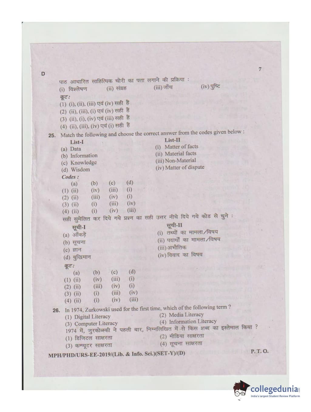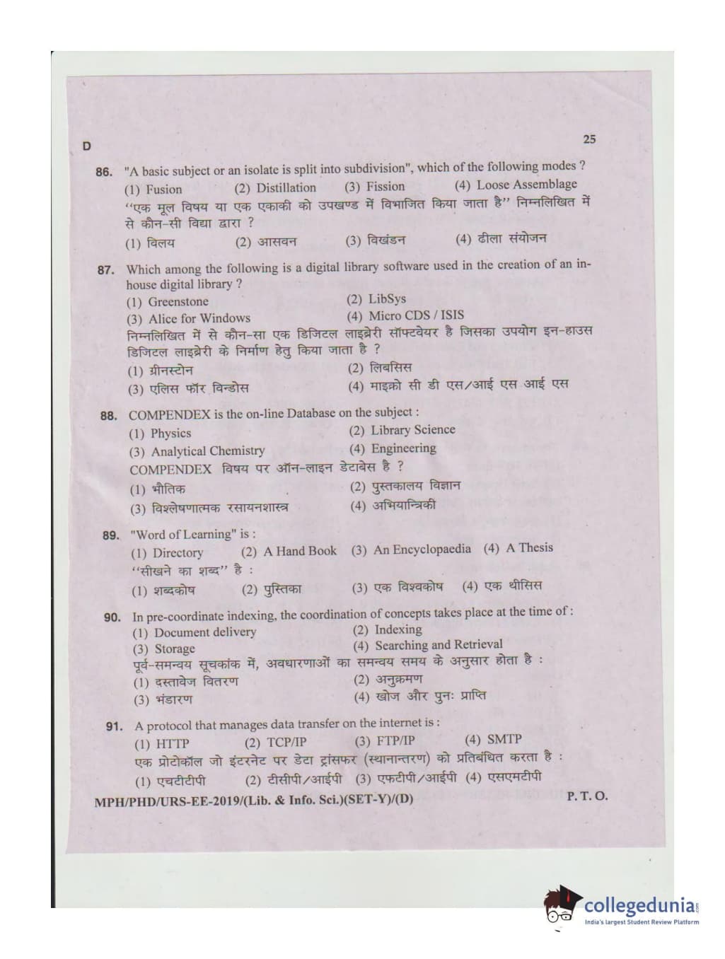 MDUCEE 2019 Ph.D./M.Phil./URS Library and Information Sciences Set D Question Paper with Answer Key PDFs