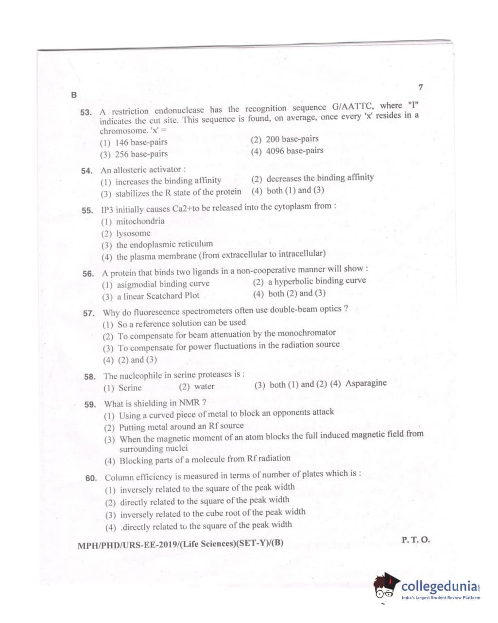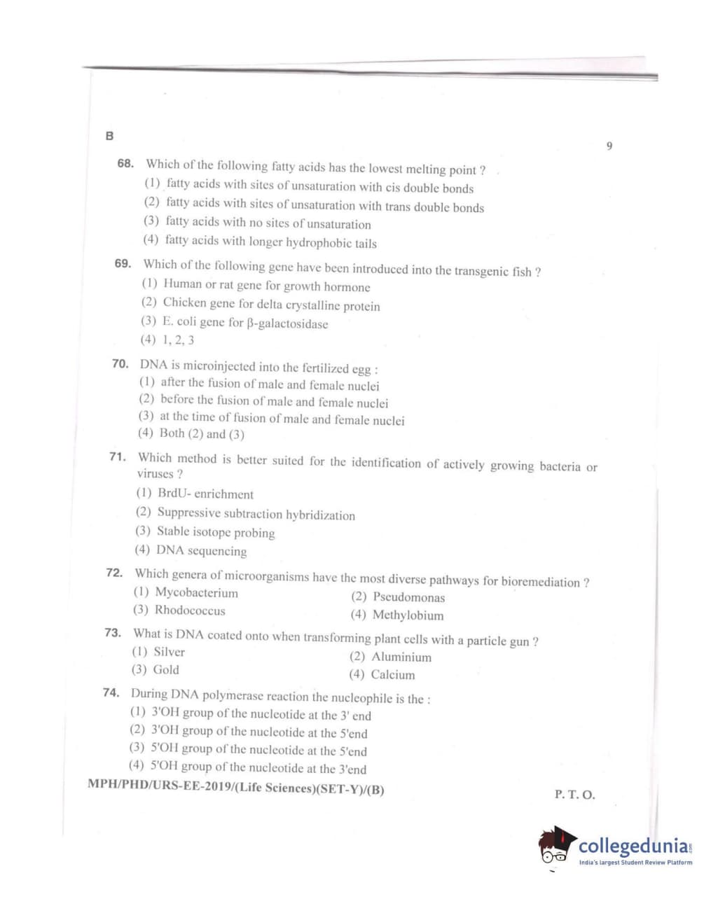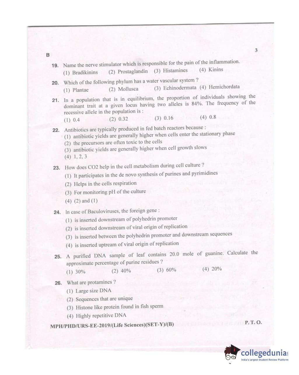 MDUCEE 2019 Ph.D./M.Phil./URS Life Sciences Set B Question Paper with Answer Key PDFs