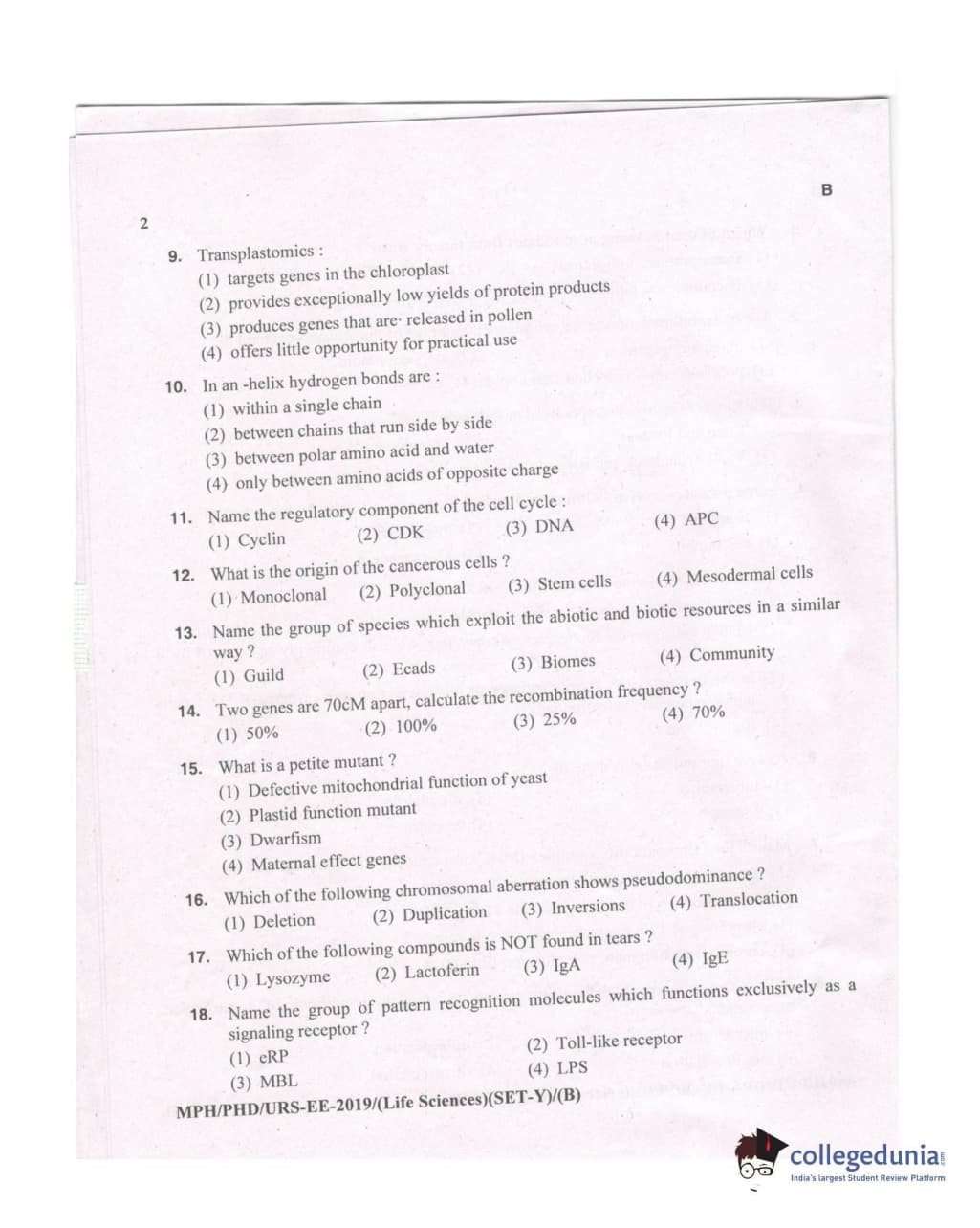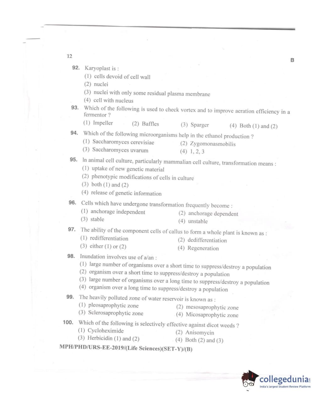 MDUCEE 2019 Ph.D./M.Phil./URS Life Sciences Set B Question paper with answer key pdf is available for download. The exam was successfully organized by Maharishi Dayanand University. The question paper comprised a total of 100 questions.