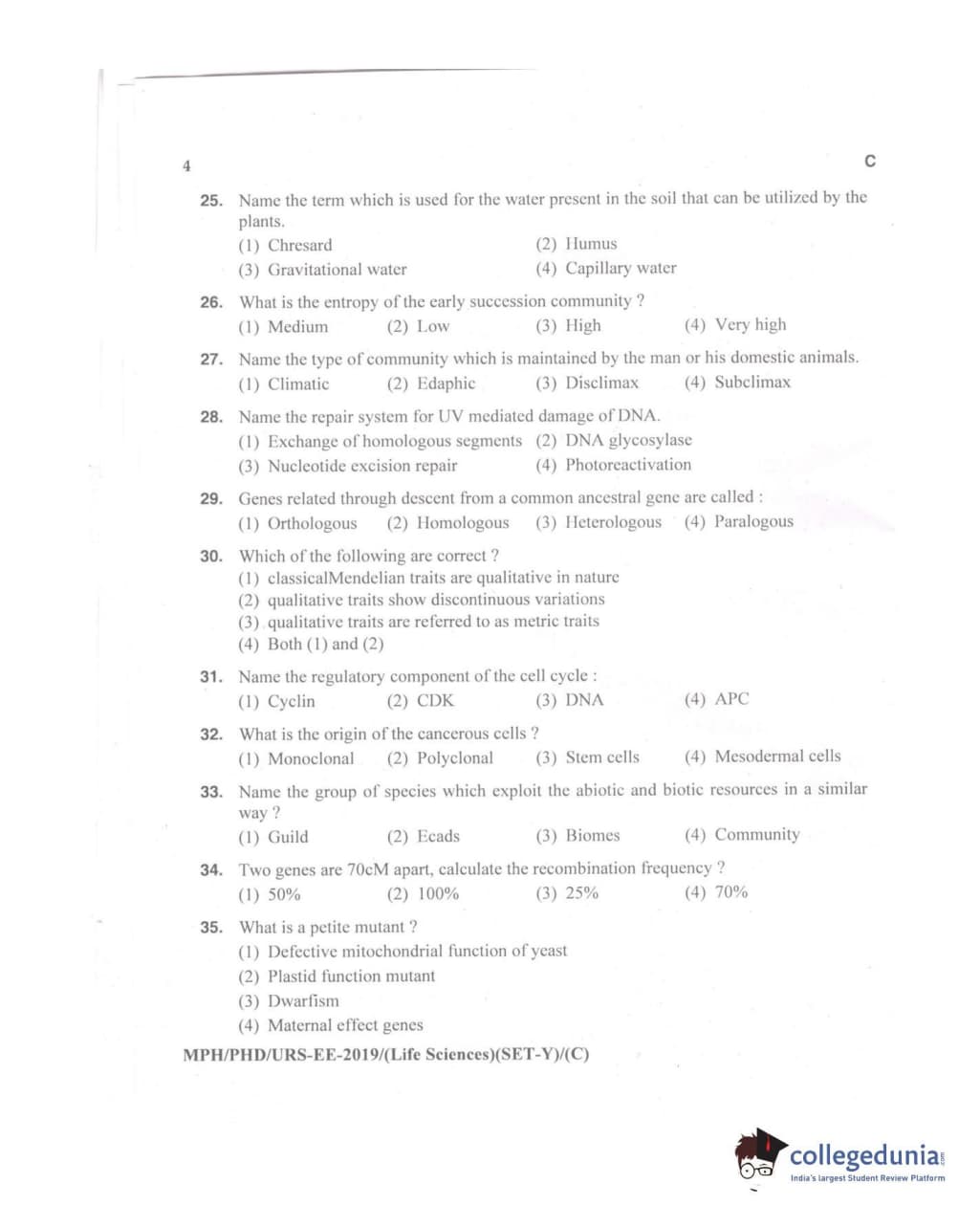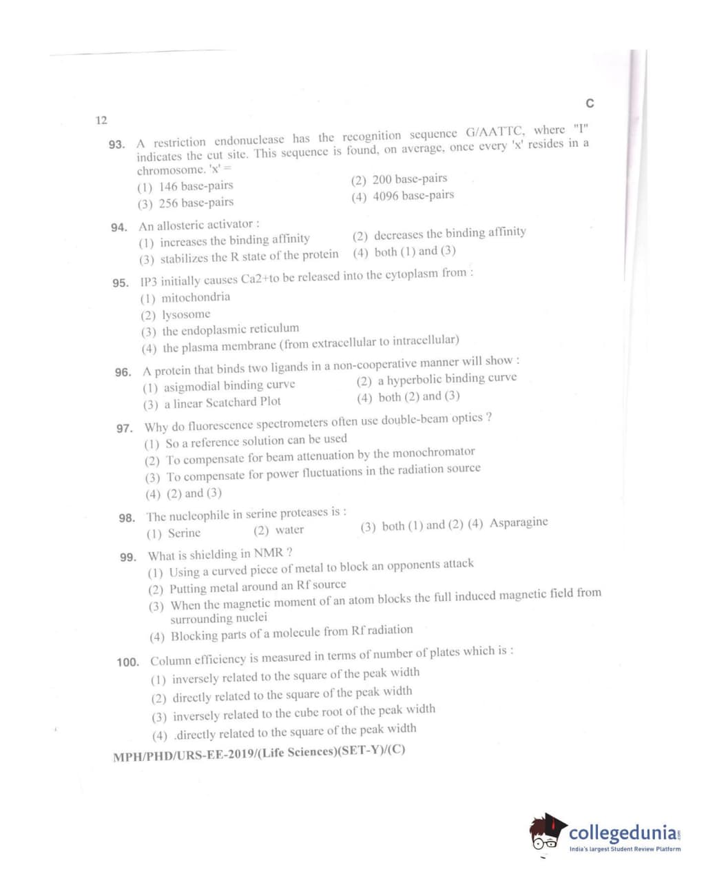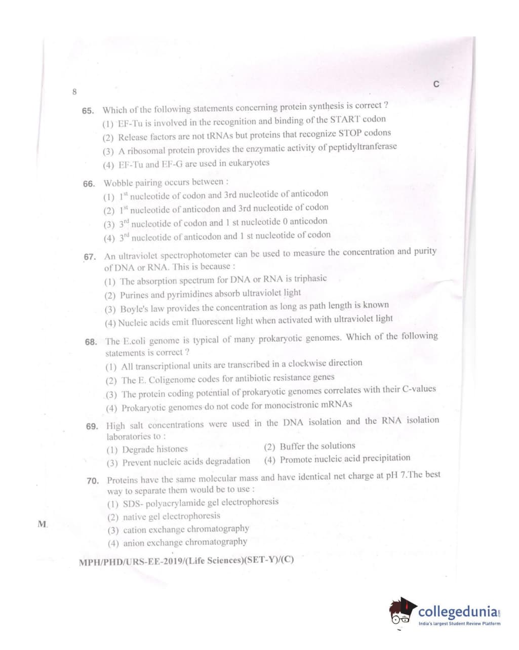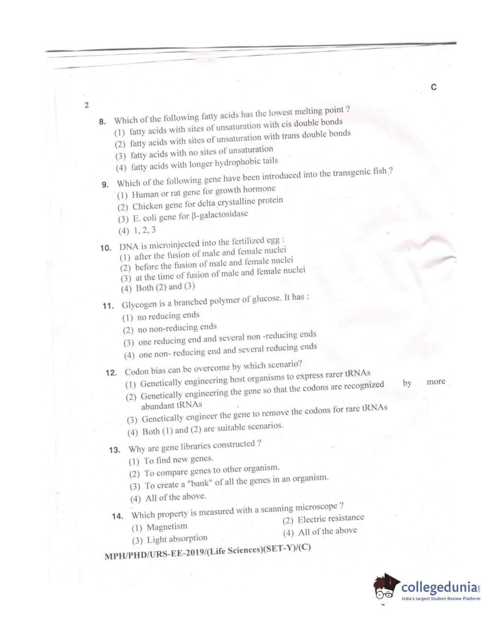 MDUCEE 2019 Ph.D./M.Phil./URS Life Sciences Set C Question Paper with Answer Key PDFs