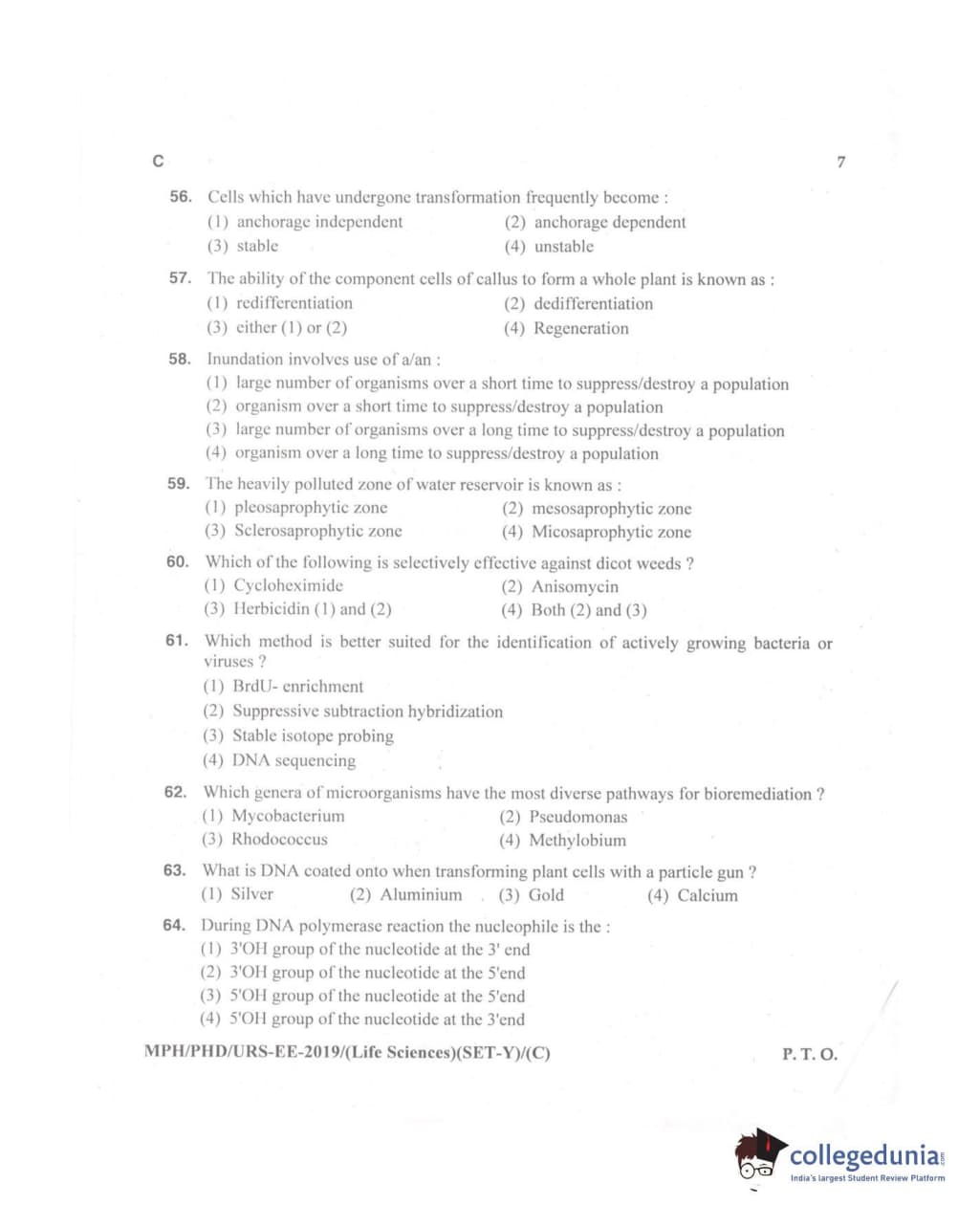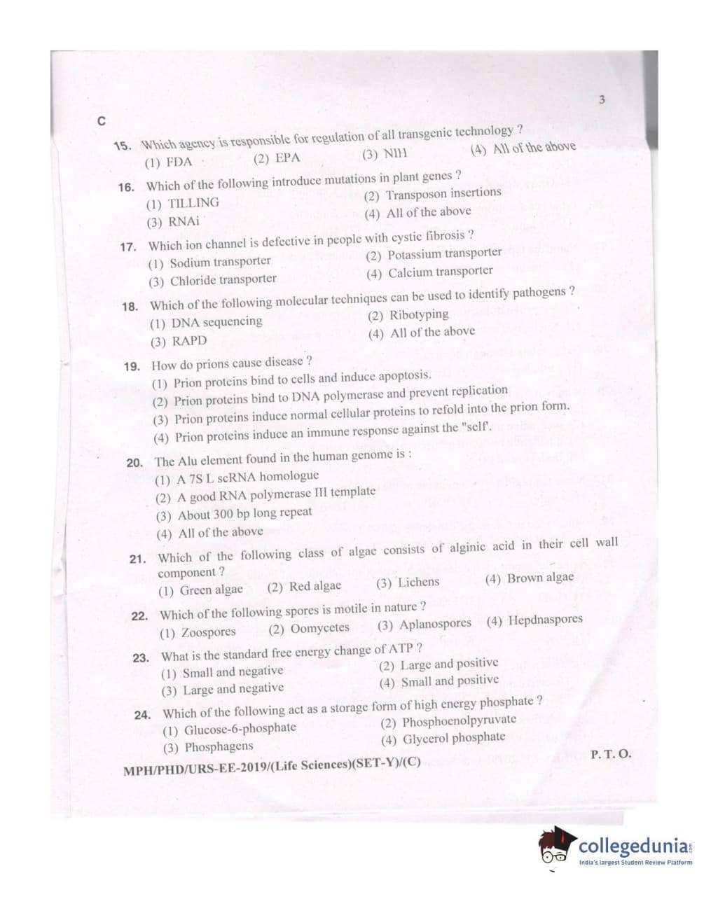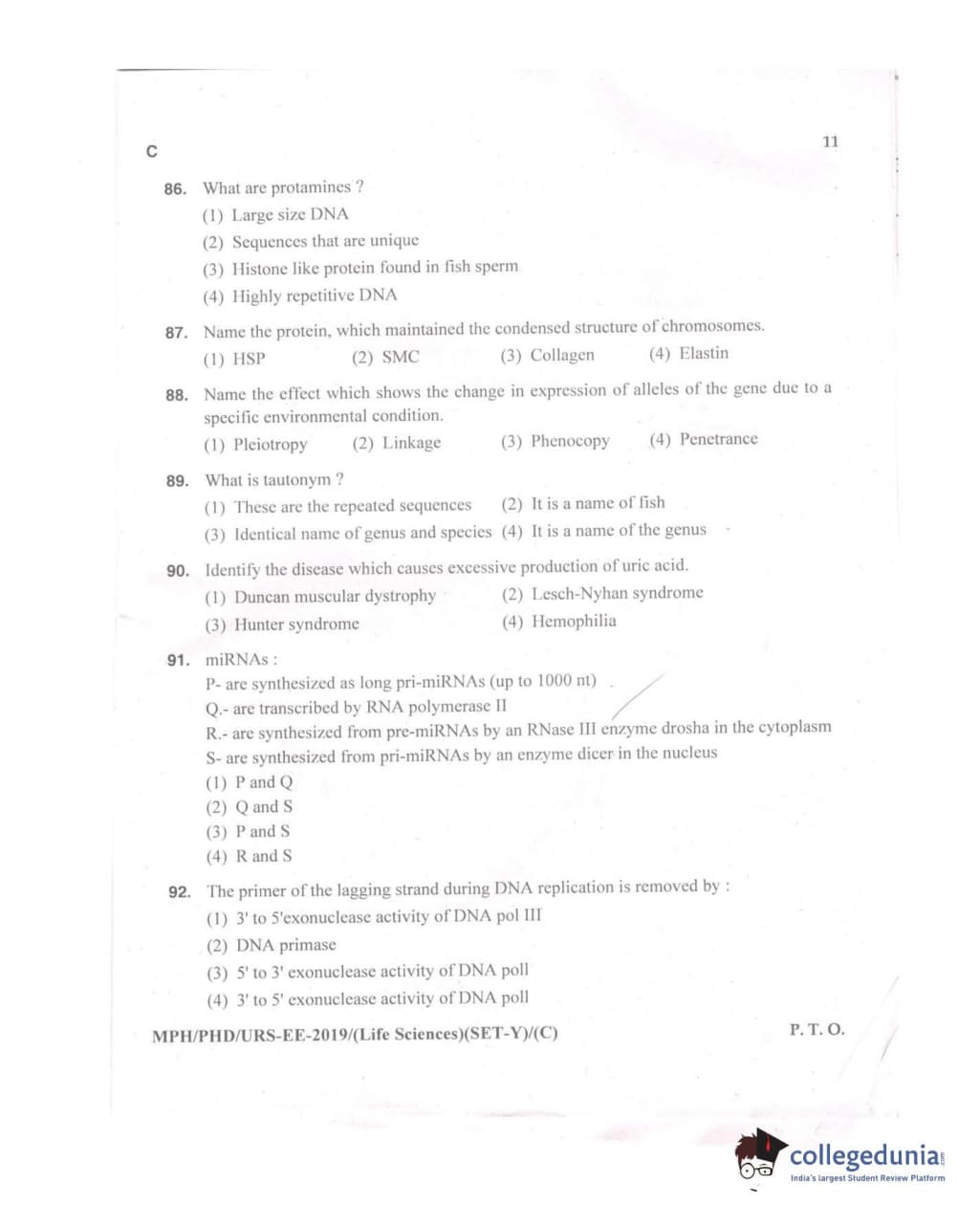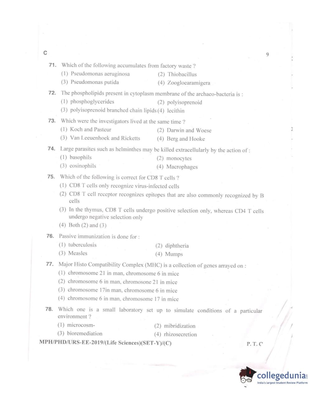 MDUCEE 2019 Ph.D./M.Phil./URS Life Sciences Set C Question Paper with Answer Key PDFs