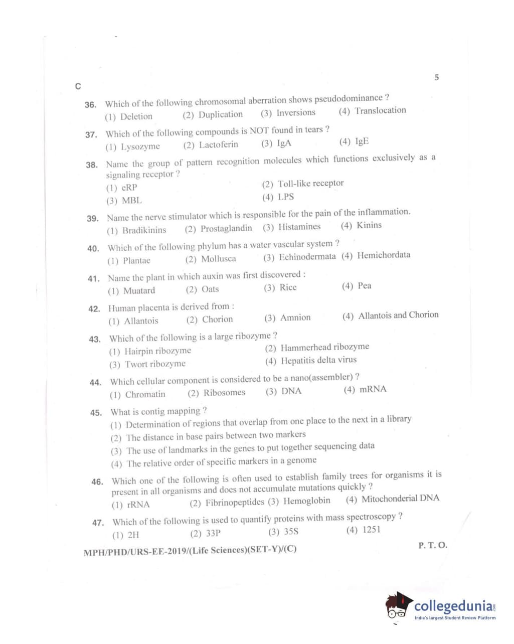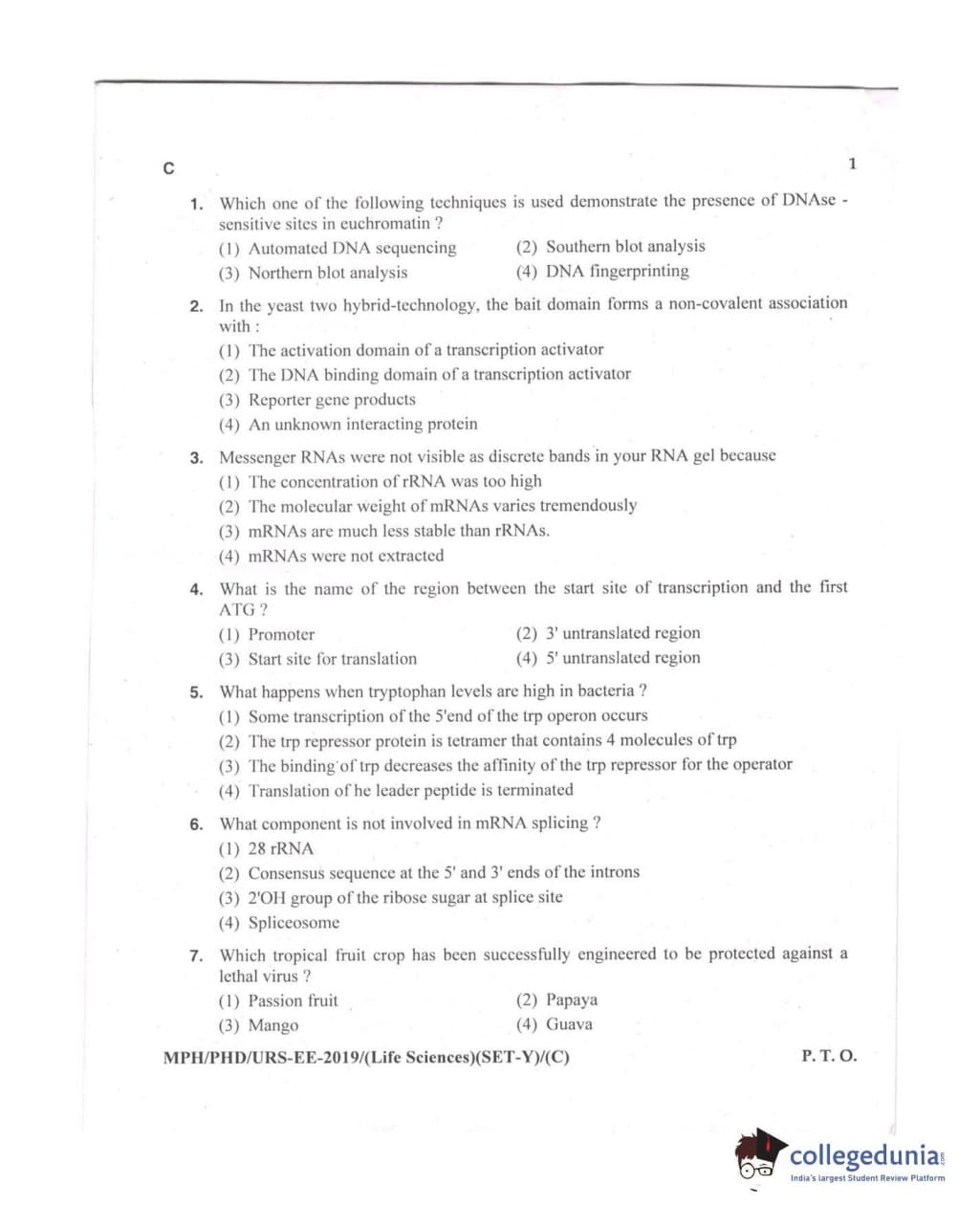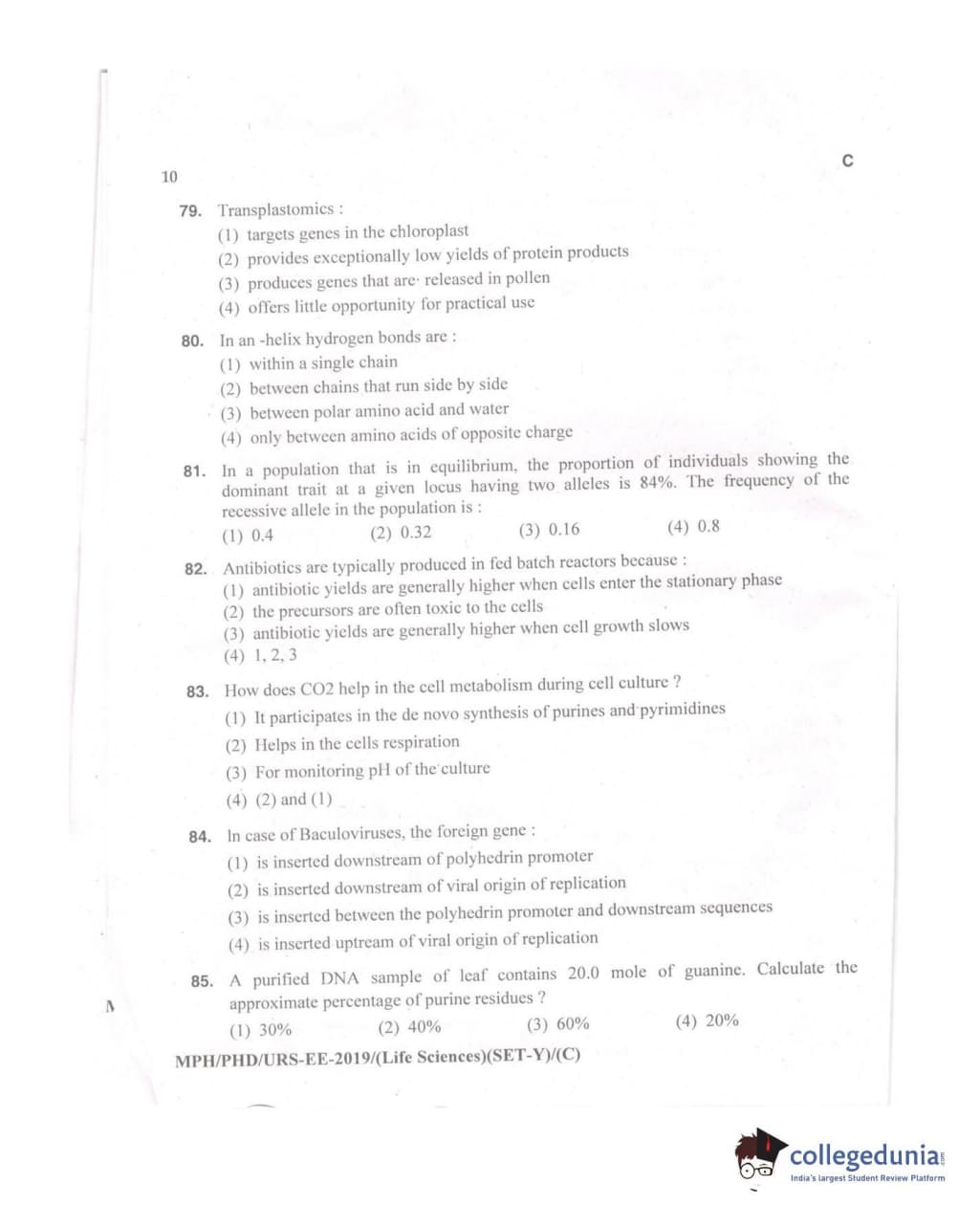 MDUCEE 2019 Ph.D./M.Phil./URS Life Sciences Set C Question paper with answer key pdf is available for download. The exam was successfully organized by Maharishi Dayanand University. The question paper comprised a total of 100 questions.