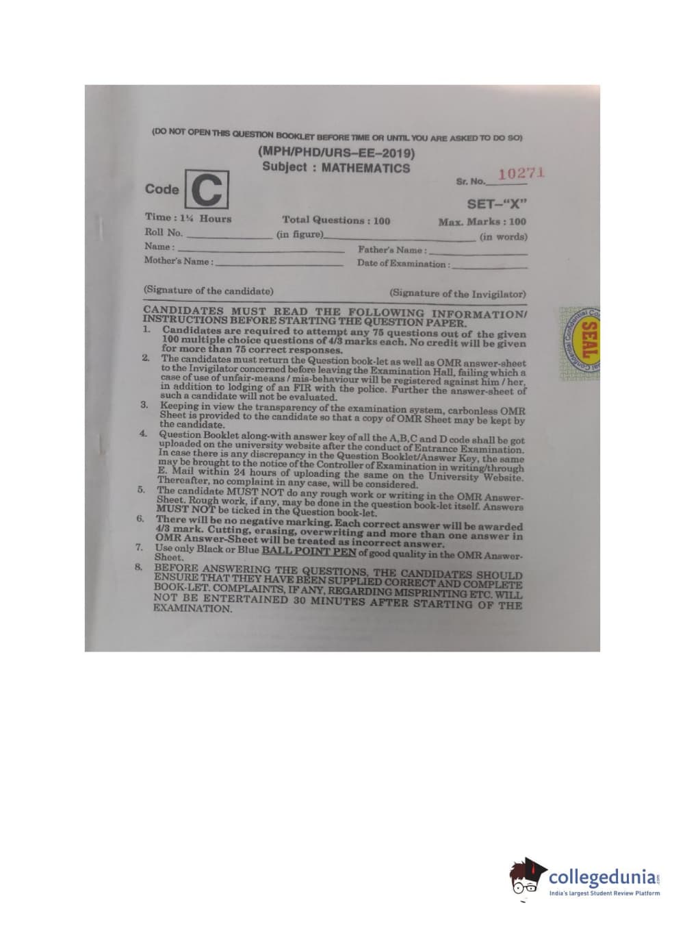 MDUCEE 2019 Ph.D./M.Phil./URS Mathematics Set C Question paper with answer key pdf is available for download. The exam was successfully organized by Maharishi Dayanand University. The question paper comprised a total of 100 questions.