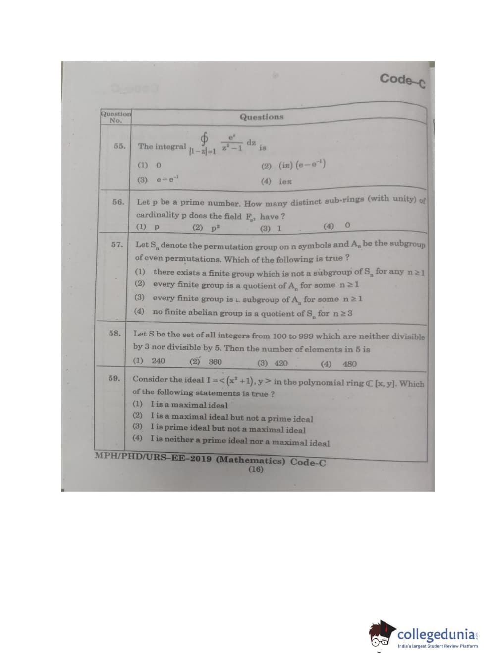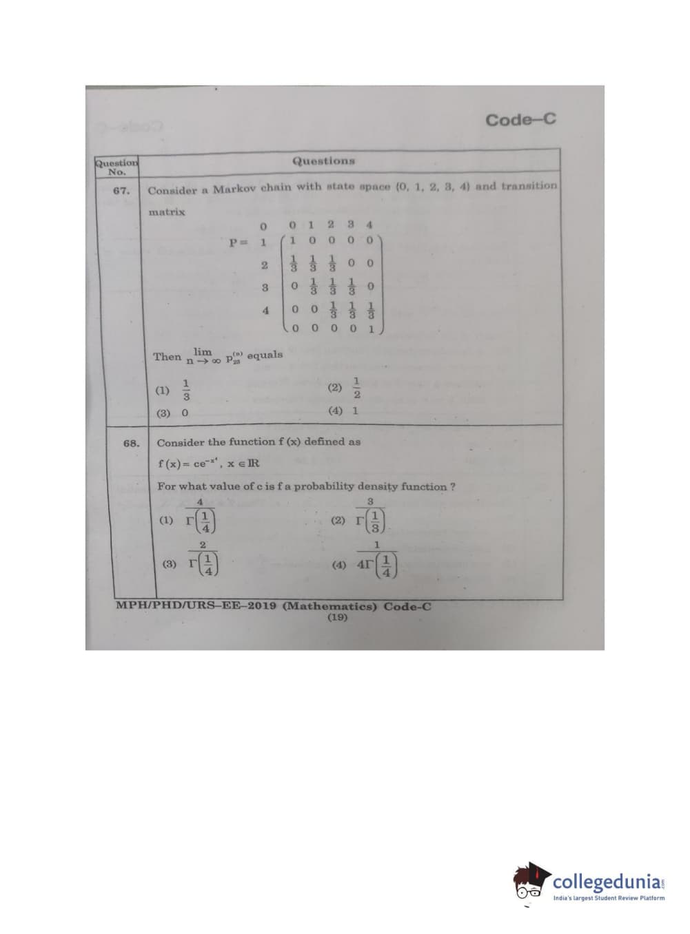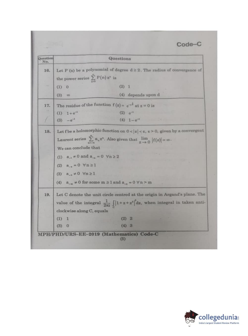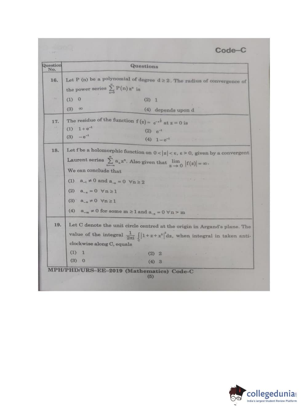 MDUCEE 2019 Ph.D./M.Phil./URS Mathematics Set C Question Paper with Answer Key PDFs