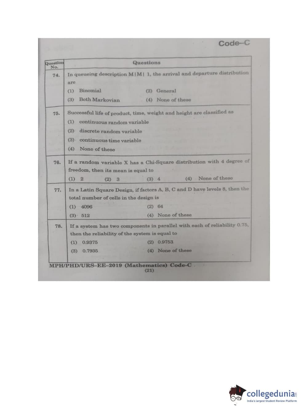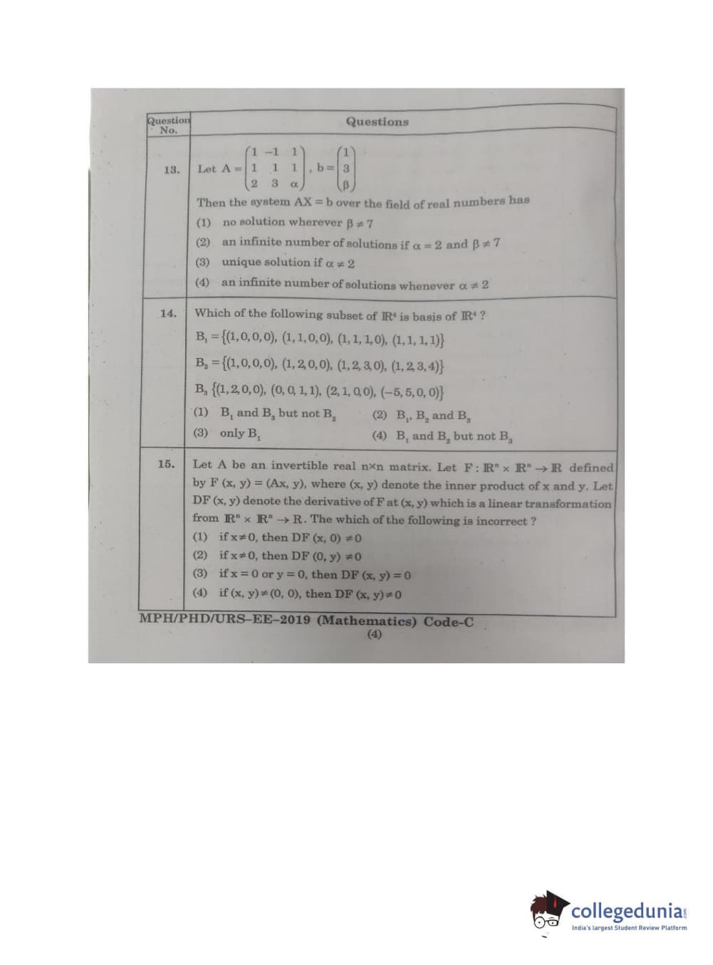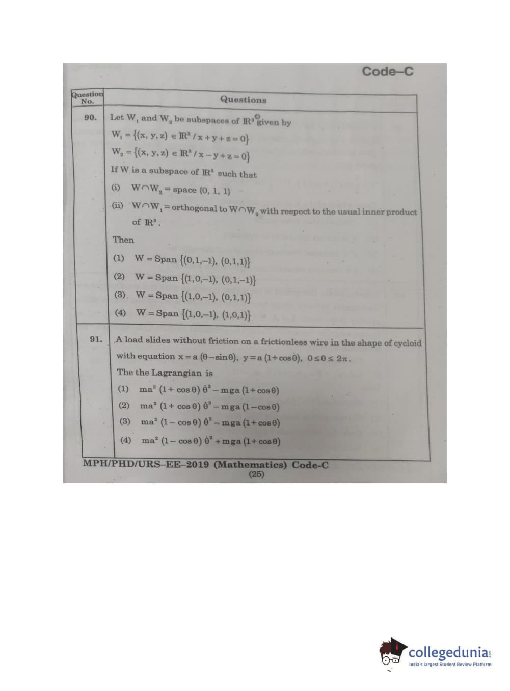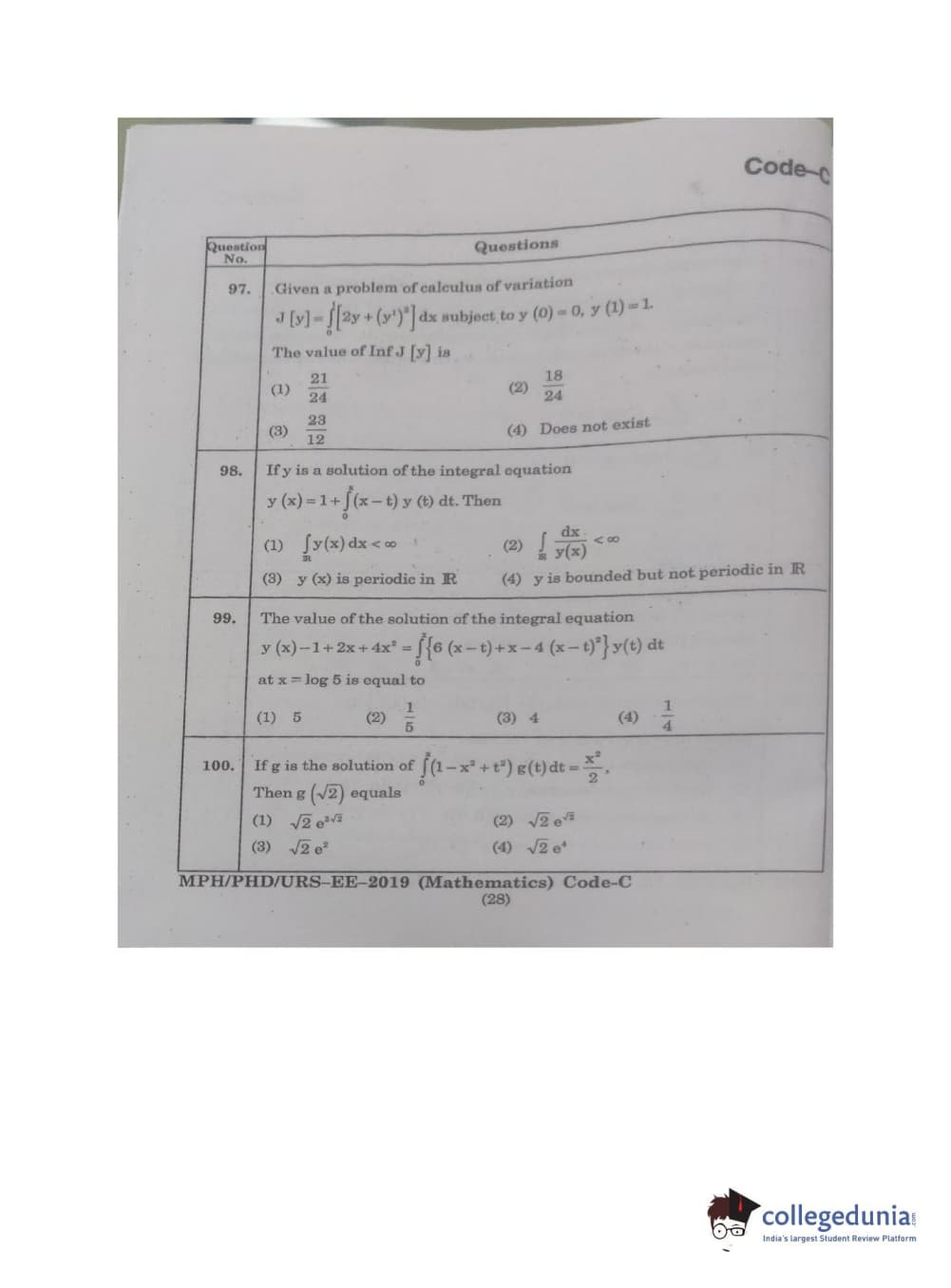 MDUCEE 2019 Ph.D./M.Phil./URS Mathematics Set C Question Paper with Answer Key PDFs