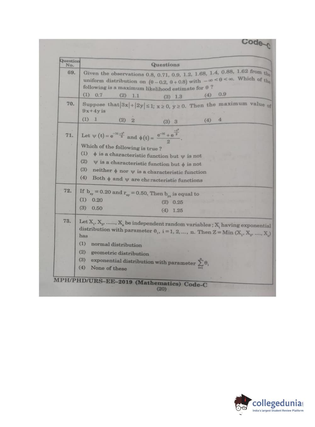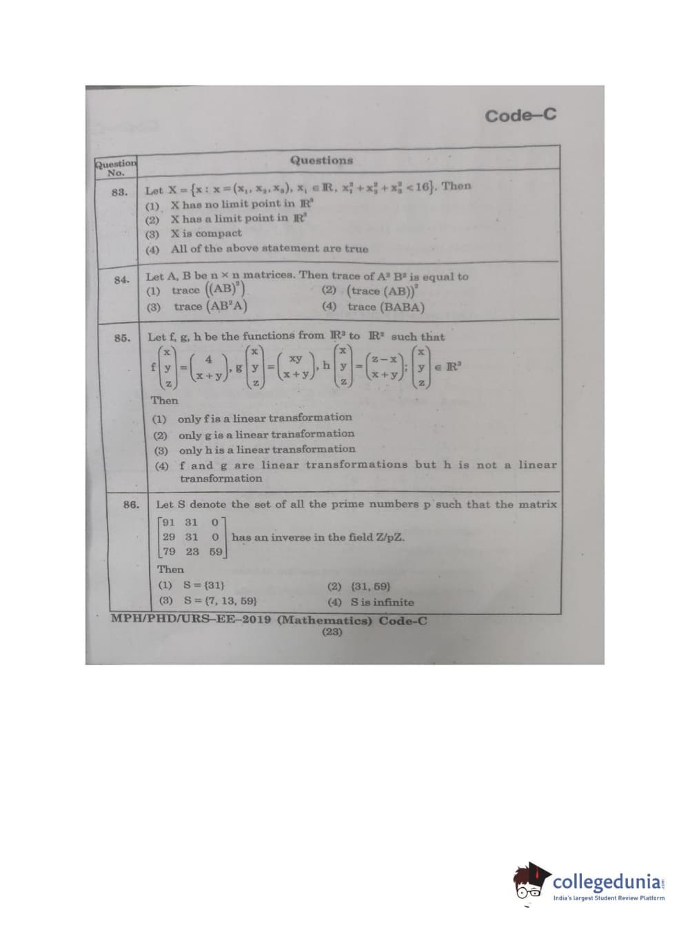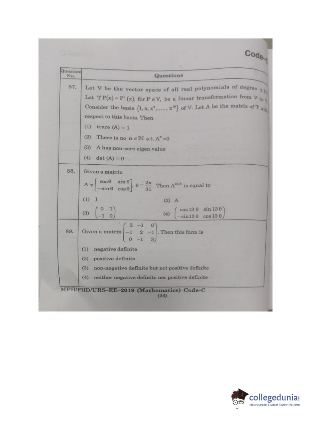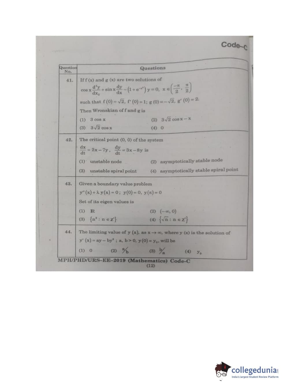 MDUCEE 2019 Ph.D./M.Phil./URS Mathematics Set C Question Paper with Answer Key PDFs