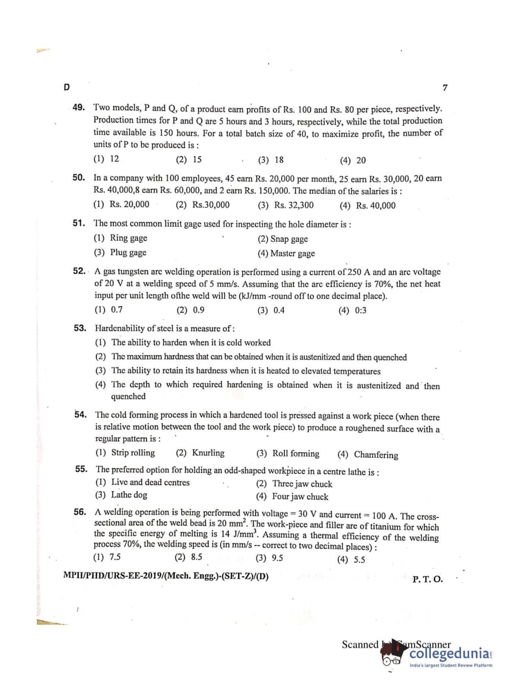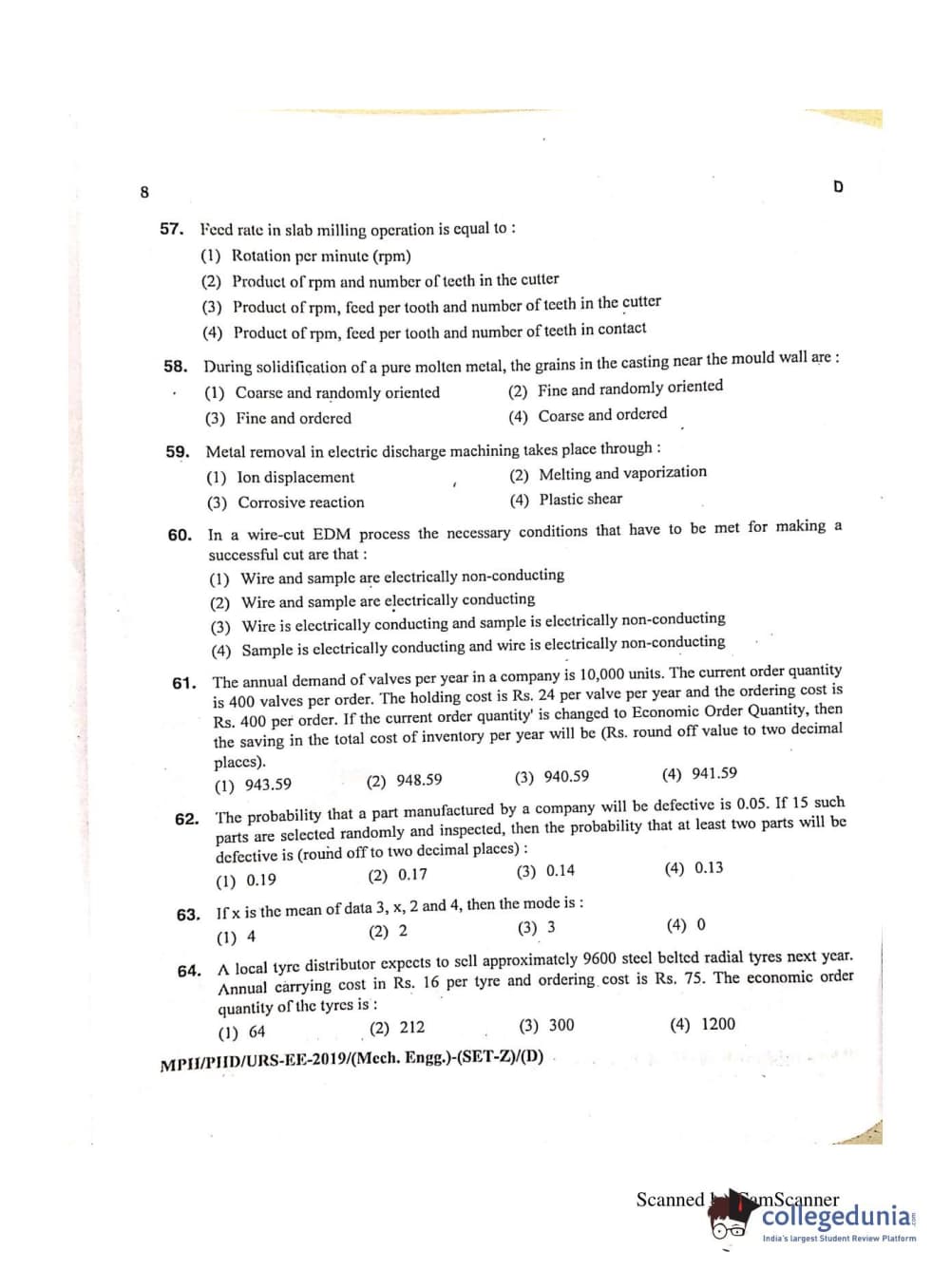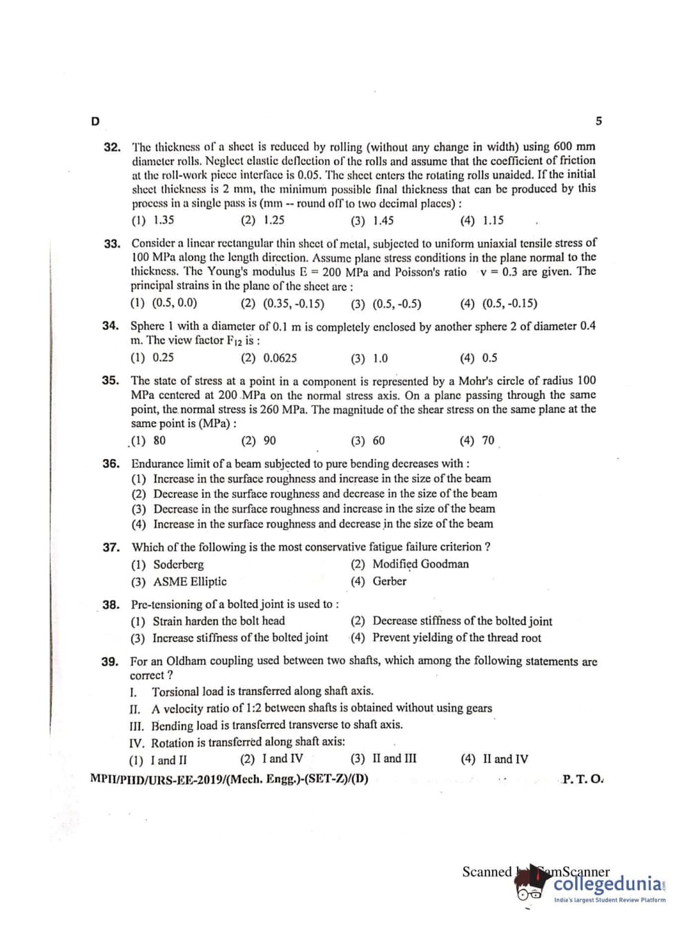 | MDUCEE 2019 Ph.D./M.Phil./URS Mechenical Engineering Set D Question Paper PDF | MDUCEE 2019 Ph.D./M.Phil./URS Mechenical Engineering Set D Answer Key PDF |