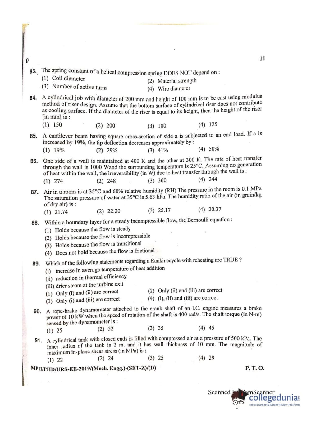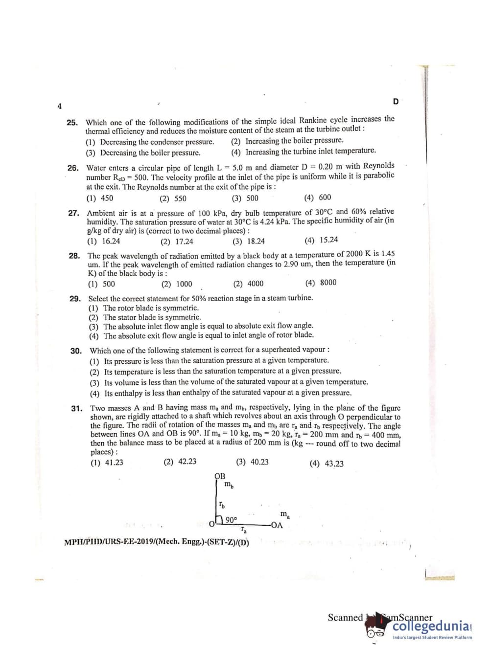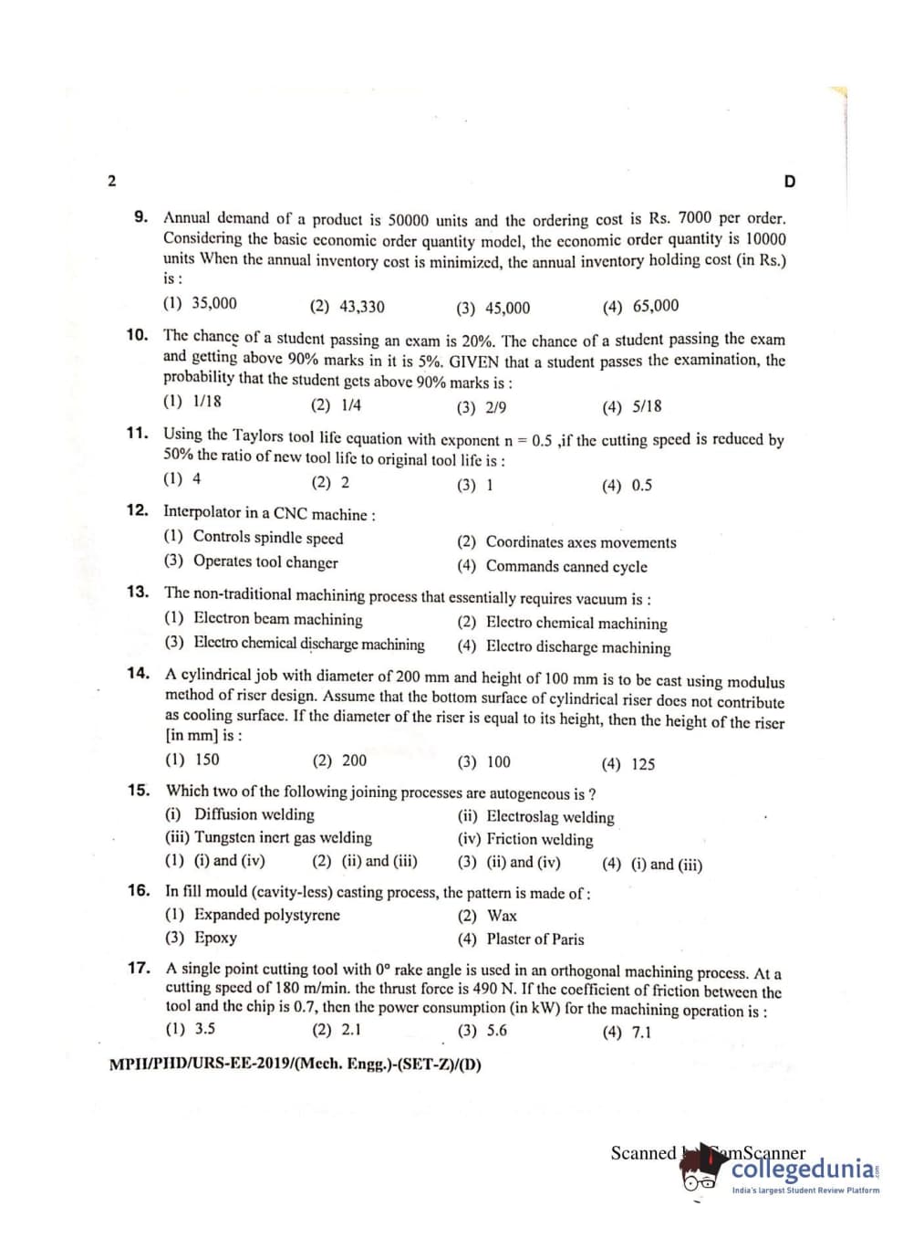 MDUCEE 2019 Ph.D./M.Phil./URS Mechenical Engineering Set D Question Paper with Answer Key PDFs