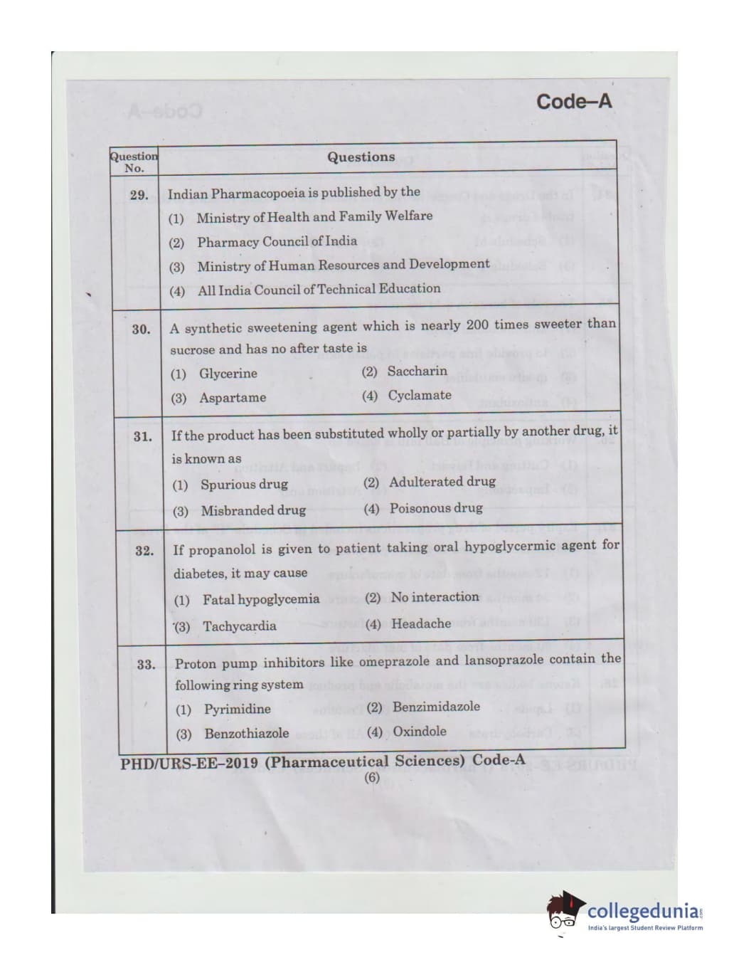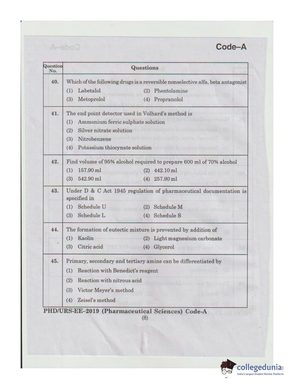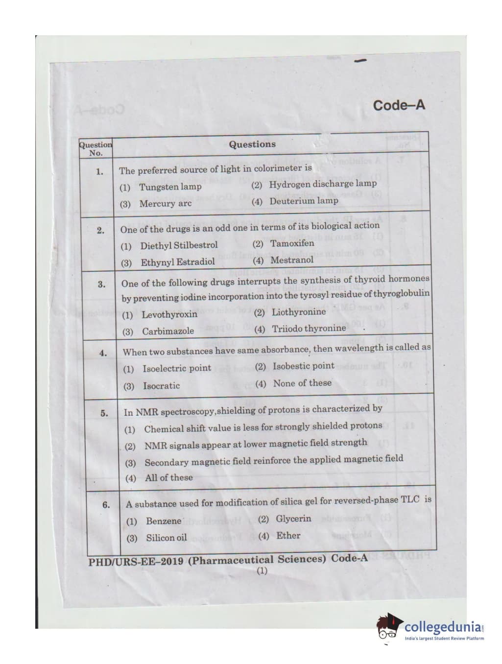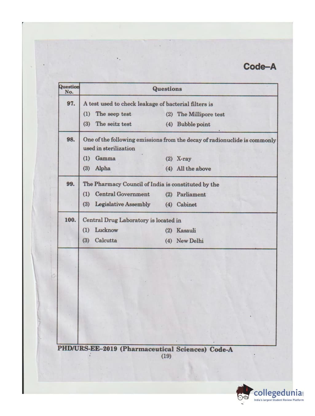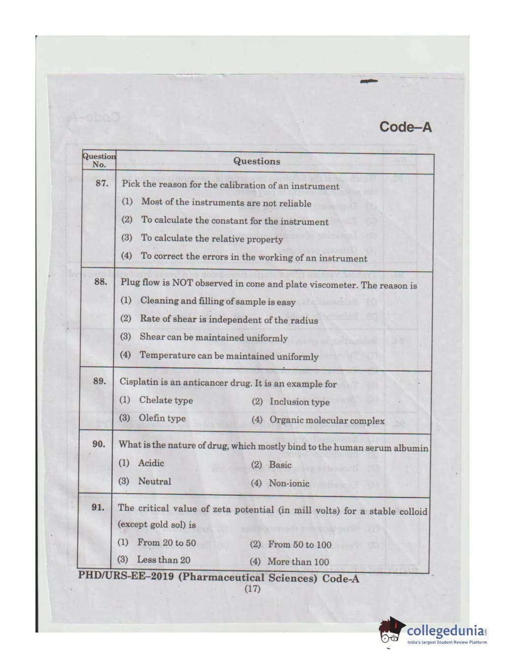 MDUCEE 2019 Ph.D./M.Phil./URS Pharmaceutical Sciences Set A Question Paper with Answer Key PDFs
