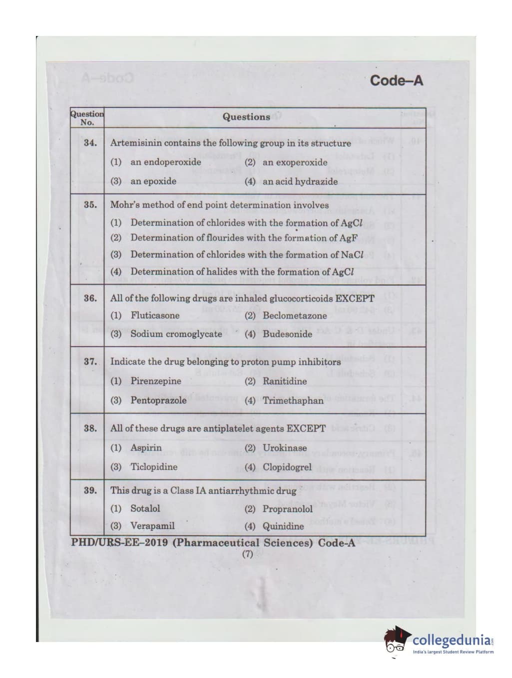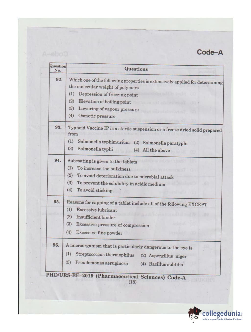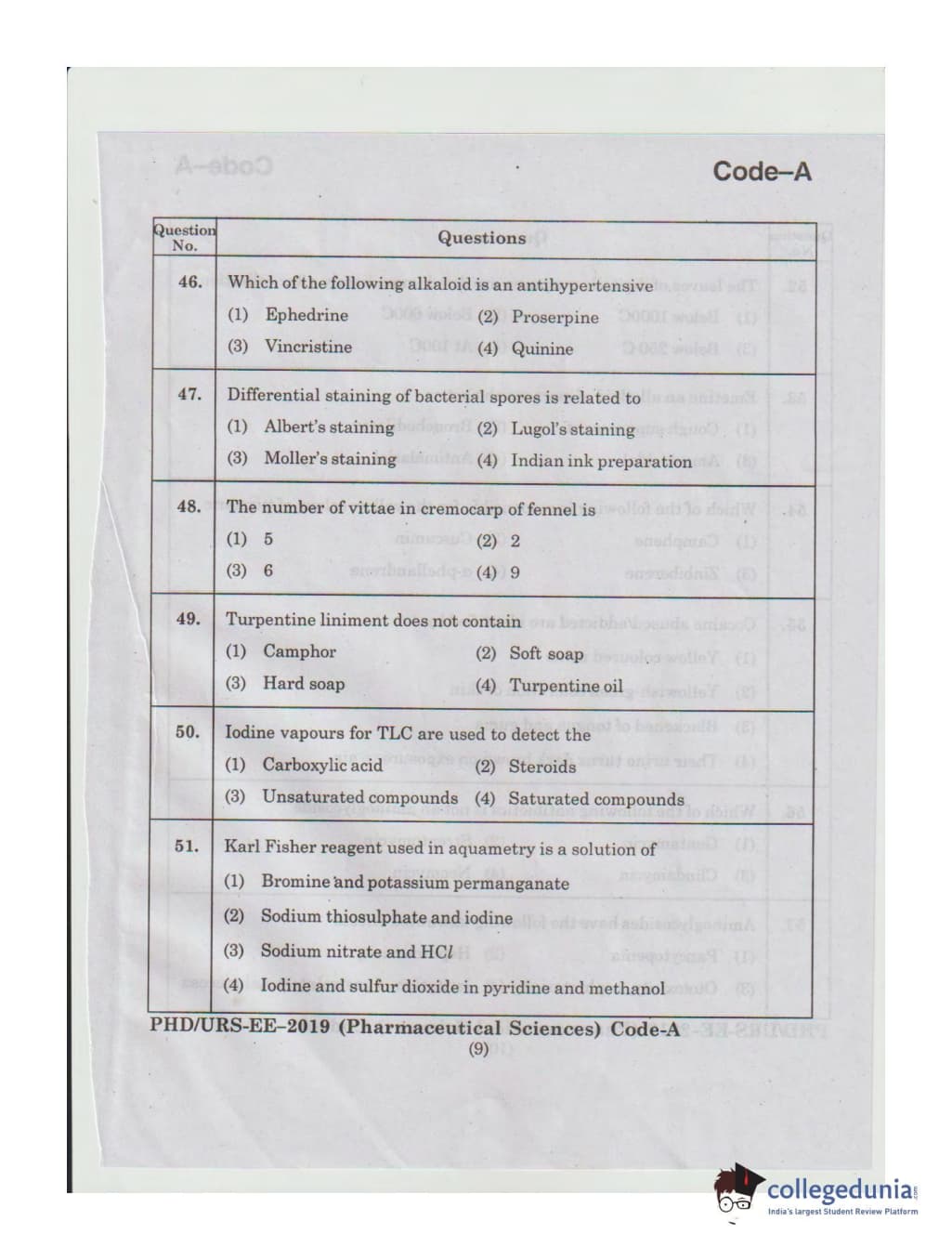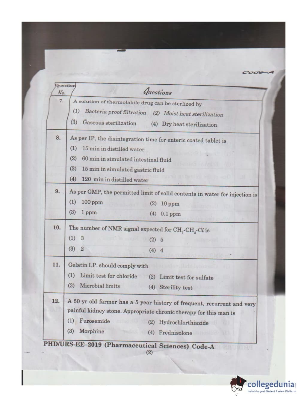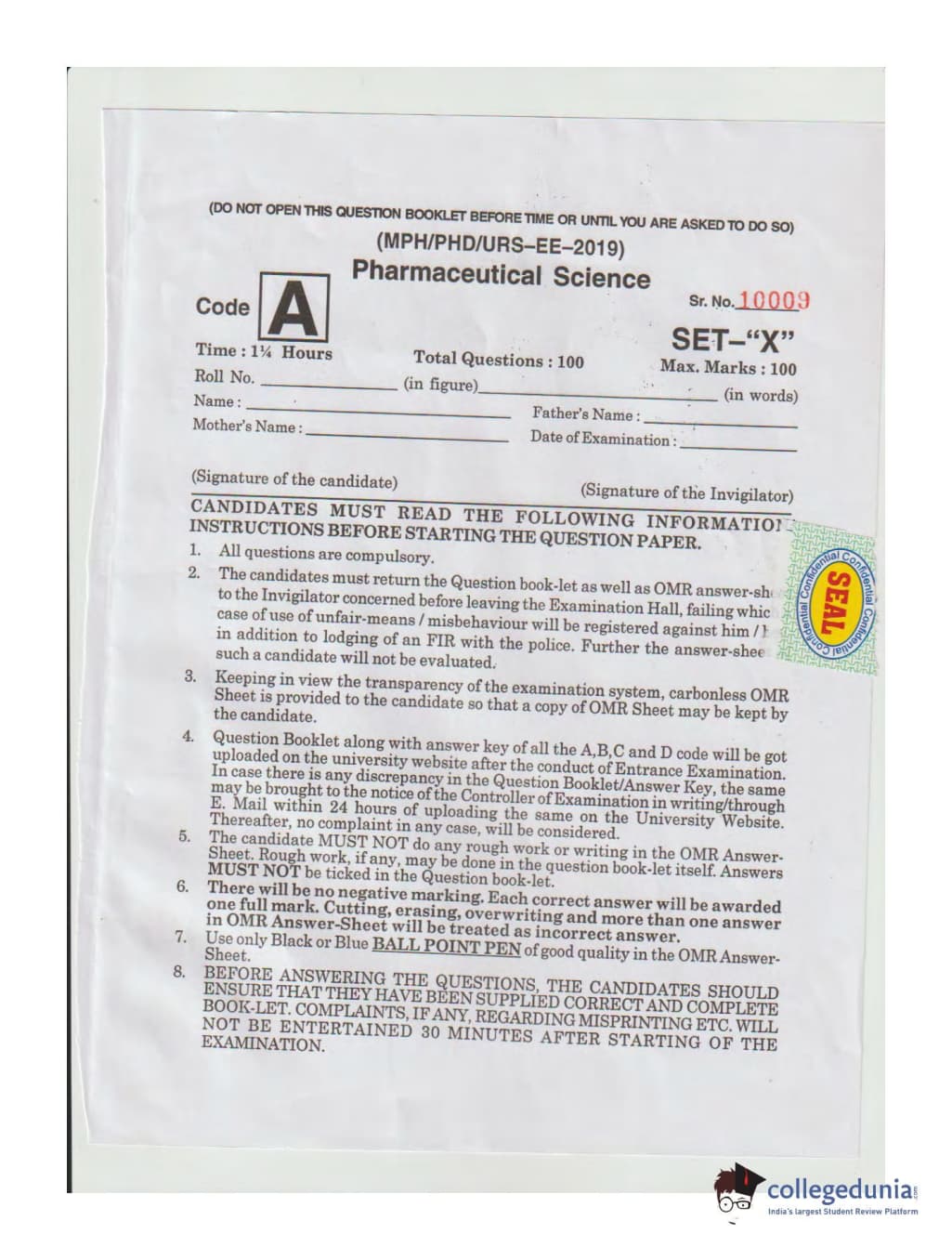 MDUCEE 2019 Ph.D./M.Phil./URS Pharmaceutical Sciences Set A Question Paper with Answer Key PDFs