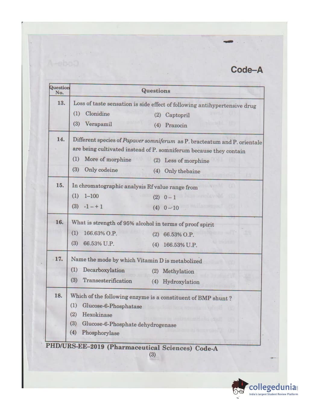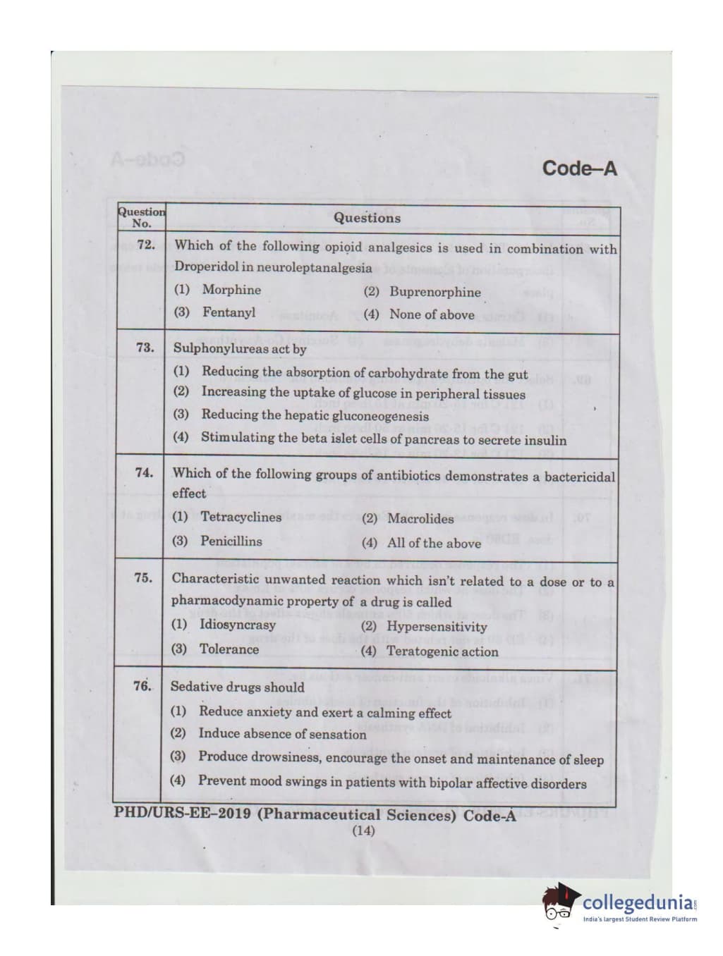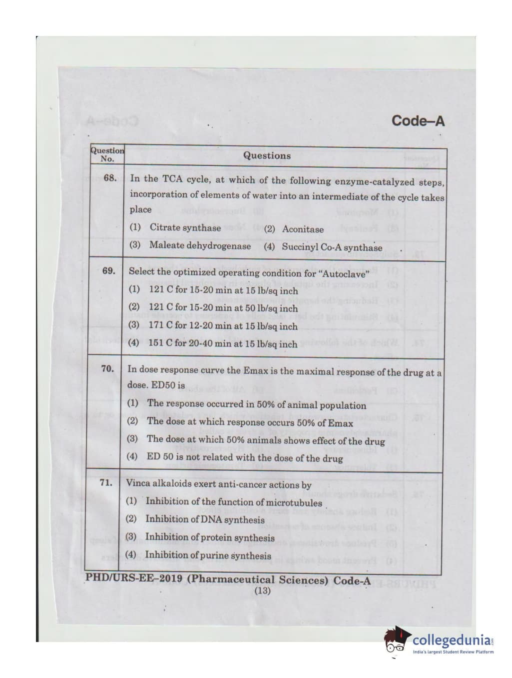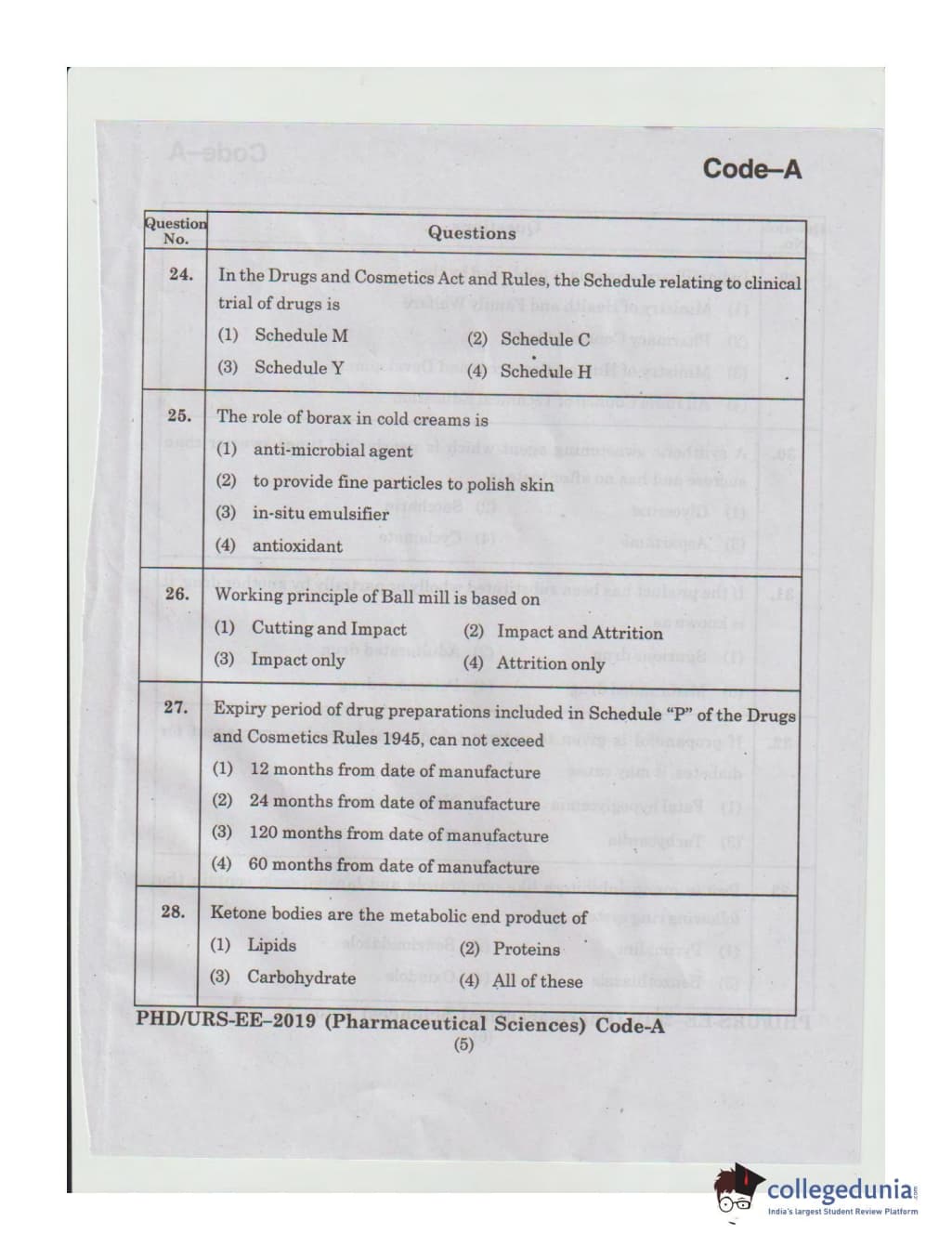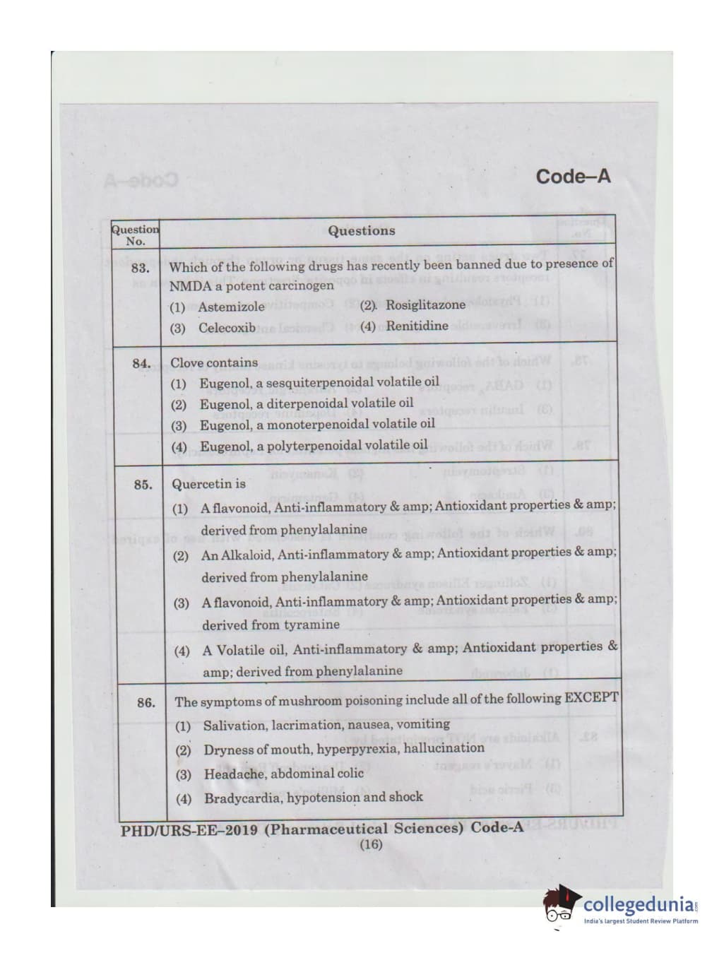 MDUCEE 2019 Ph.D./M.Phil./URS Pharmaceutical Sciences Set A Question Paper with Answer Key PDFs