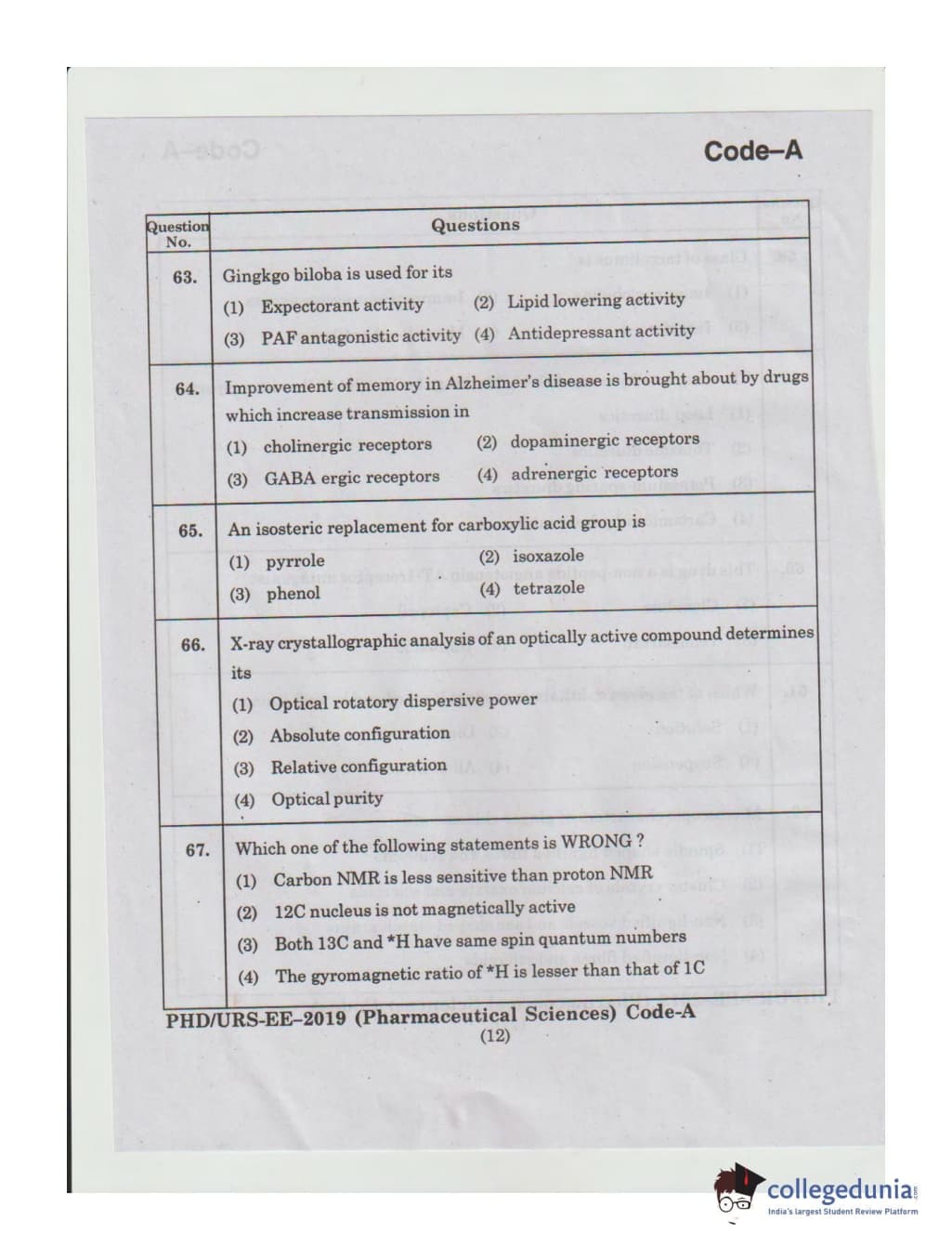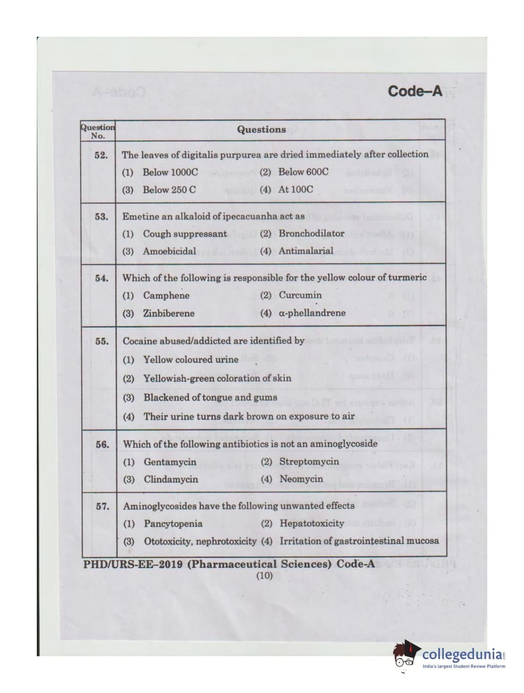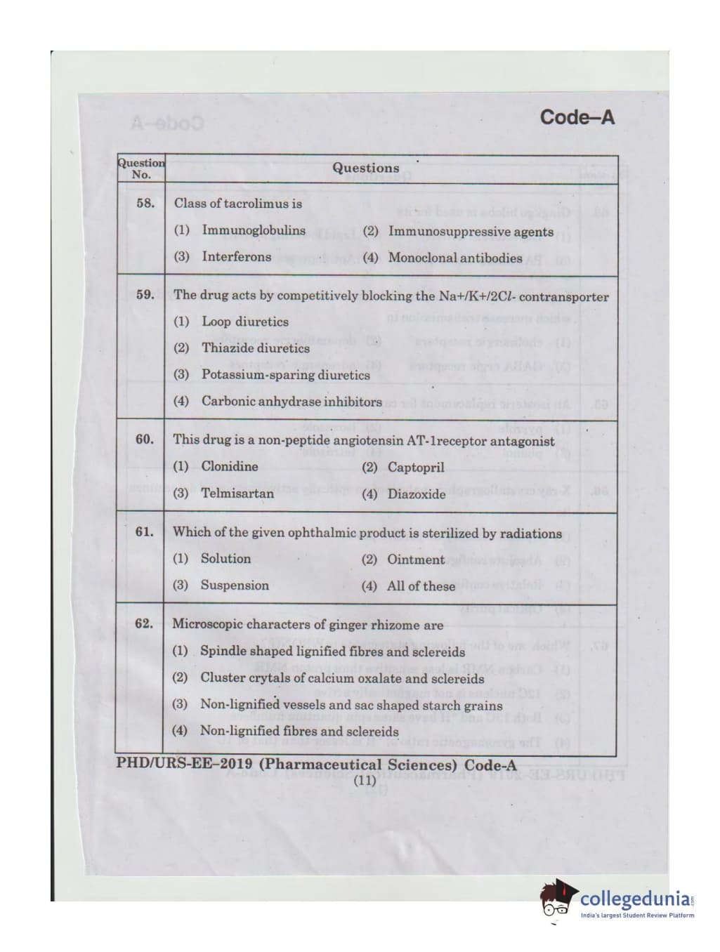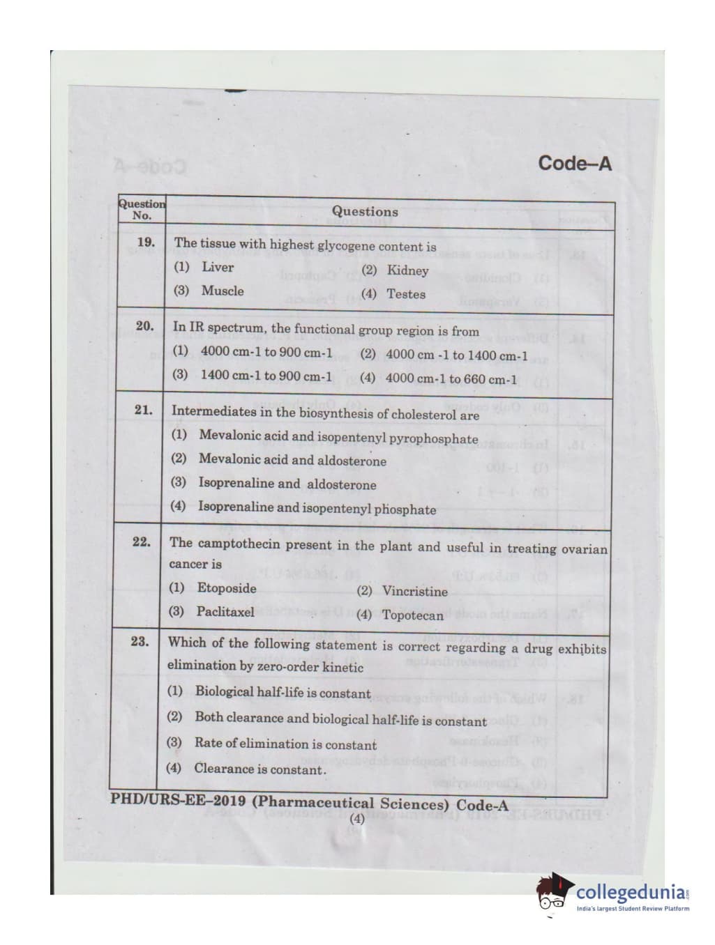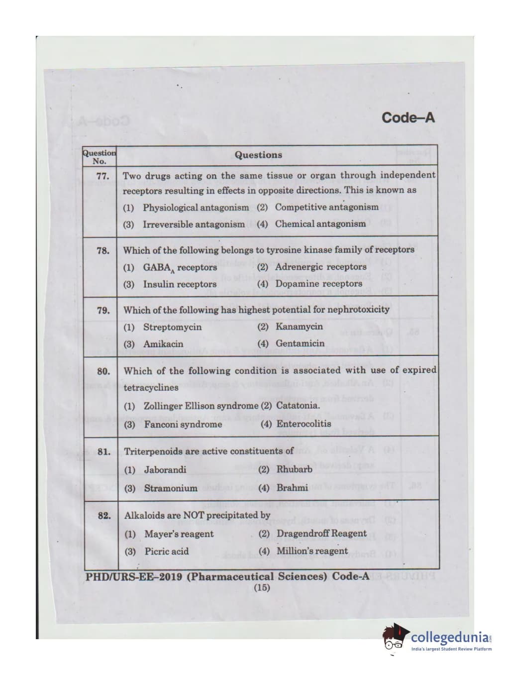 MDUCEE 2019 Ph.D./M.Phil./URS Pharmaceutical Sciences Set A Question Paper with Answer Key PDFs