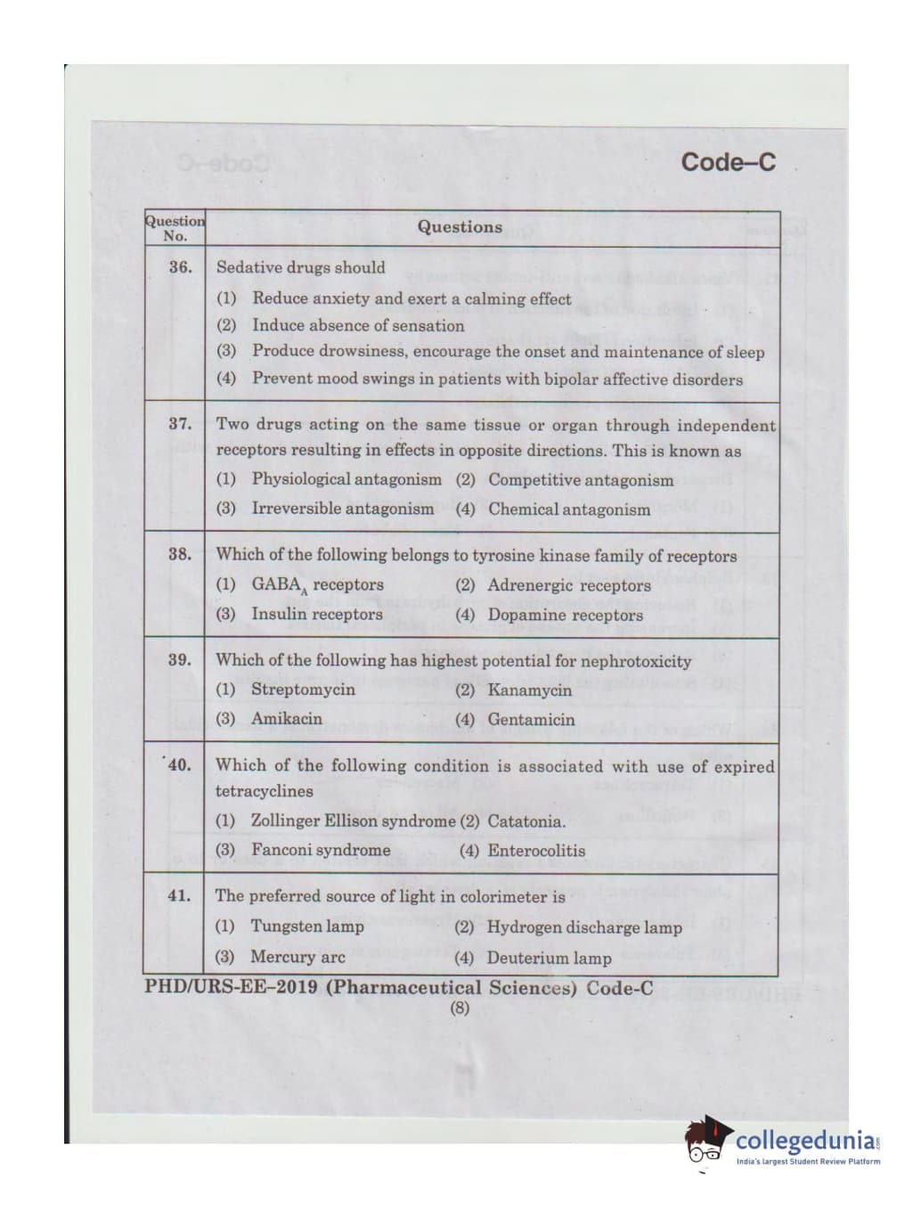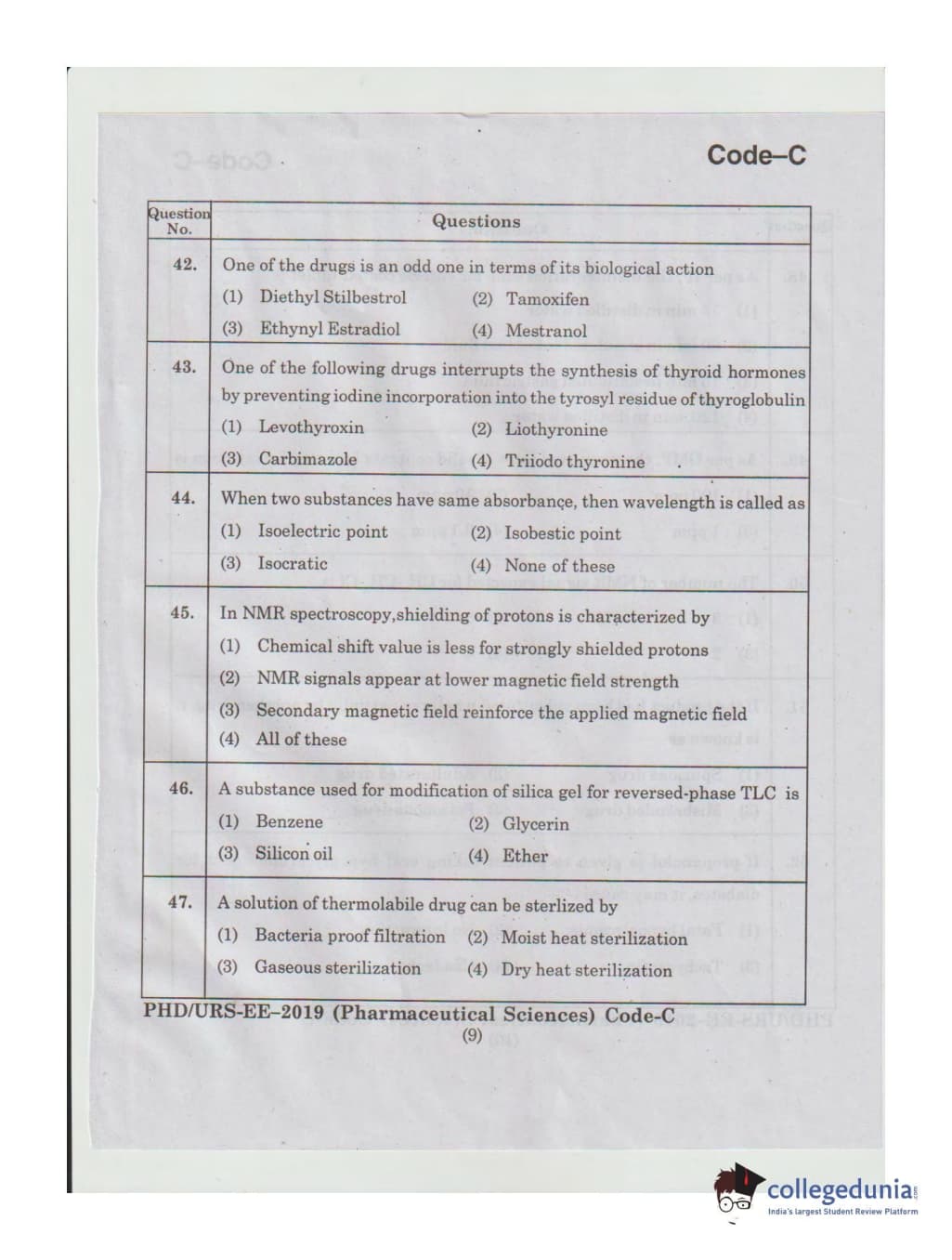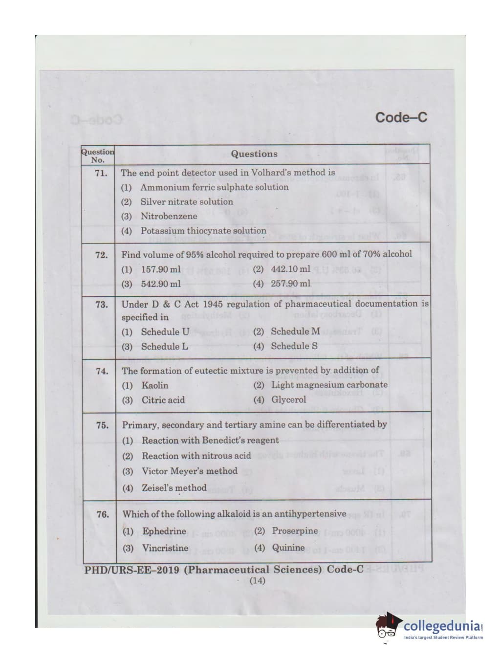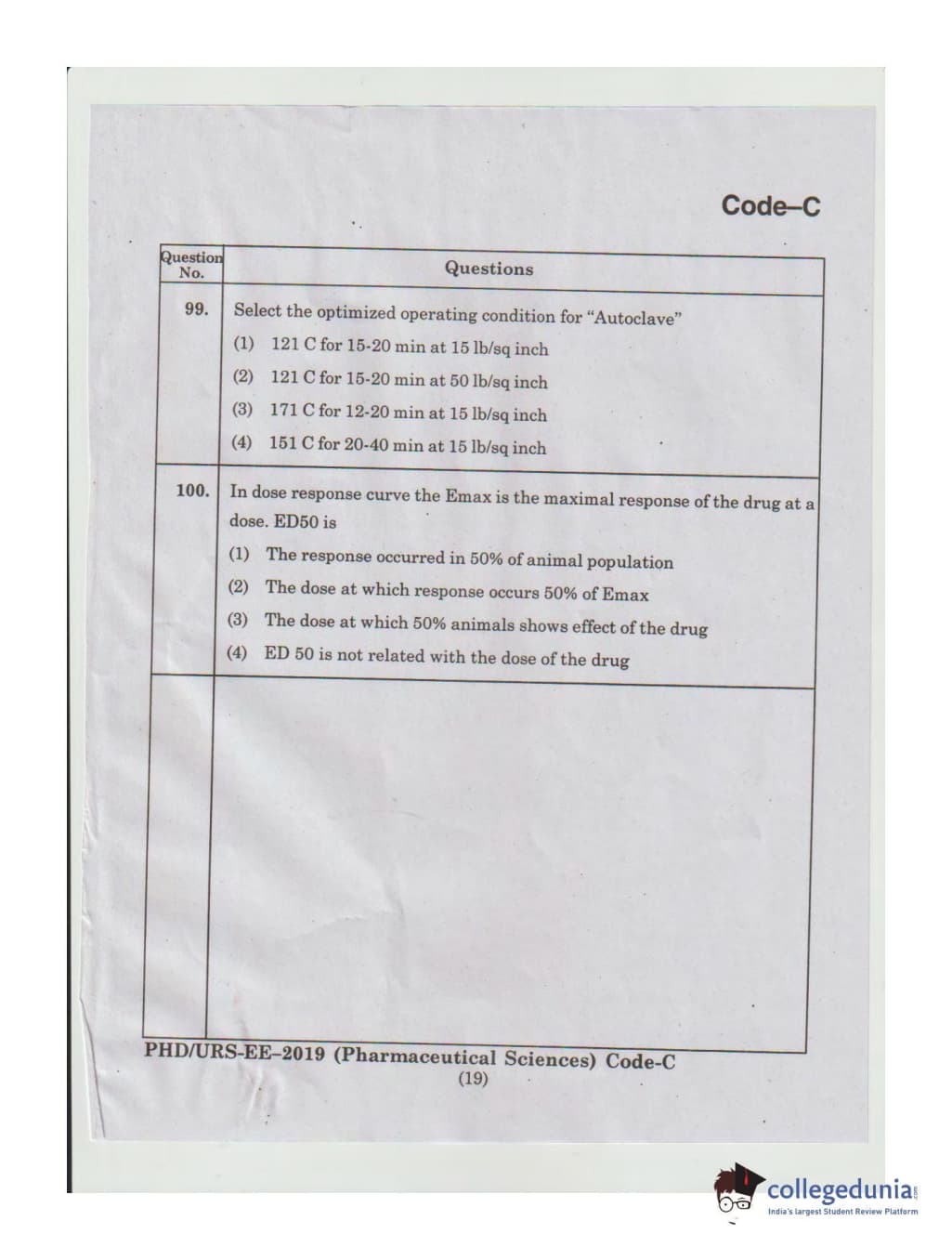 MDUCEE 2019 Ph.D./M.Phil./URS Pharmaceutical Sciences Set C Question Paper with Answer Key PDFs