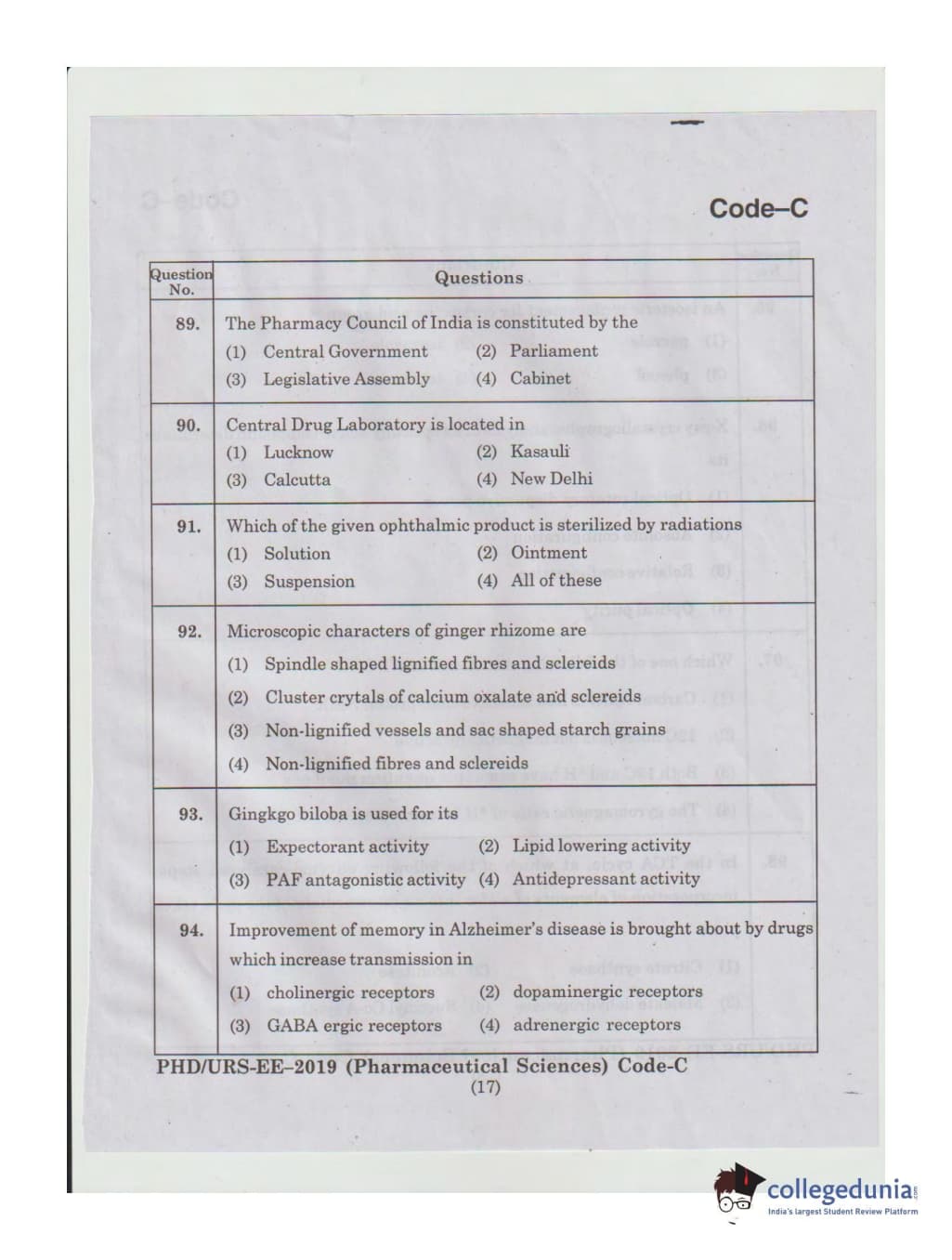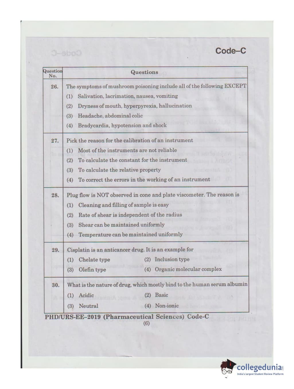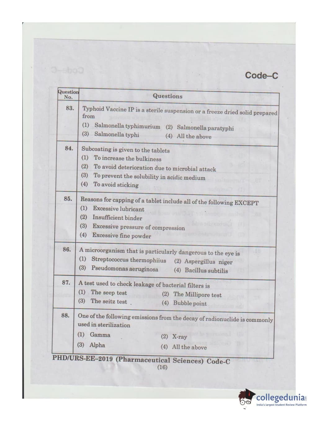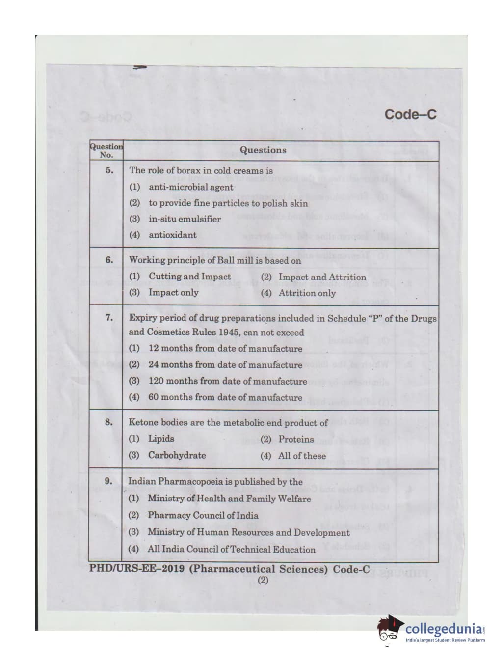 MDUCEE 2019 Ph.D./M.Phil./URS Pharmaceutical Sciences Set C Question Paper with Answer Key PDFs